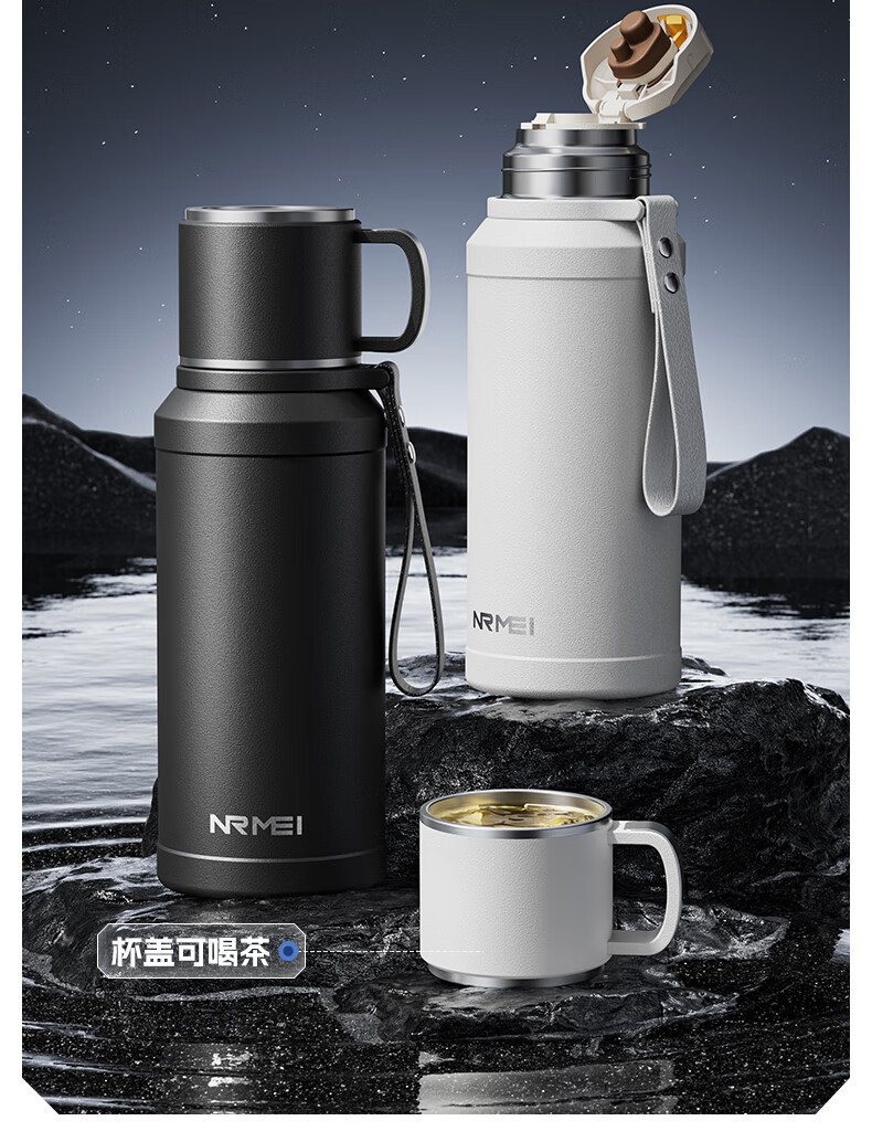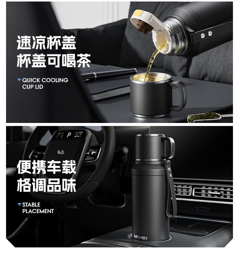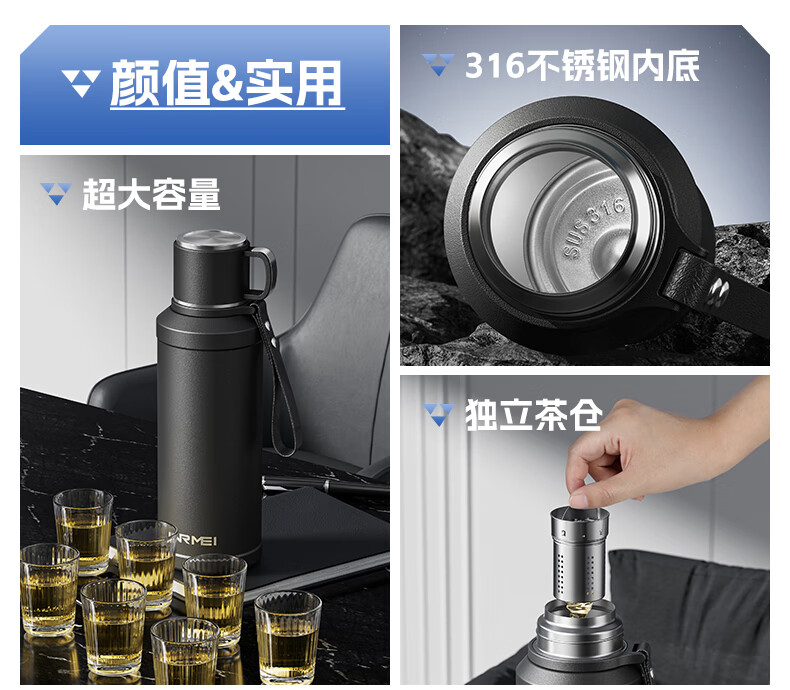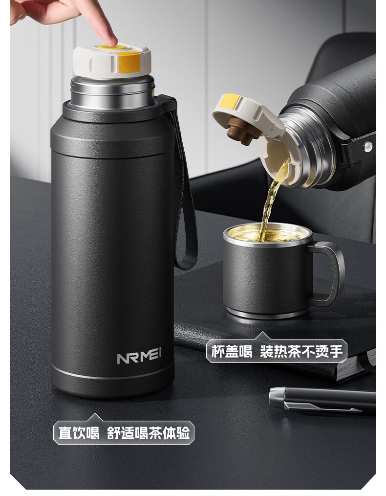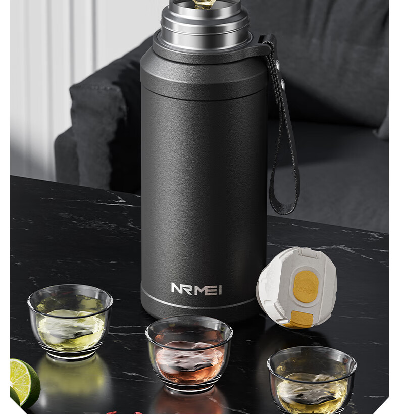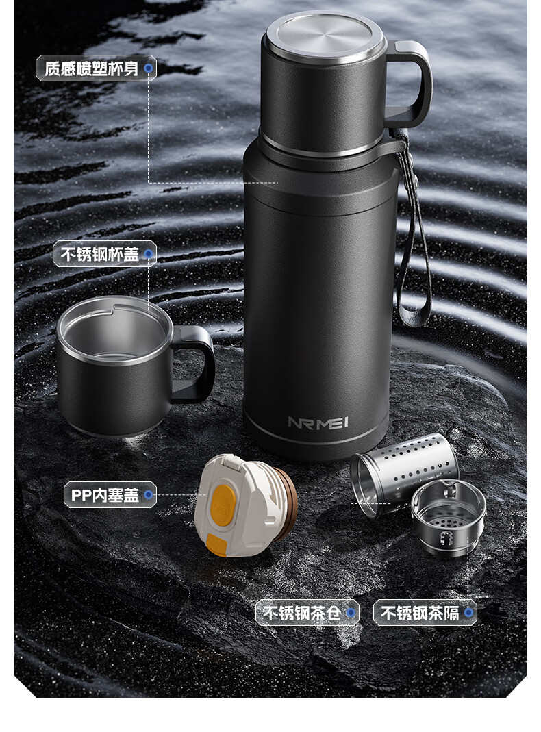 恩尔美(nRMEi)保温杯男款大容量茶水分离316不锈钢男士焖泡茶专用便携水壶杯子 曜石黑800ml【升级316款+茶水分离】