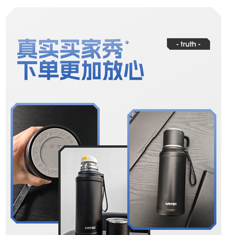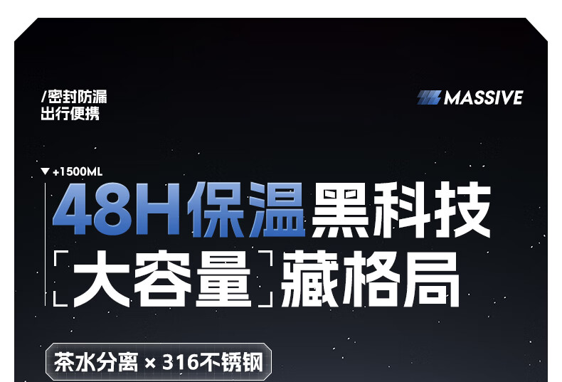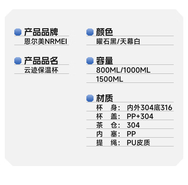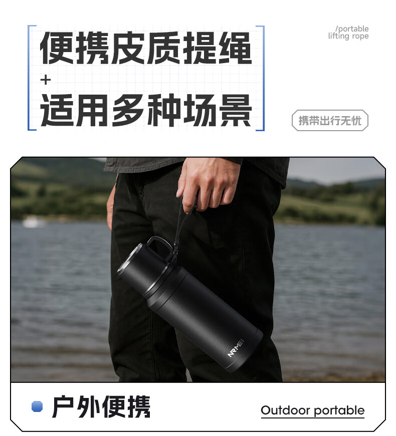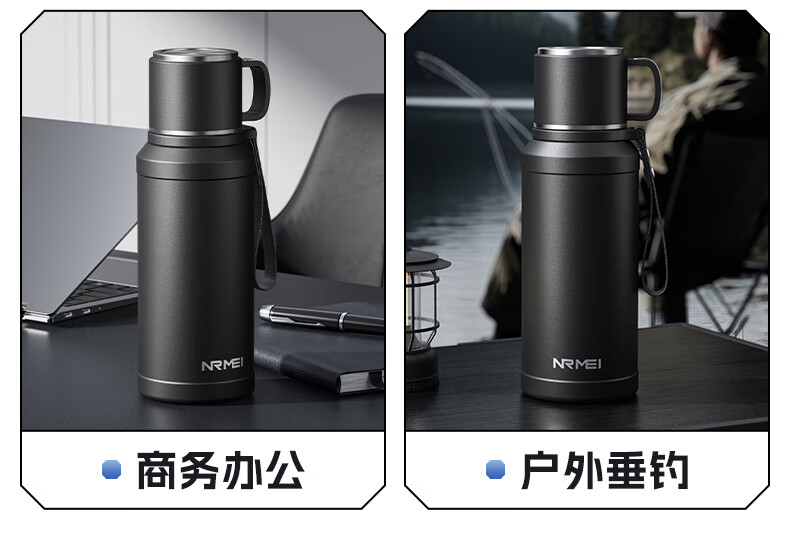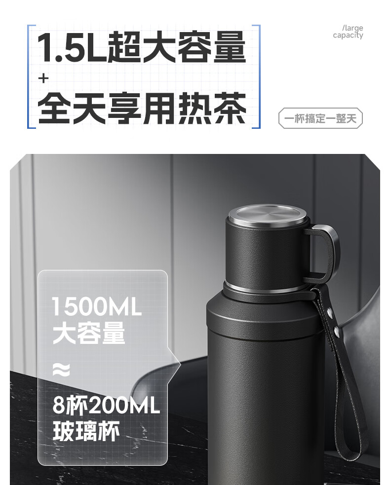 恩尔美(nRMEi)保温杯男款大容量茶水分离316不锈钢男士焖泡茶专用便携水壶杯子 曜石黑800ml【升级316款+茶水分离】