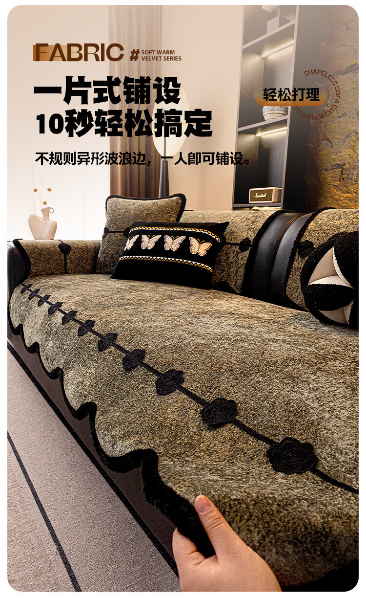 正圣沙发垫子高档沙发巾轻奢2025年流行四季通用劳伦斯皮沙发专用垫 异形维纳斯-米白 70cm*70cm (可用作扶手和靠背)