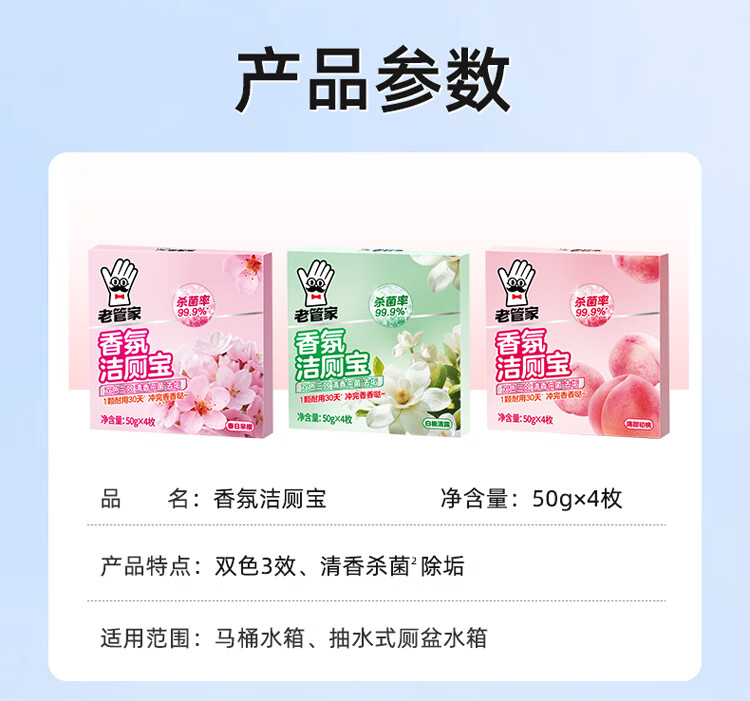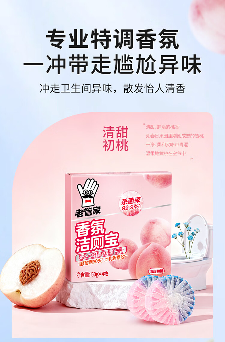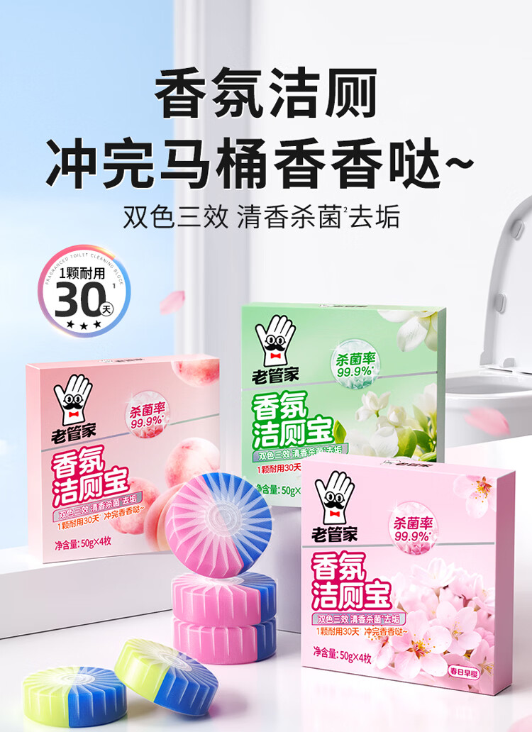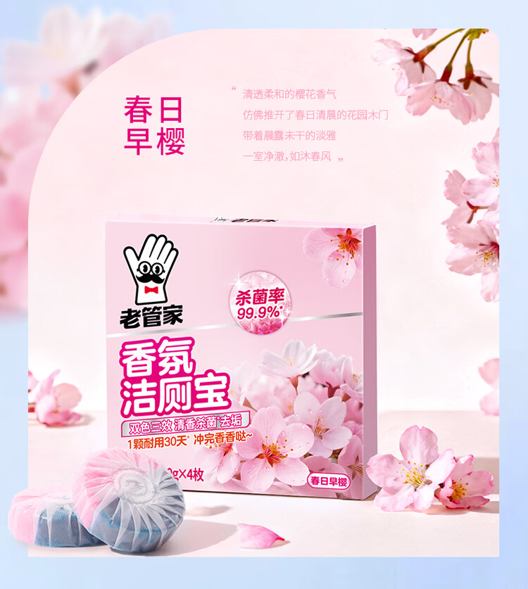 老管家香氛洁厕宝蓝泡泡洁厕灵马桶清洁剂去异味除垢留香去渍洁厕块 200g 1盒 【春日早樱】