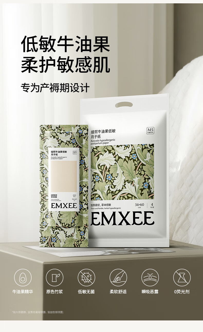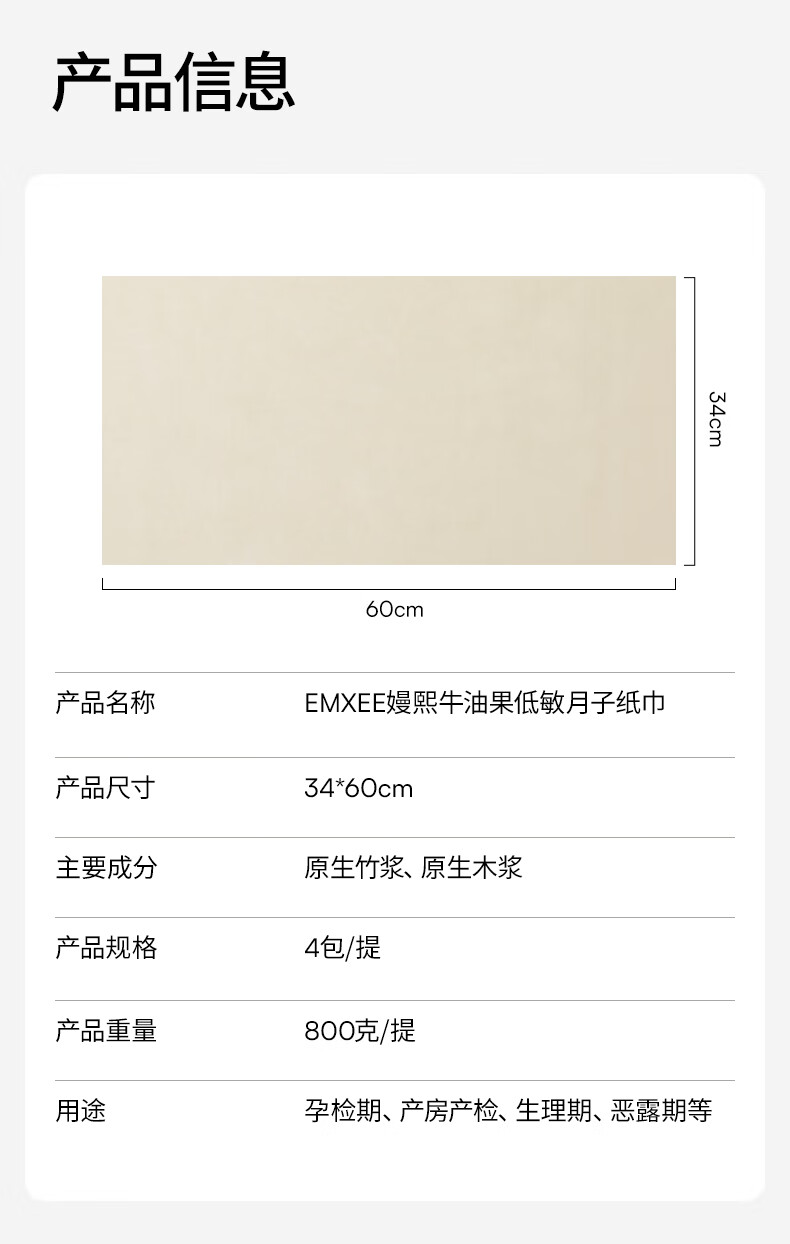 嫚熙(EMXEE)月子纸产妇用卫生纸孕妇产房用纸巾产褥期用刀纸加长 800g 4包 【/提】