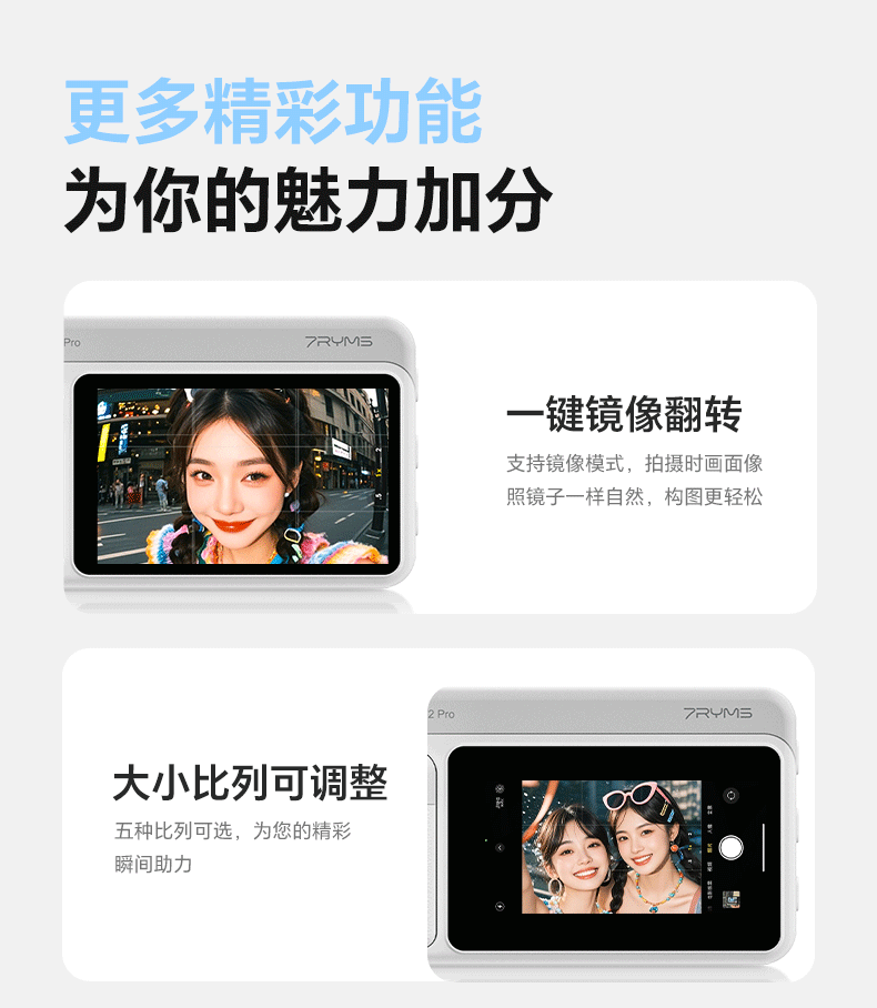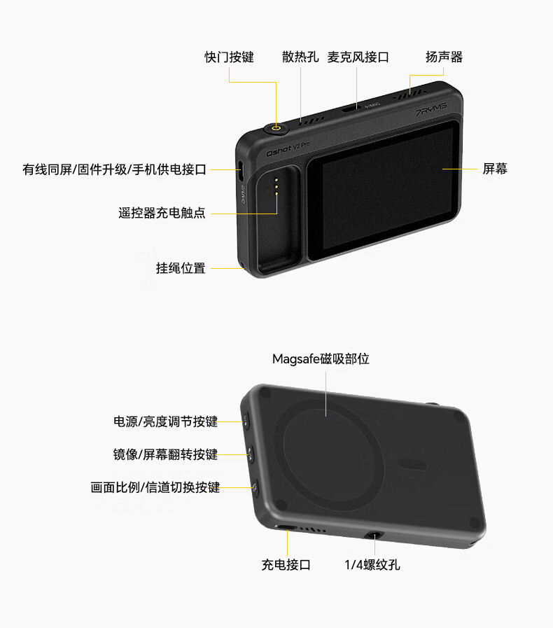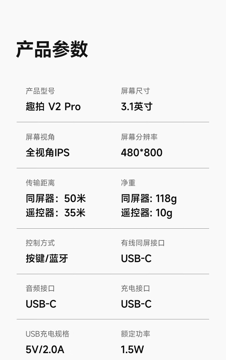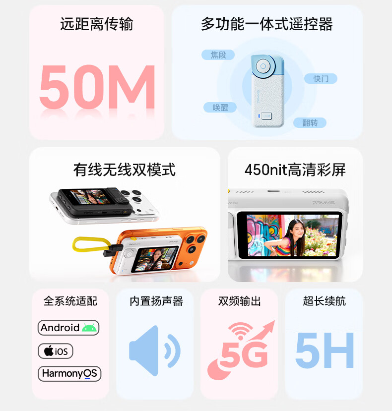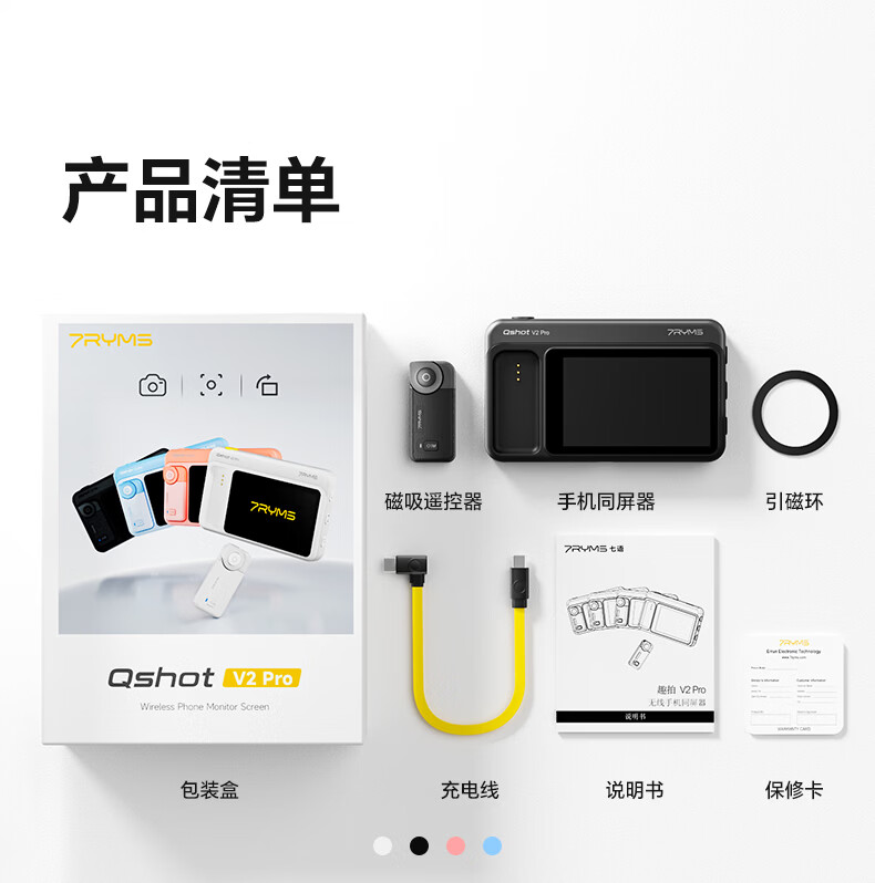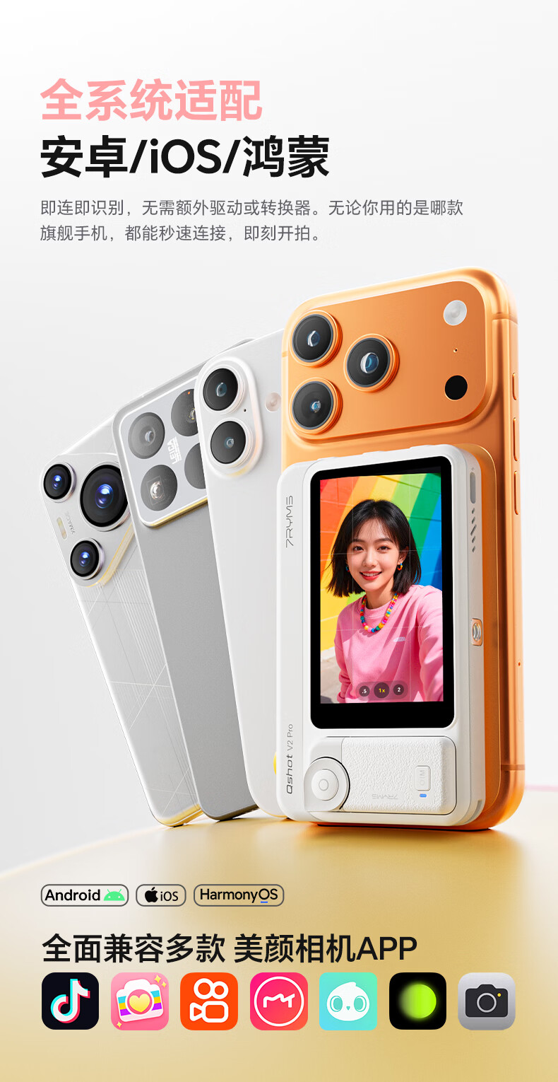 7RYMS七语后置自拍显示屏趣拍V2 Pro手机自拍投屏器无线投屏同屏器随拍宝摄像配件直播拍照神器录视频 【珍珠白】趣拍V2 Pro有线无线双模式连接
