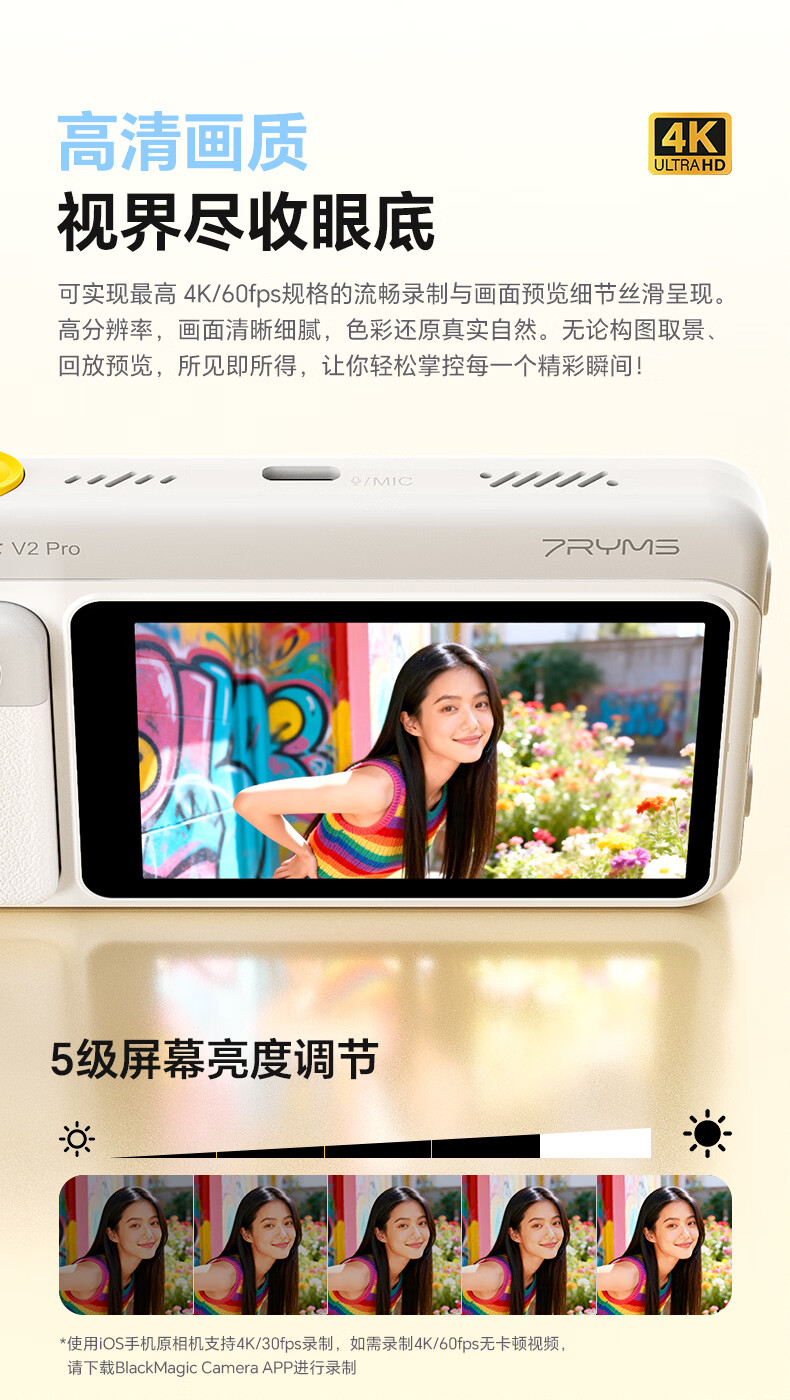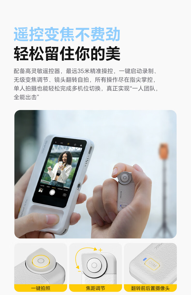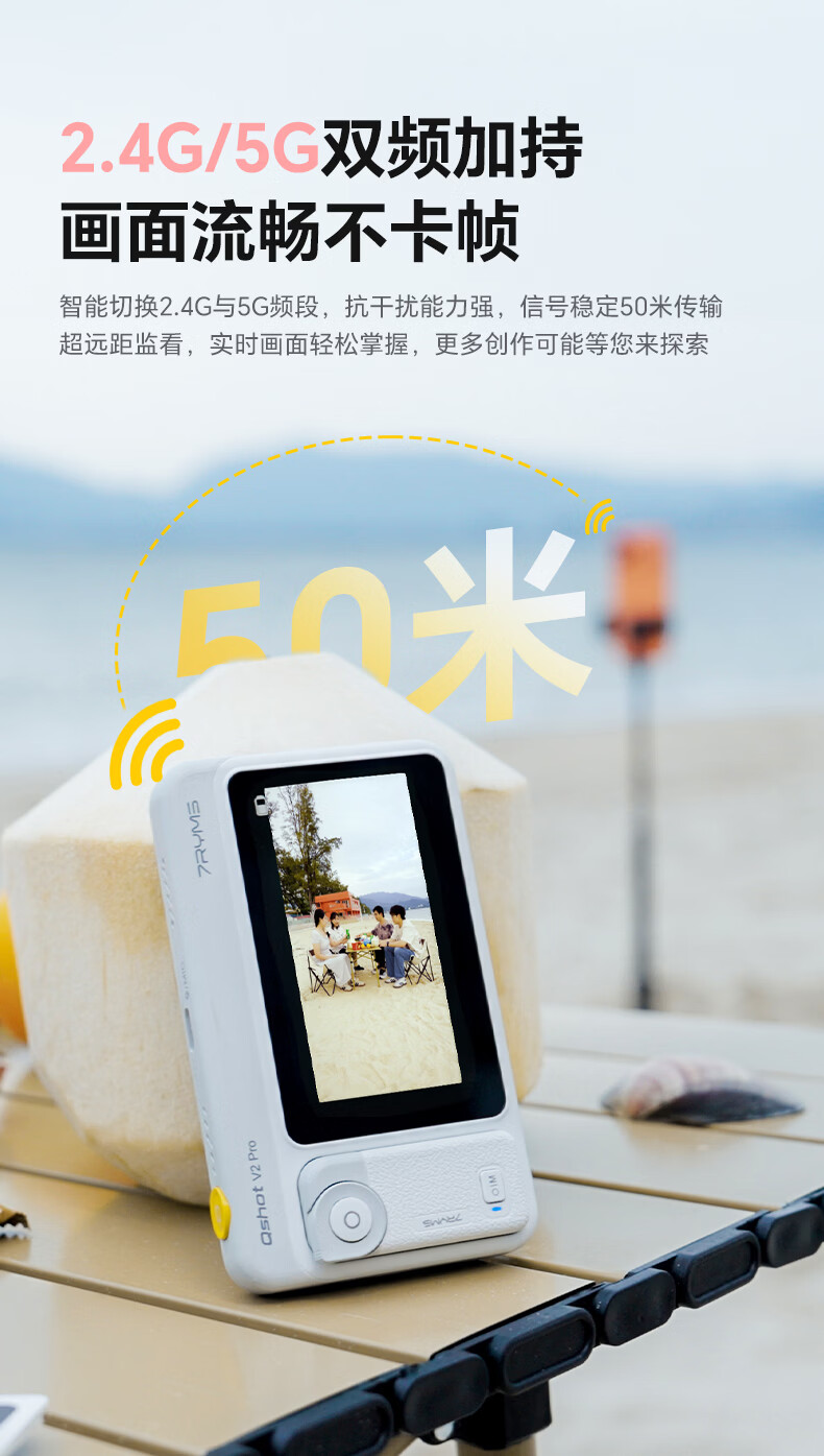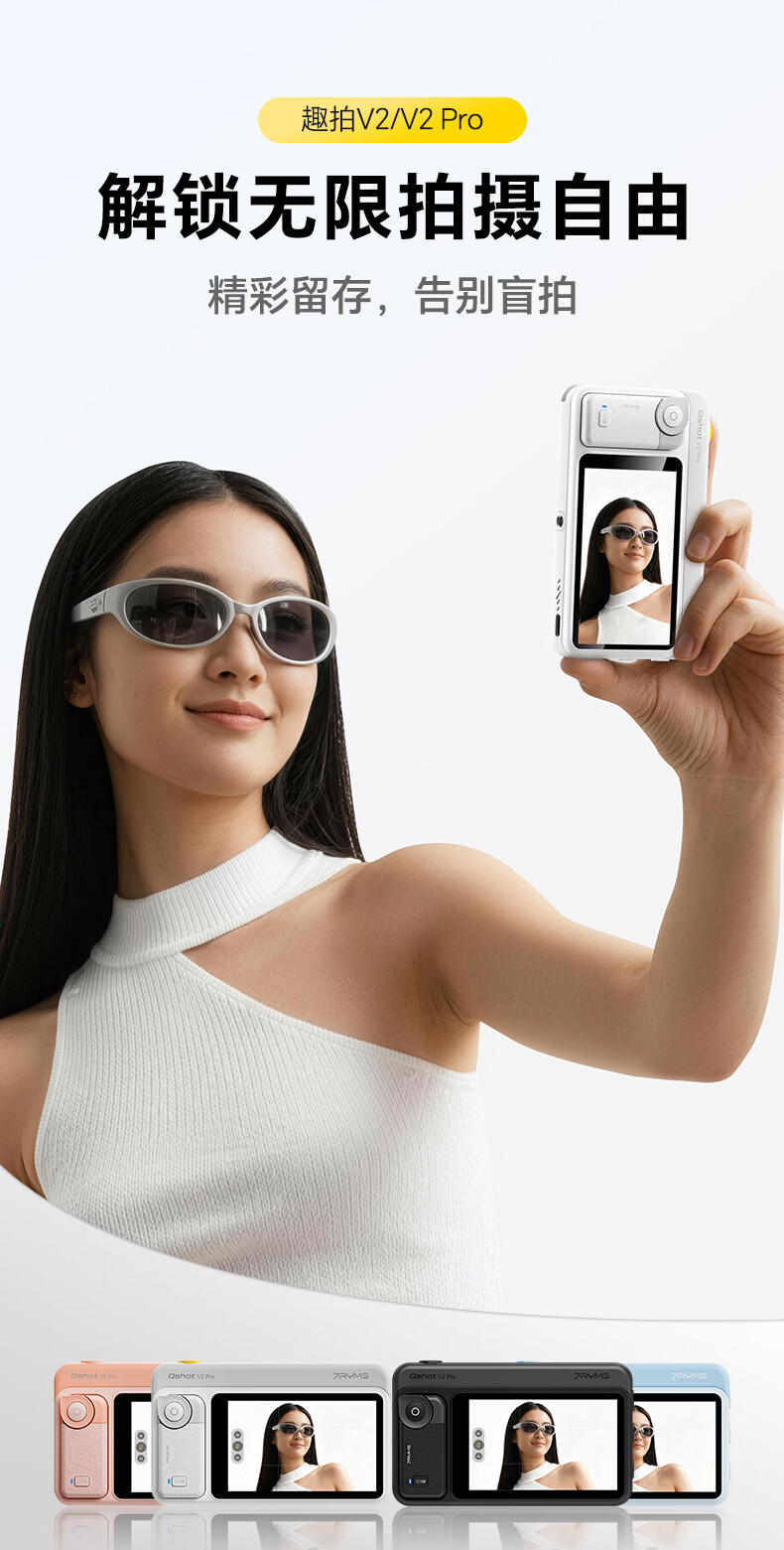 7RYMS七语后置自拍显示屏趣拍V2 Pro手机自拍投屏器无线投屏同屏器随拍宝摄像配件直播拍照神器录视频 【珍珠白】趣拍V2 Pro有线无线双模式连接