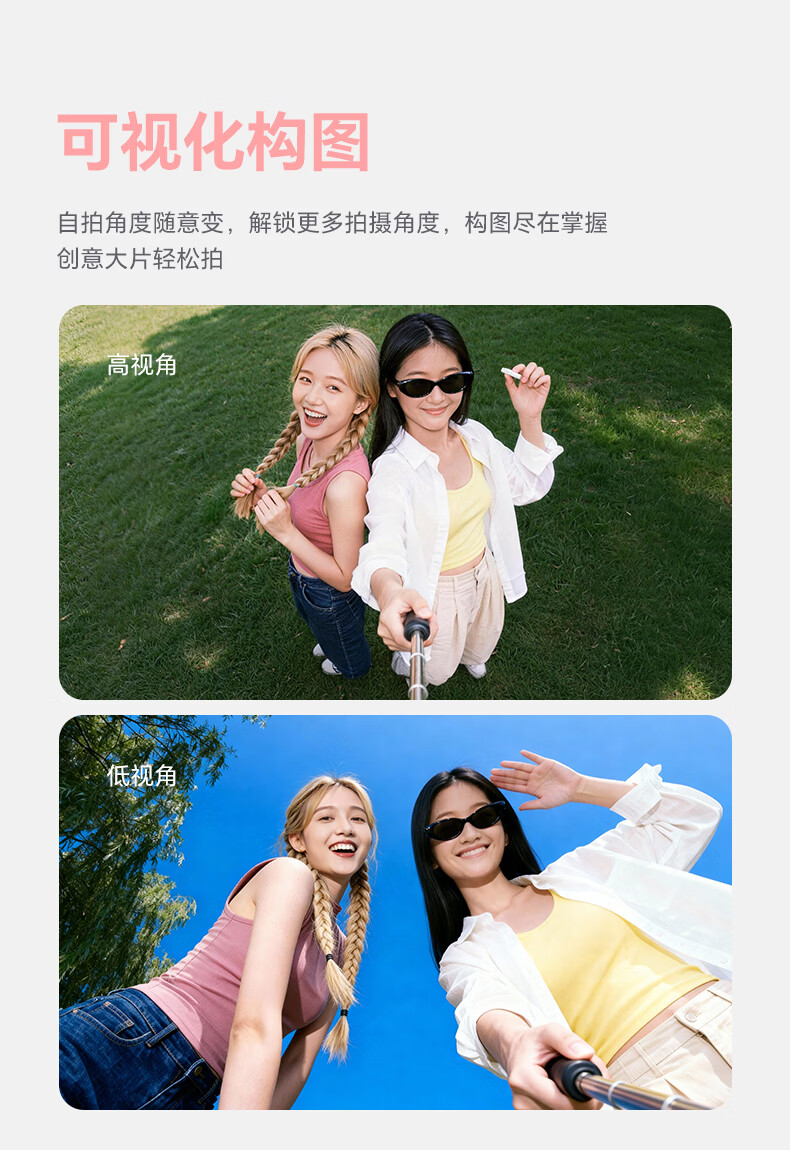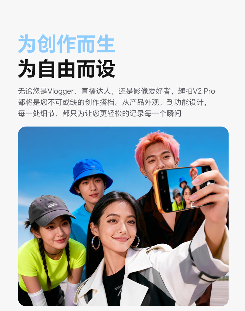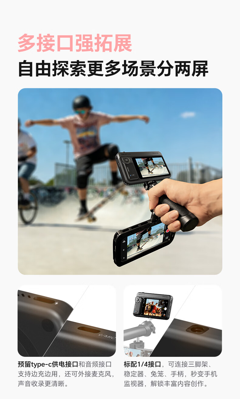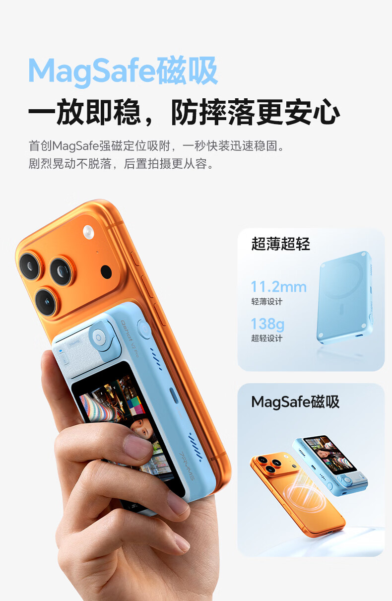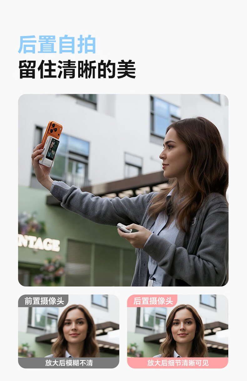 7RYMS七语后置自拍显示屏趣拍V2 Pro手机自拍投屏器无线投屏同屏器随拍宝摄像配件直播拍照神器录视频 【珍珠白】趣拍V2 Pro有线无线双模式连接