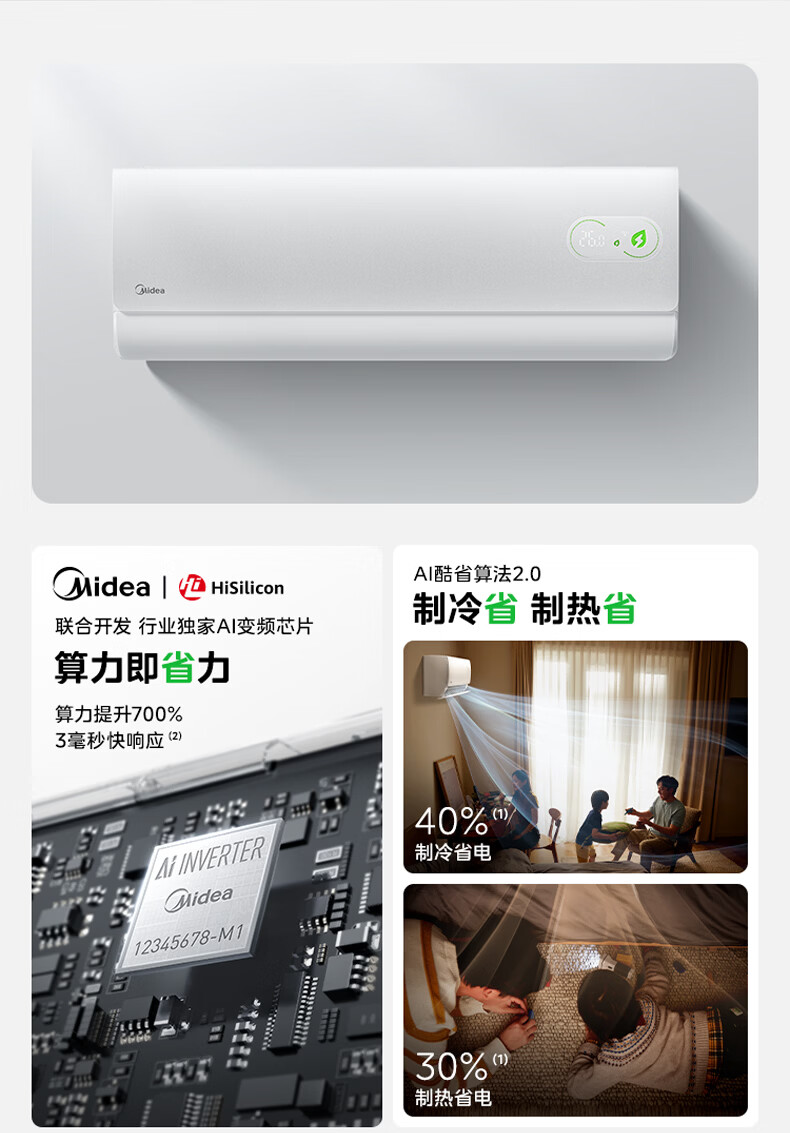 美的空调挂机 大1.5匹/1匹 酷省电二代 新一级能效 变频冷暖自清洁家用卧室空调 家电国家补贴以旧换新 酷省电二代 大1.5匹 省电40%