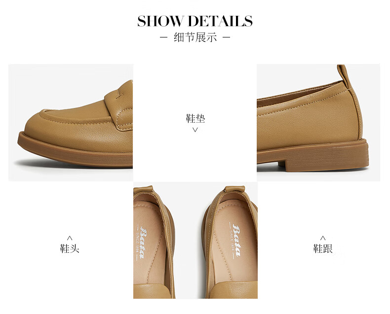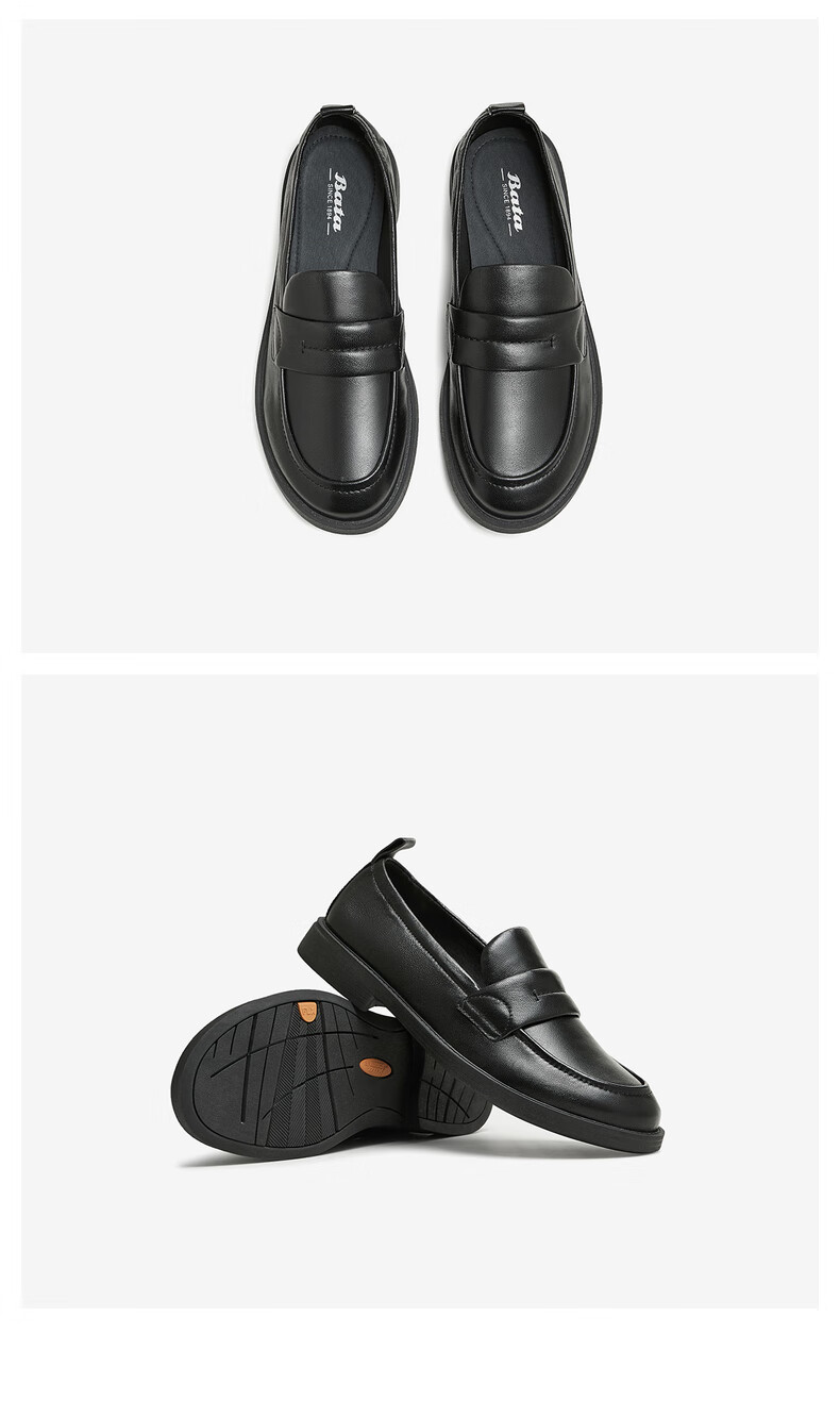 拔佳Bata羊皮一脚蹬乐福鞋女春秋学院英伦风AYA26CA4 黑色 39