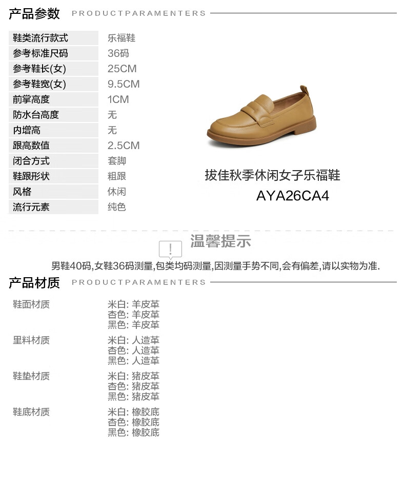 天美意乐福鞋厚底商场同款一脚蹬女鞋上班通勤小皮鞋新款