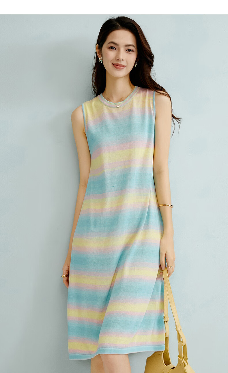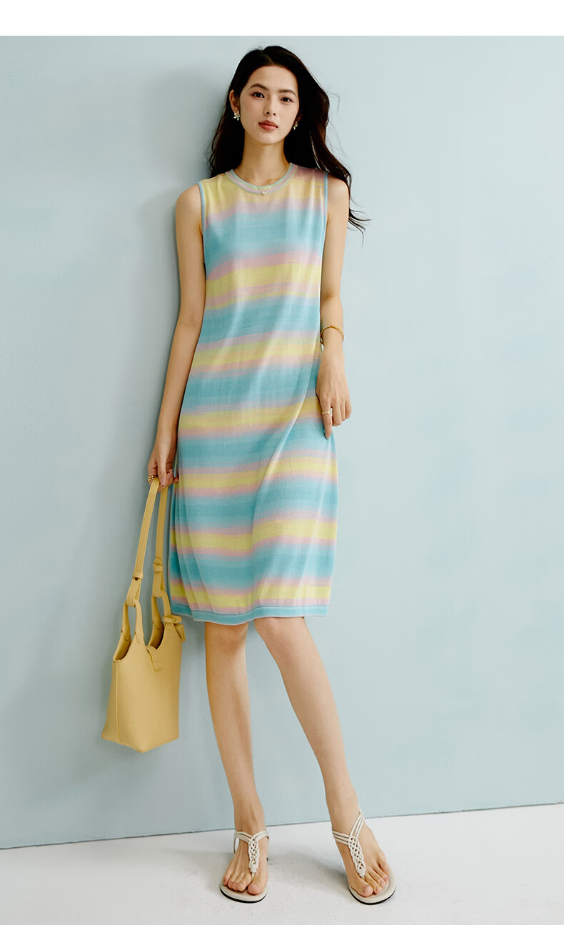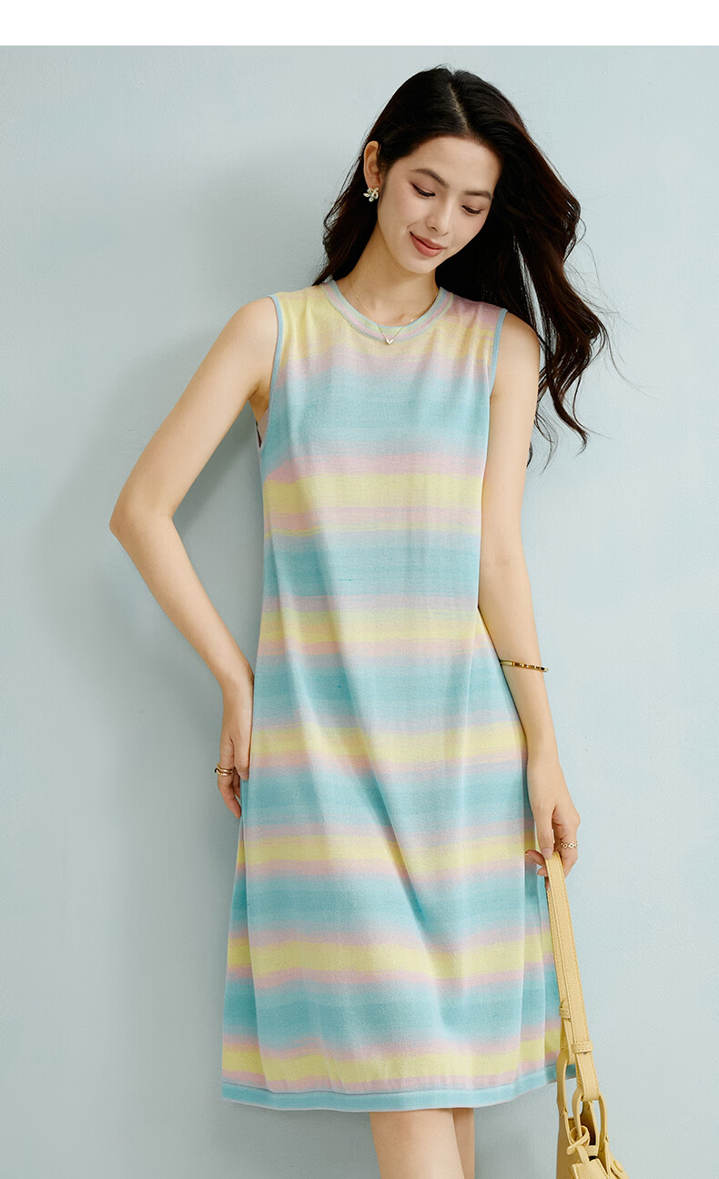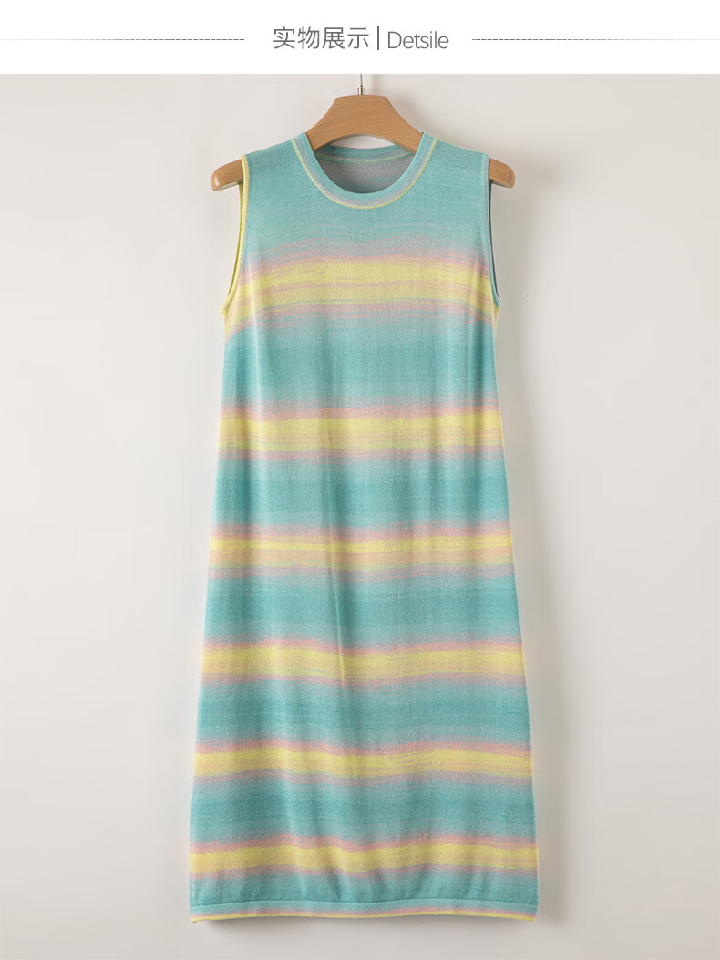 晚白【新品】2026年春款时尚减龄针织裙条纹休闲直筒无袖连衣裙 蓝色 S