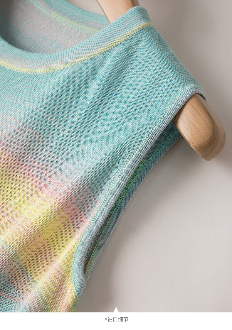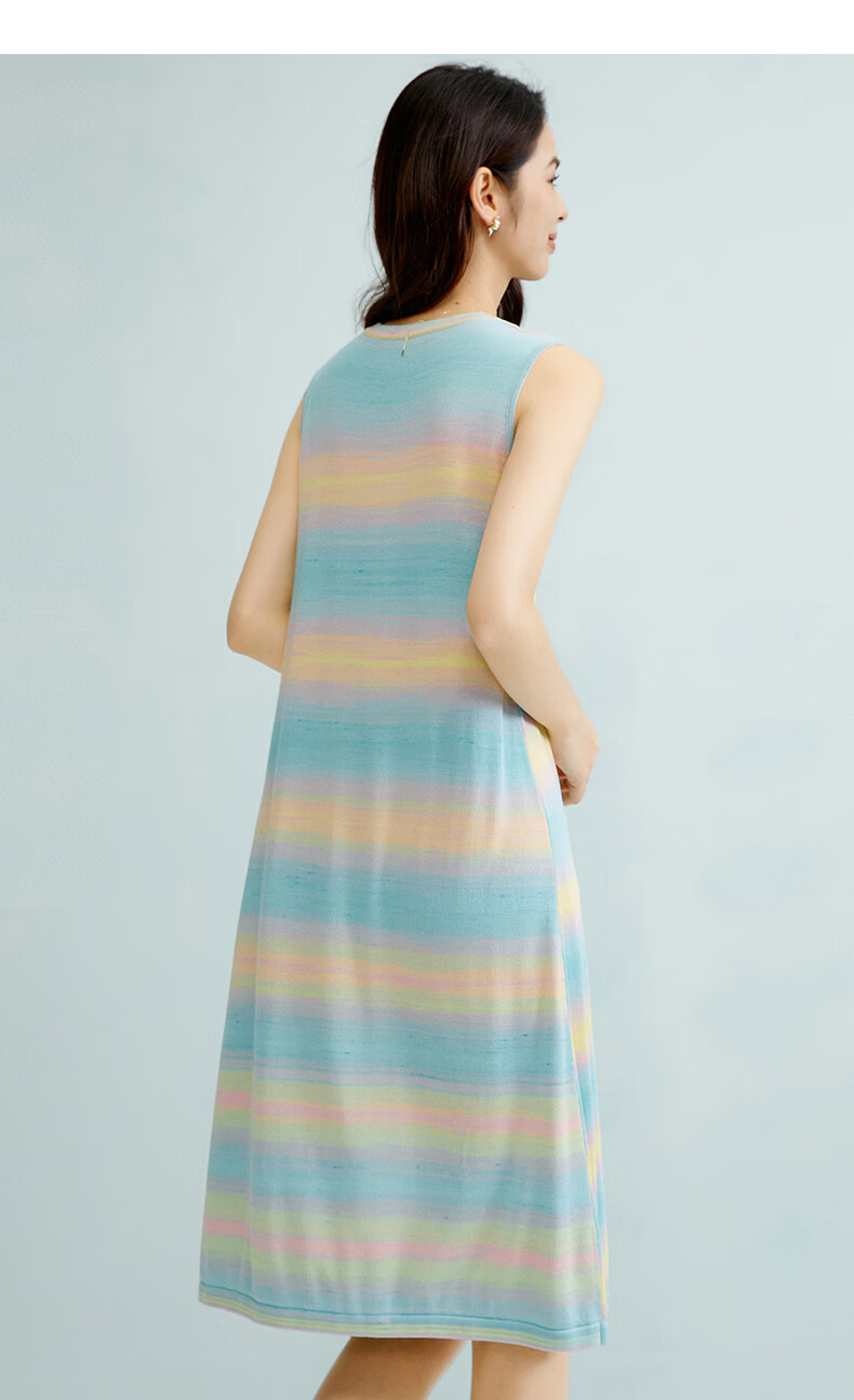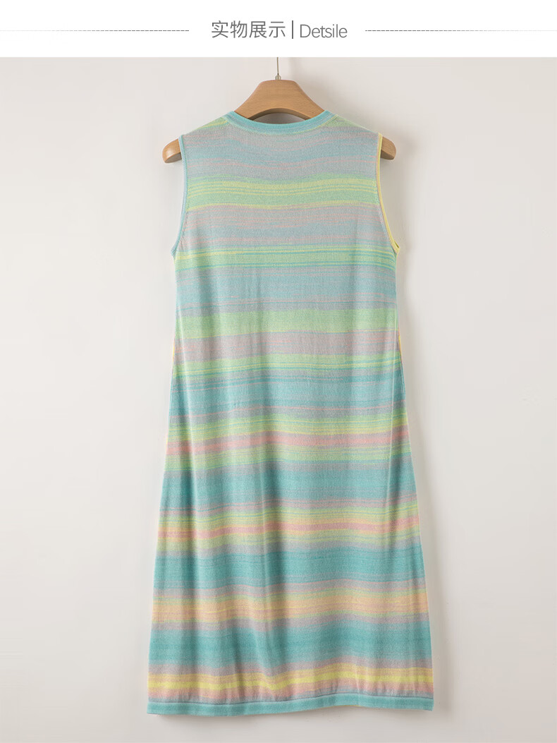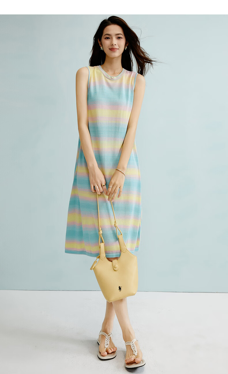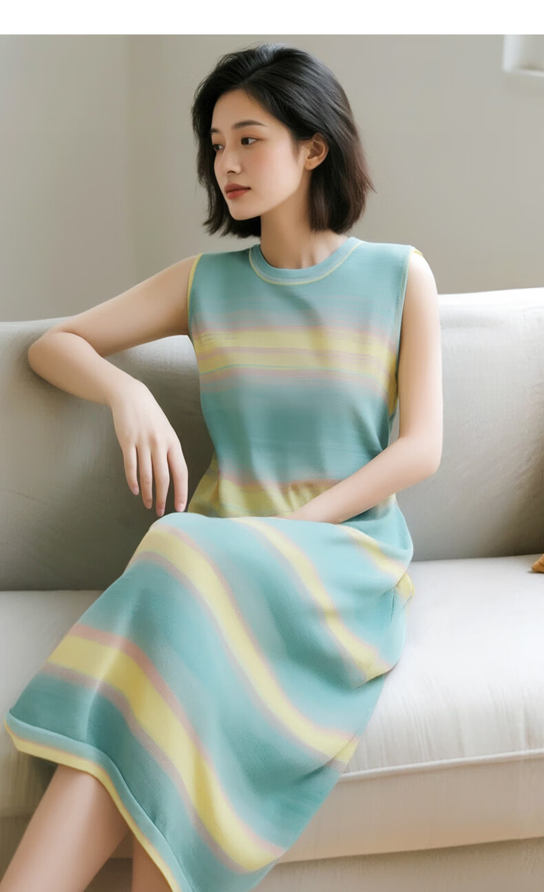 晚白【新品】2026年春款时尚减龄针织裙条纹休闲直筒无袖连衣裙 蓝色 S