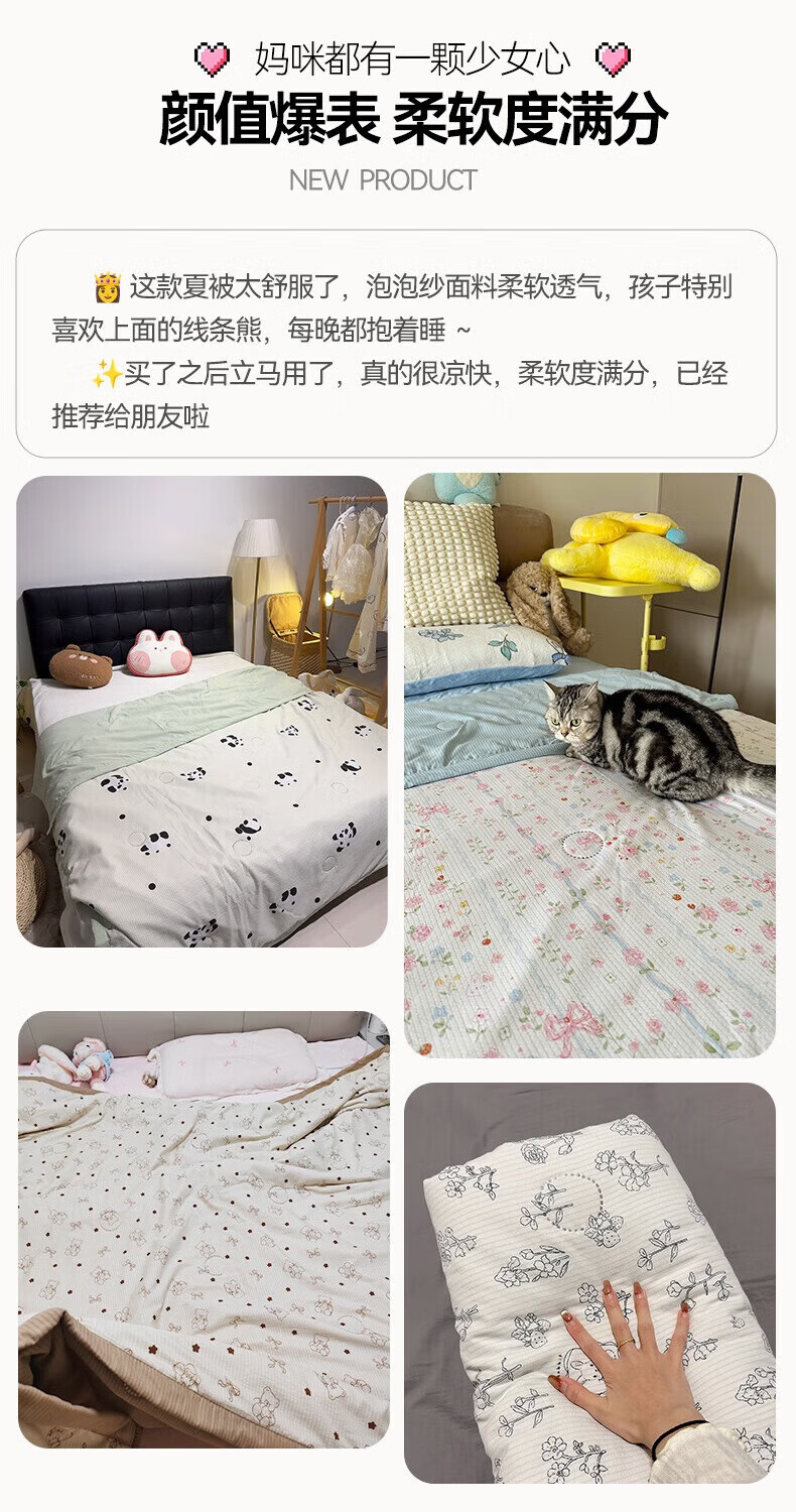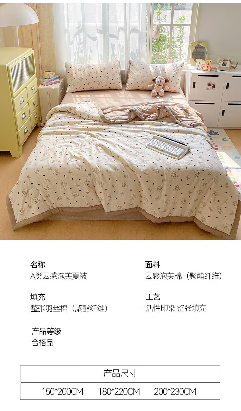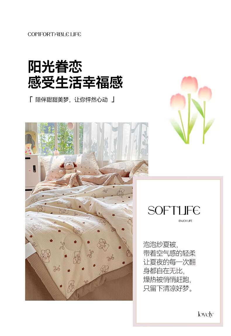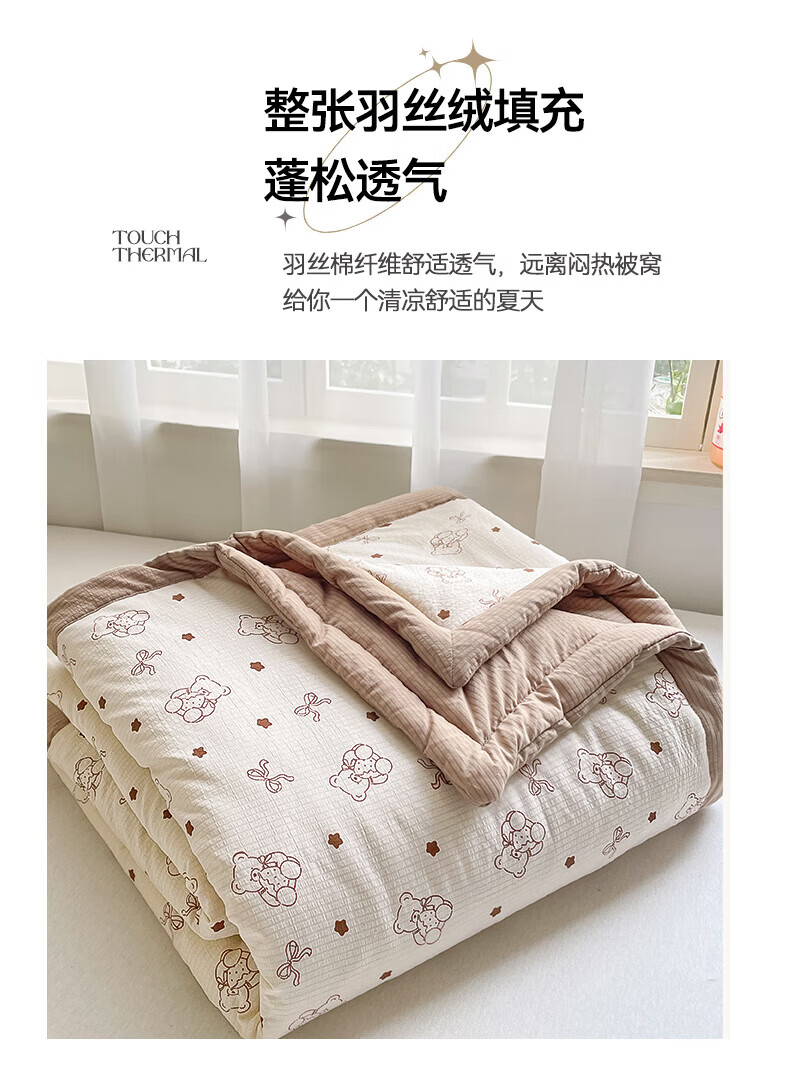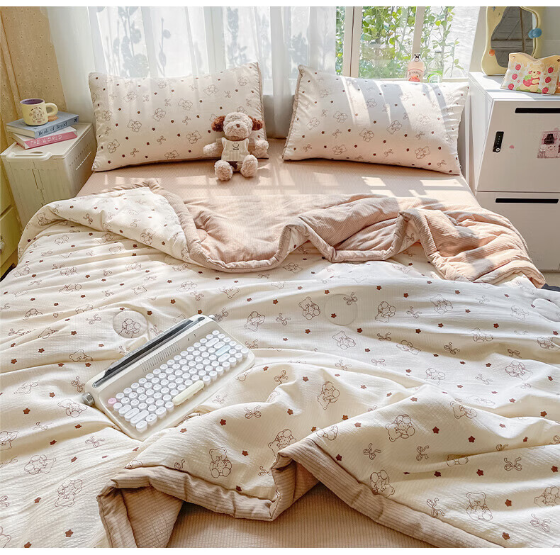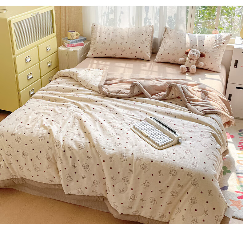 高睿空调被夏凉被薄款被子学生宿舍夏被被芯可机水洗单人双人宿舍 咖系星星熊【加倍柔软可机洗】 150cm*200cm单人夏被