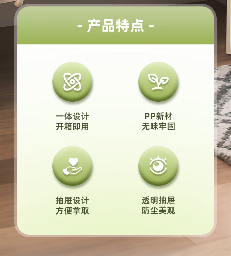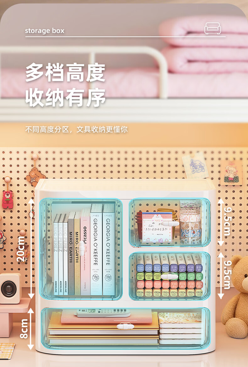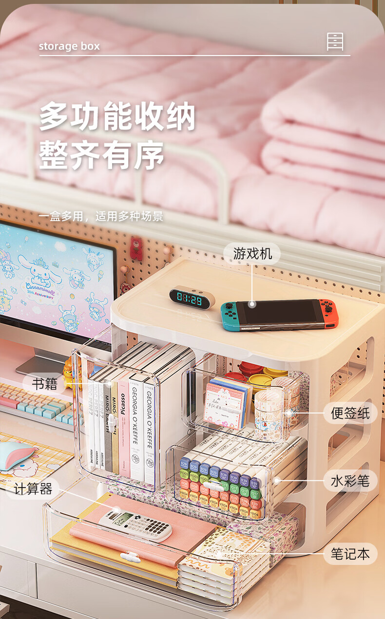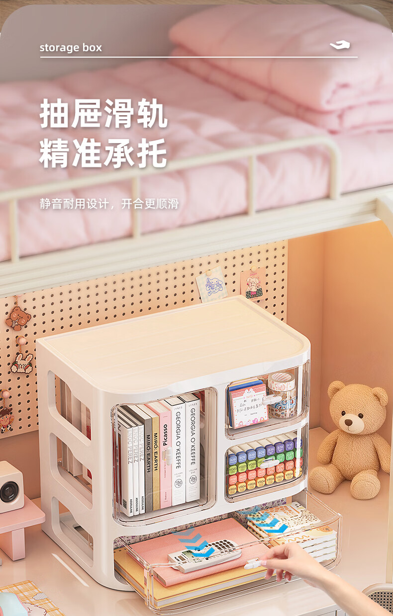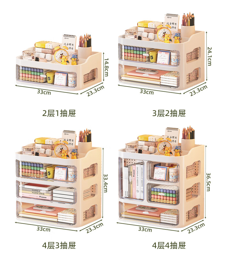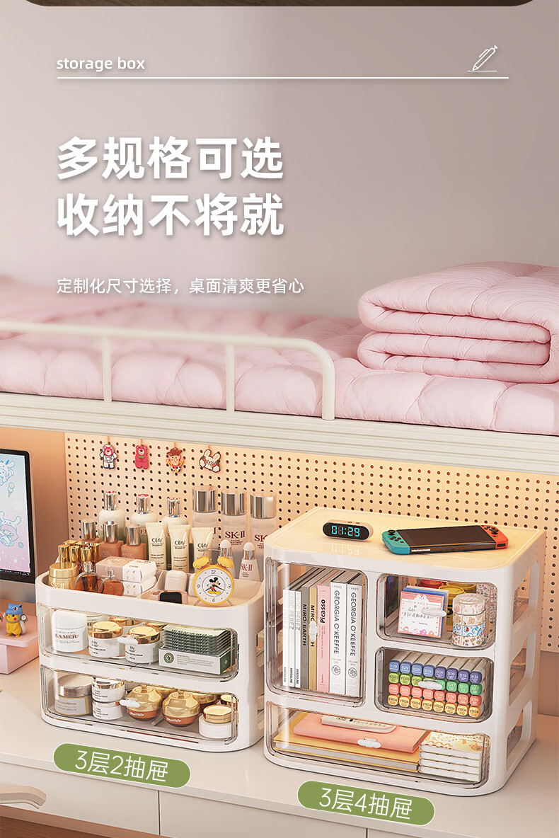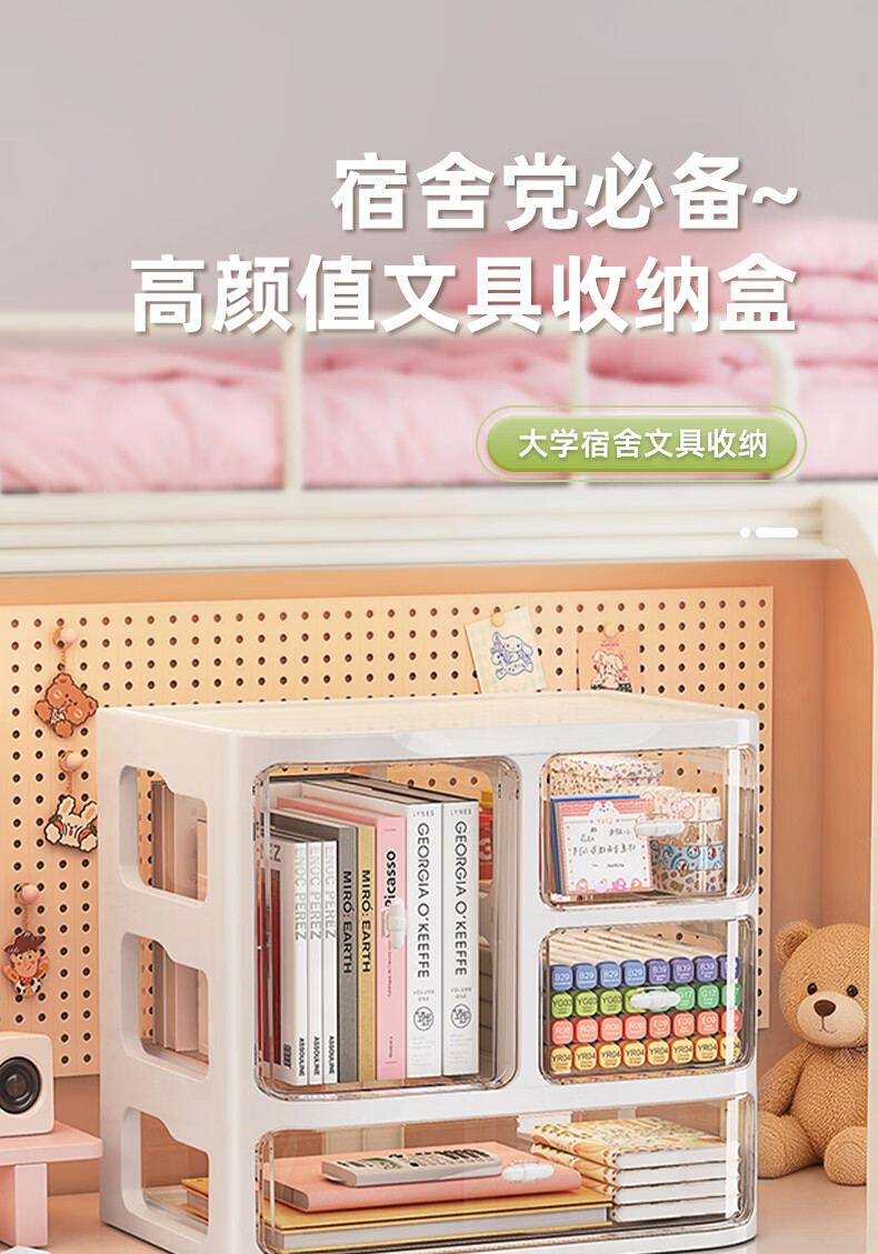 纳份爱桌面收纳盒抽屉式学生书本文具杂物整理盒大容量宿舍收纳置物架 大号奶油白-高瓶款【3层+4抽屉】-店长推荐
