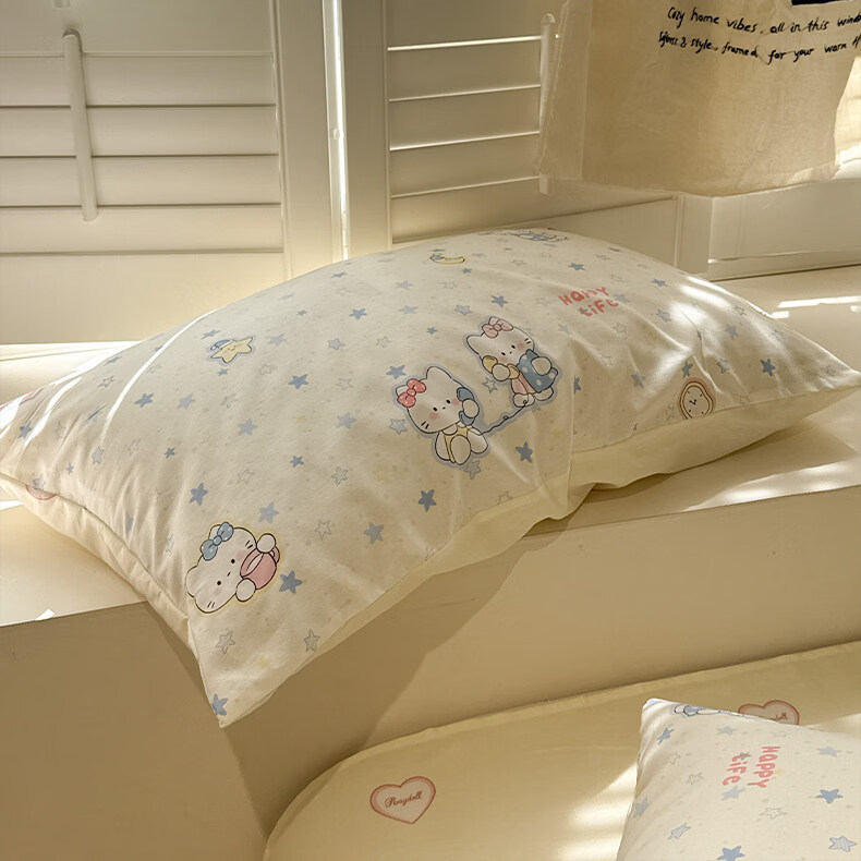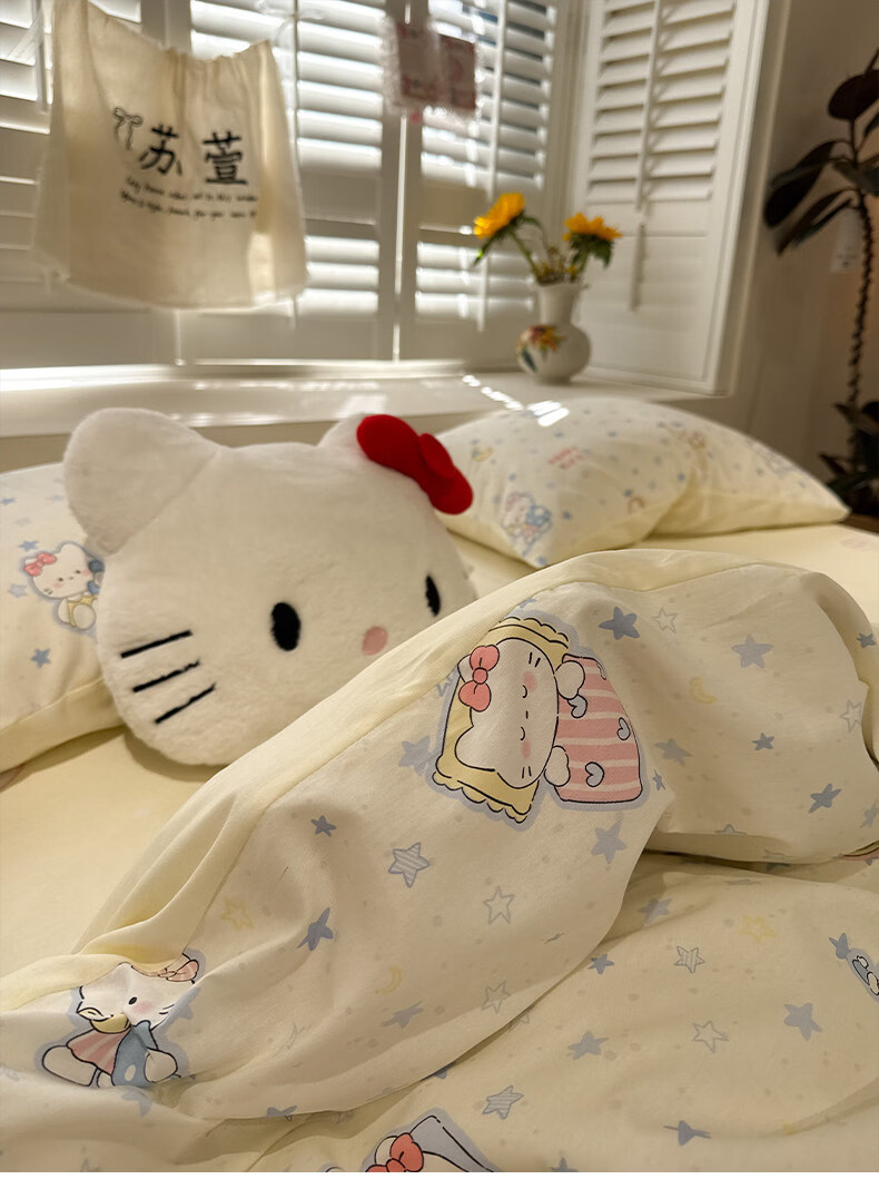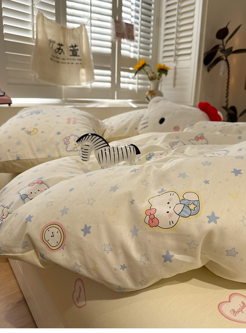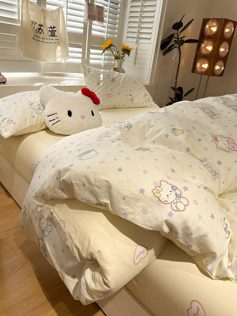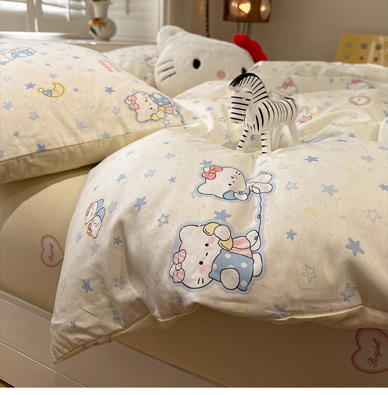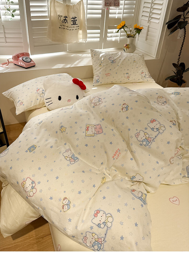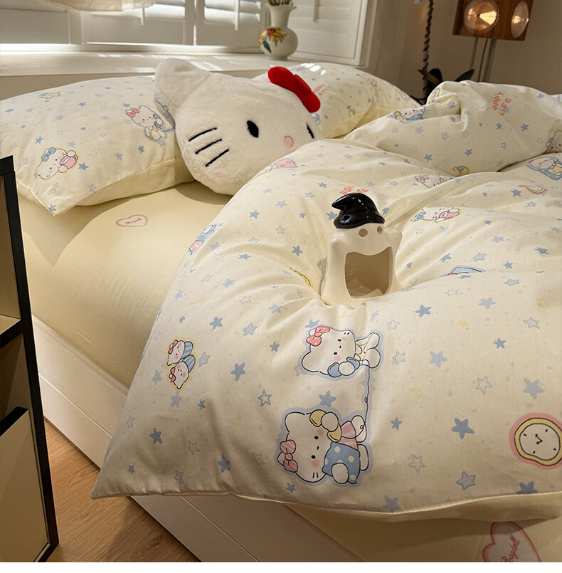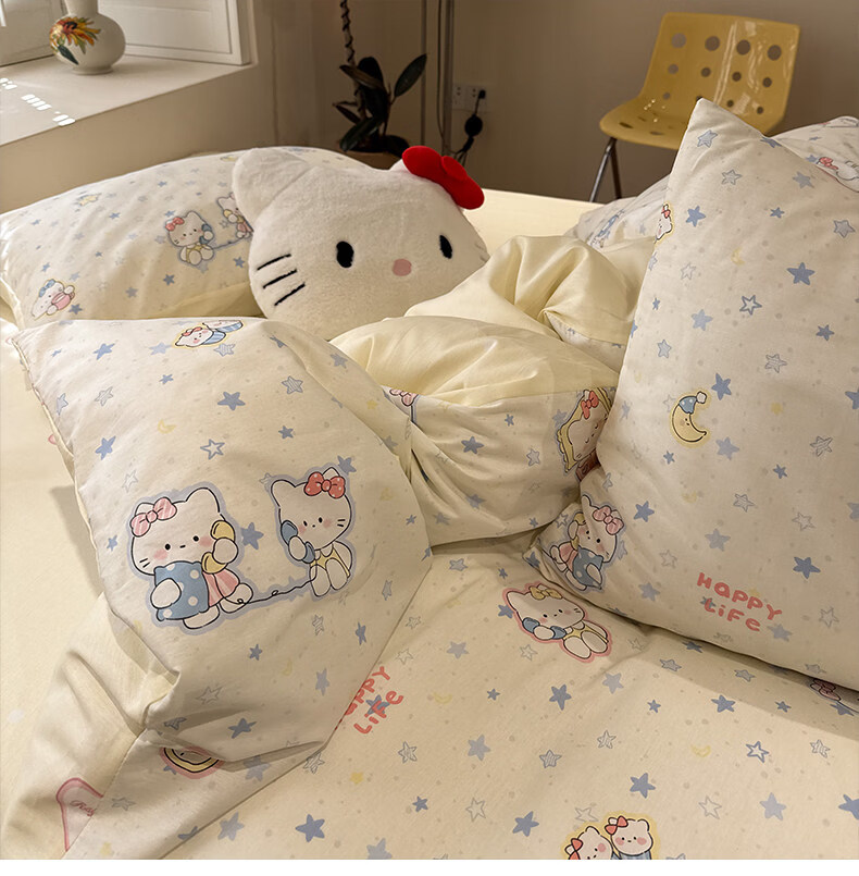 苏萱奶油风星星猫咪全棉四件套2026新款纯棉1.5m公寓被套床单床上用品 蓝星电话喵 1.5m 床单款 四件套-被套200x230cm
