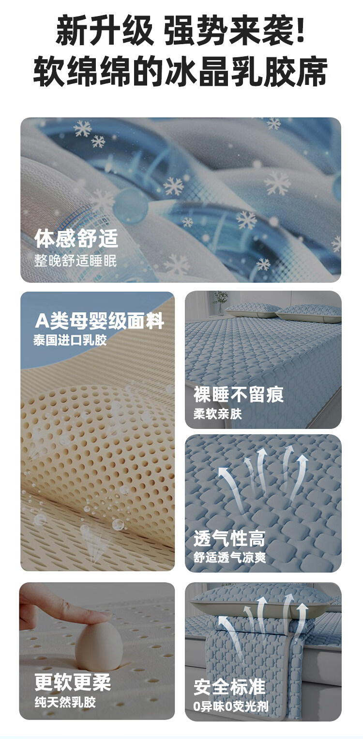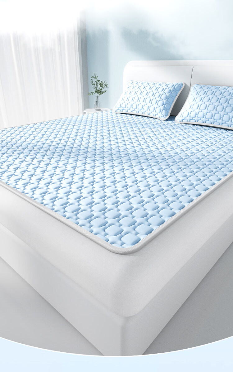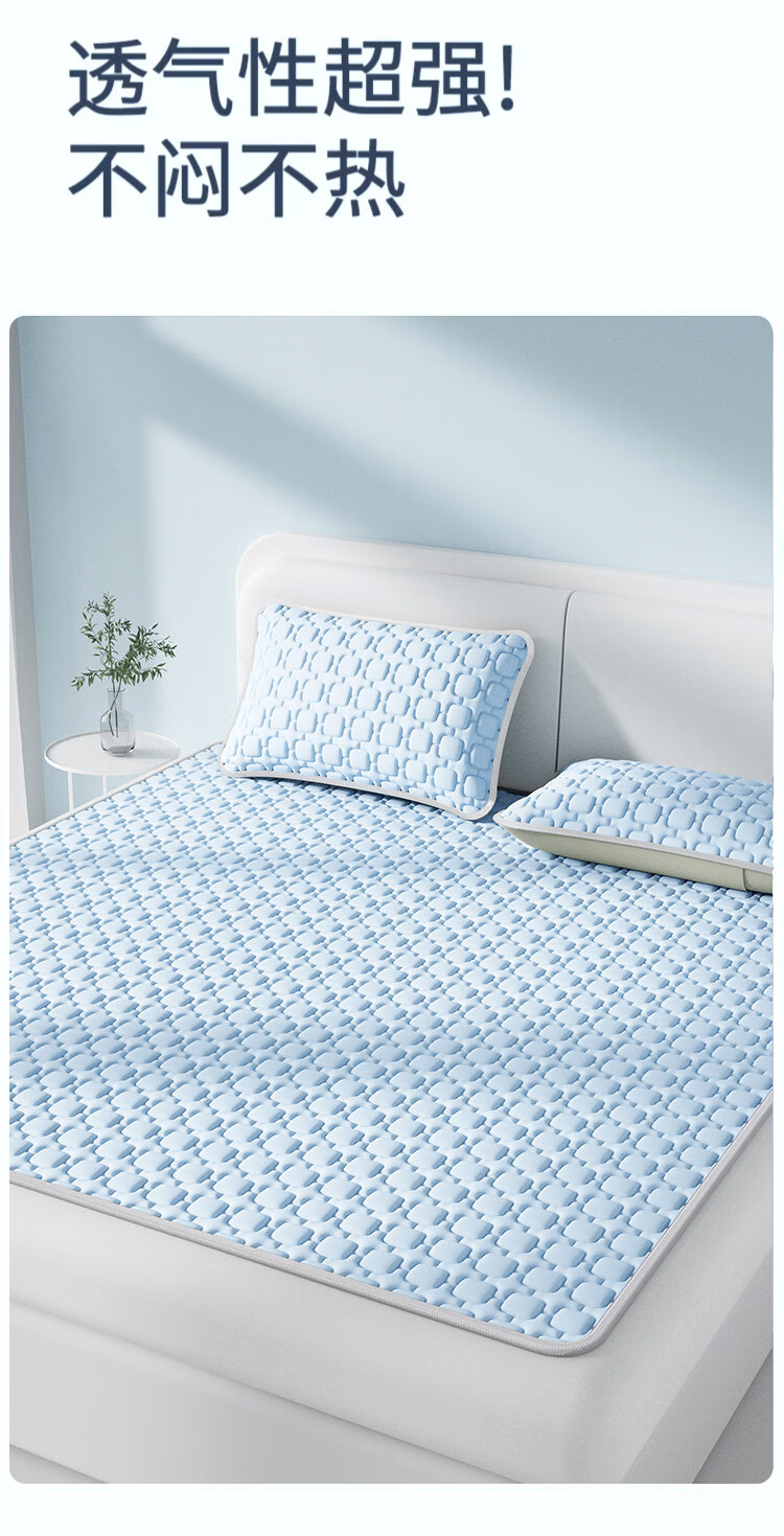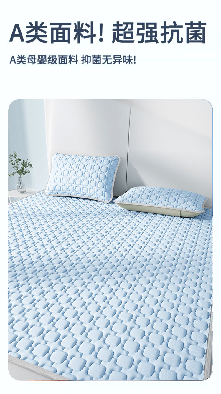 猫人(MiiOW)A类母婴级乳胶凉席冰丝席夏天专用1.8x2米可机洗软席子床单夏凉垫 【冰块仓-天空蓝】床单款-A类抗菌 三件套- 180cmx200cm 乳胶凉席+枕套*2