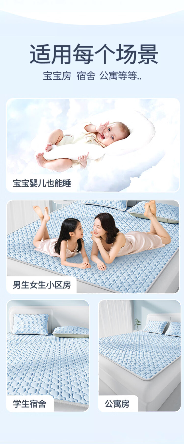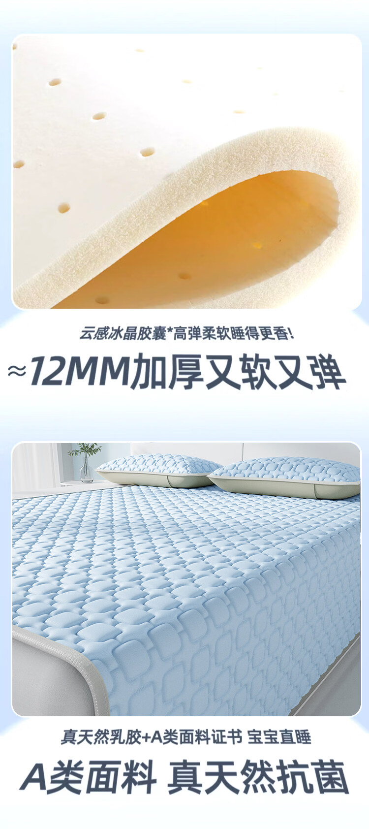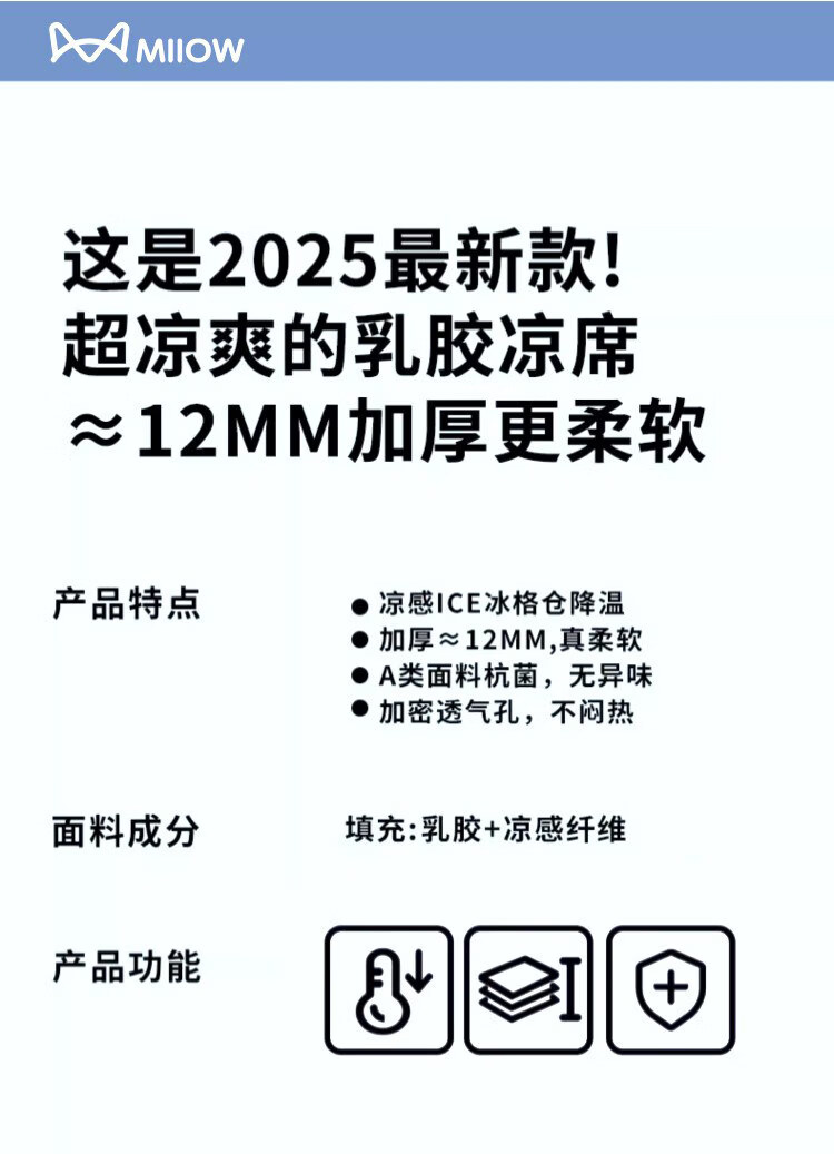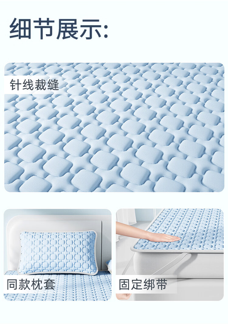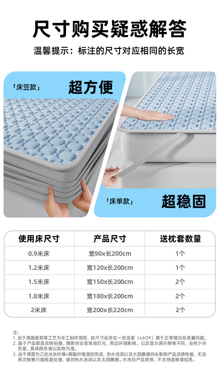 猫人(MiiOW)A类母婴级乳胶凉席冰丝席夏天专用1.8x2米可机洗软席子床单夏凉垫 【冰块仓-天空蓝】床单款-A类抗菌 三件套- 180cmx200cm 乳胶凉席+枕套*2