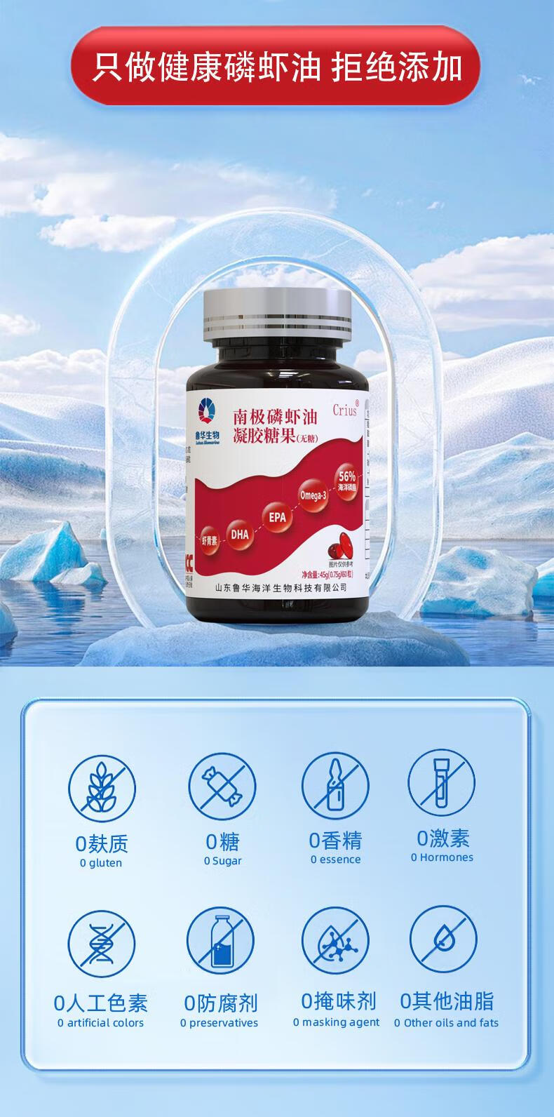 鲁华官方纯南极磷虾油虾青素omega-3EPADHA56%磷脂深海鱼油 长久呵护【60粒*12盒】