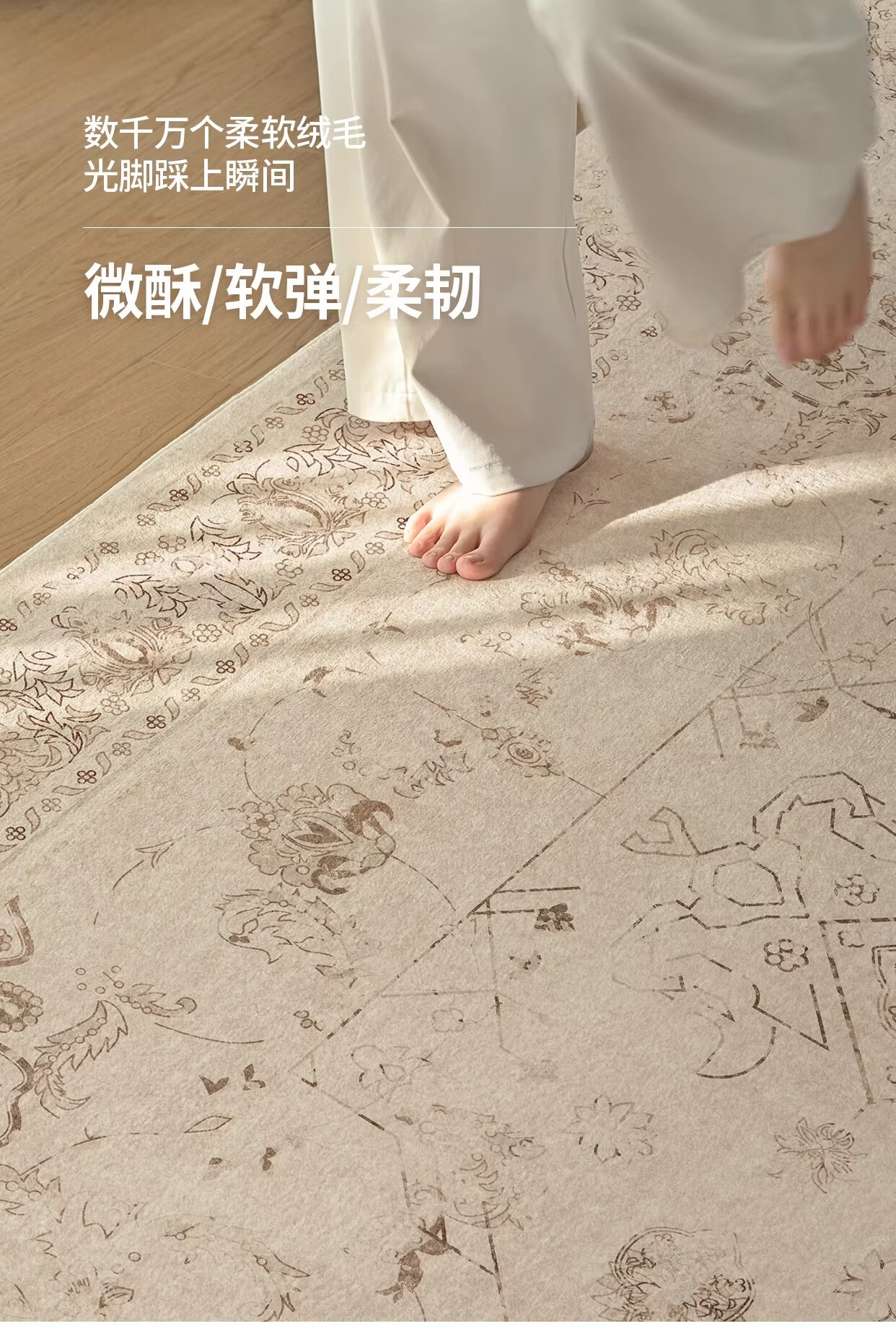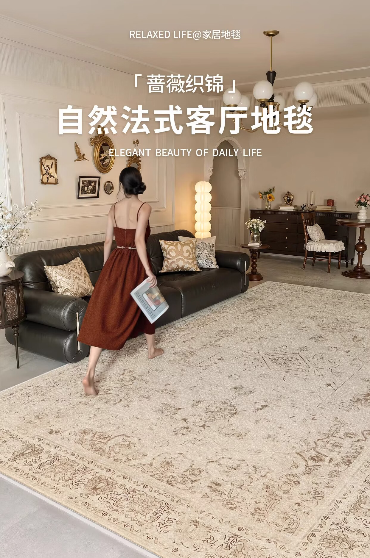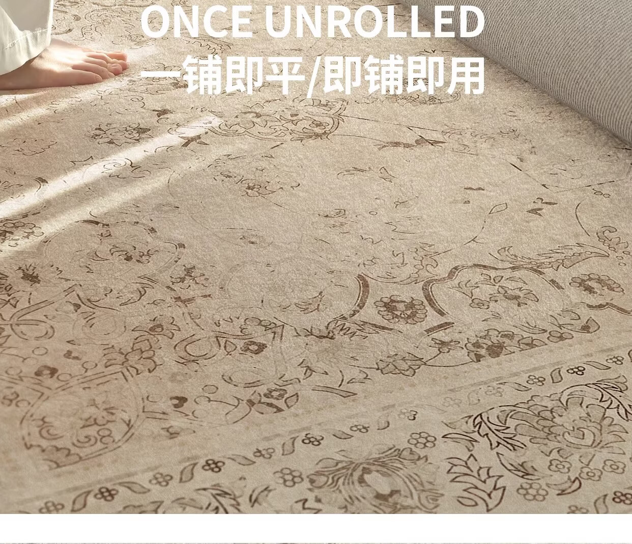 Y U-LIVE地毯客厅复古中古波斯风2026新款免洗可擦防水防污沙发地垫免打理 S仿羊绒-蔷薇织锦 140×200CM【精致双线包边】