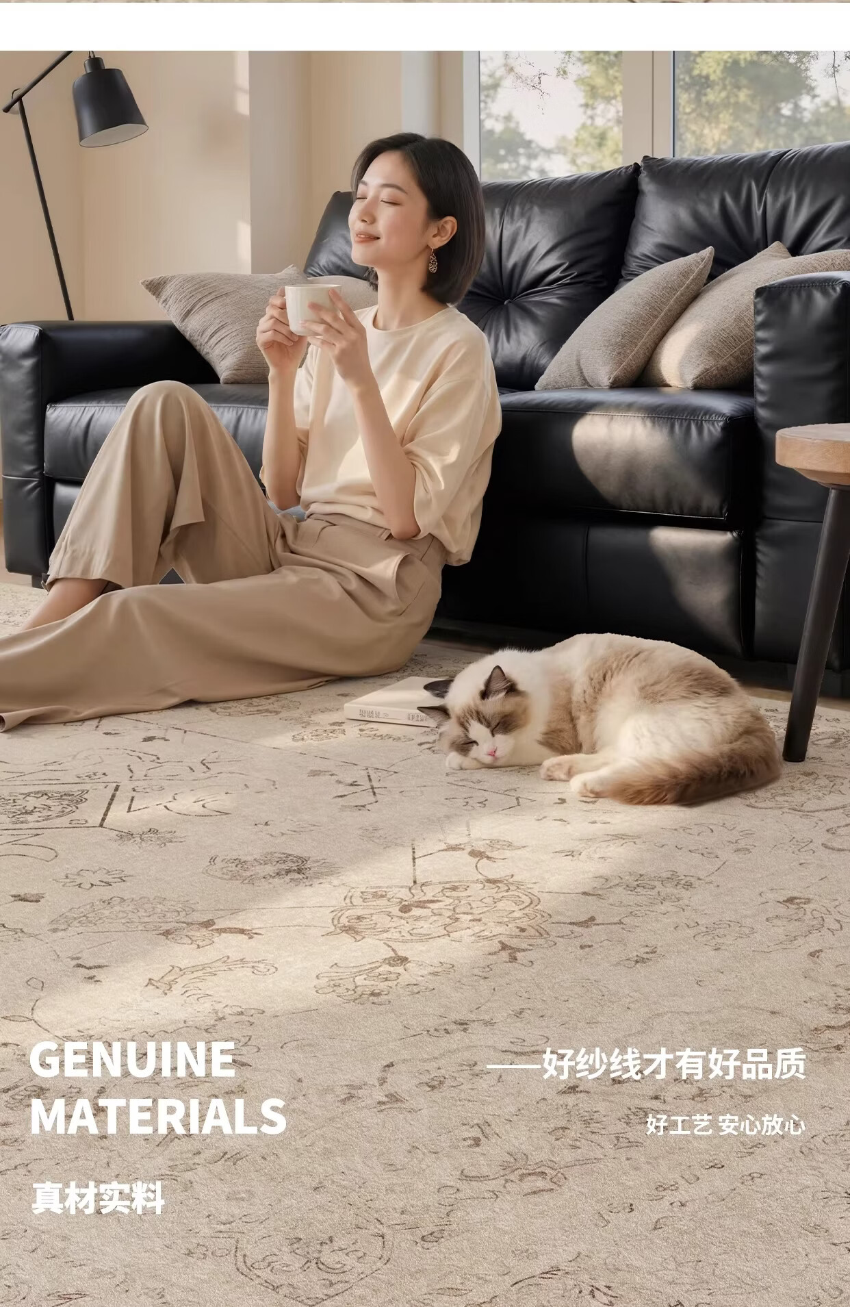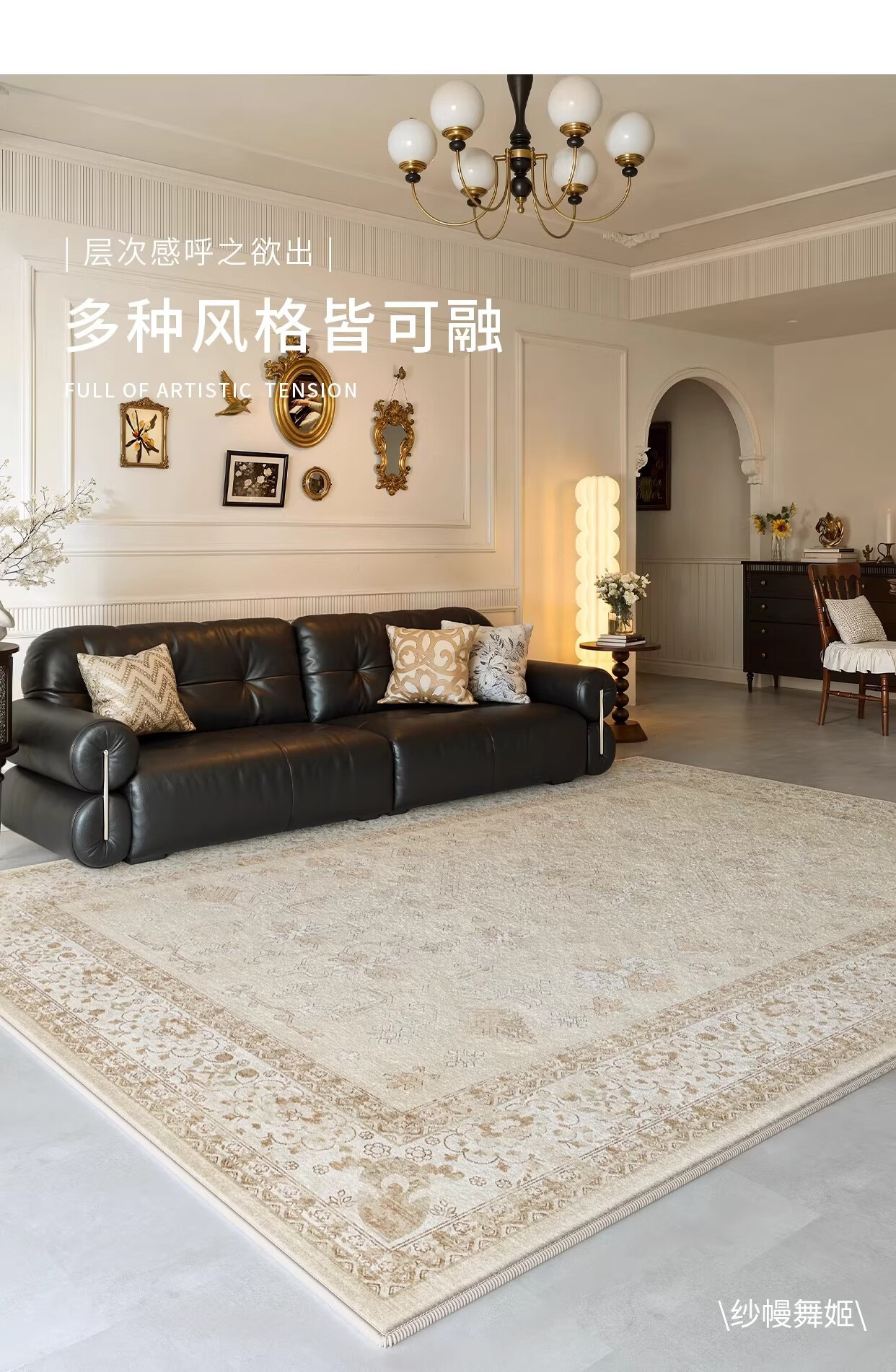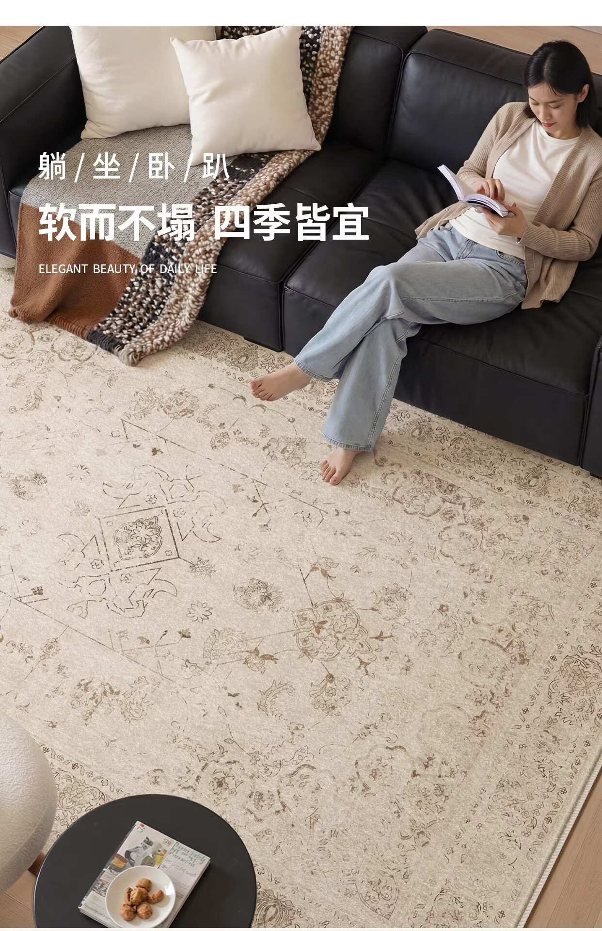 Y U-LIVE地毯客厅复古中古波斯风2026新款免洗可擦防水防污沙发地垫免打理 S仿羊绒-蔷薇织锦 140×200CM【精致双线包边】