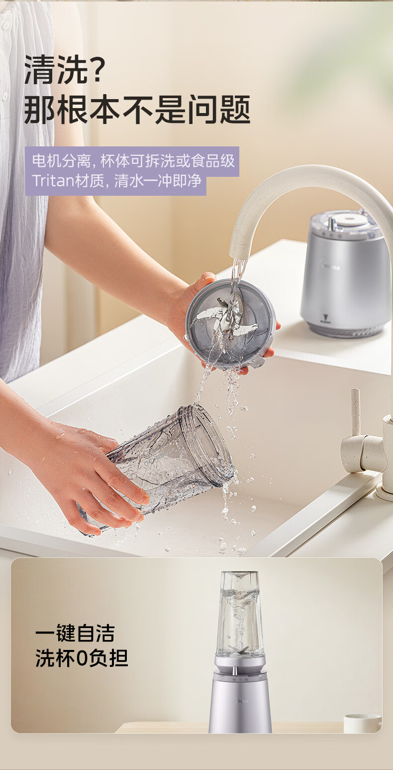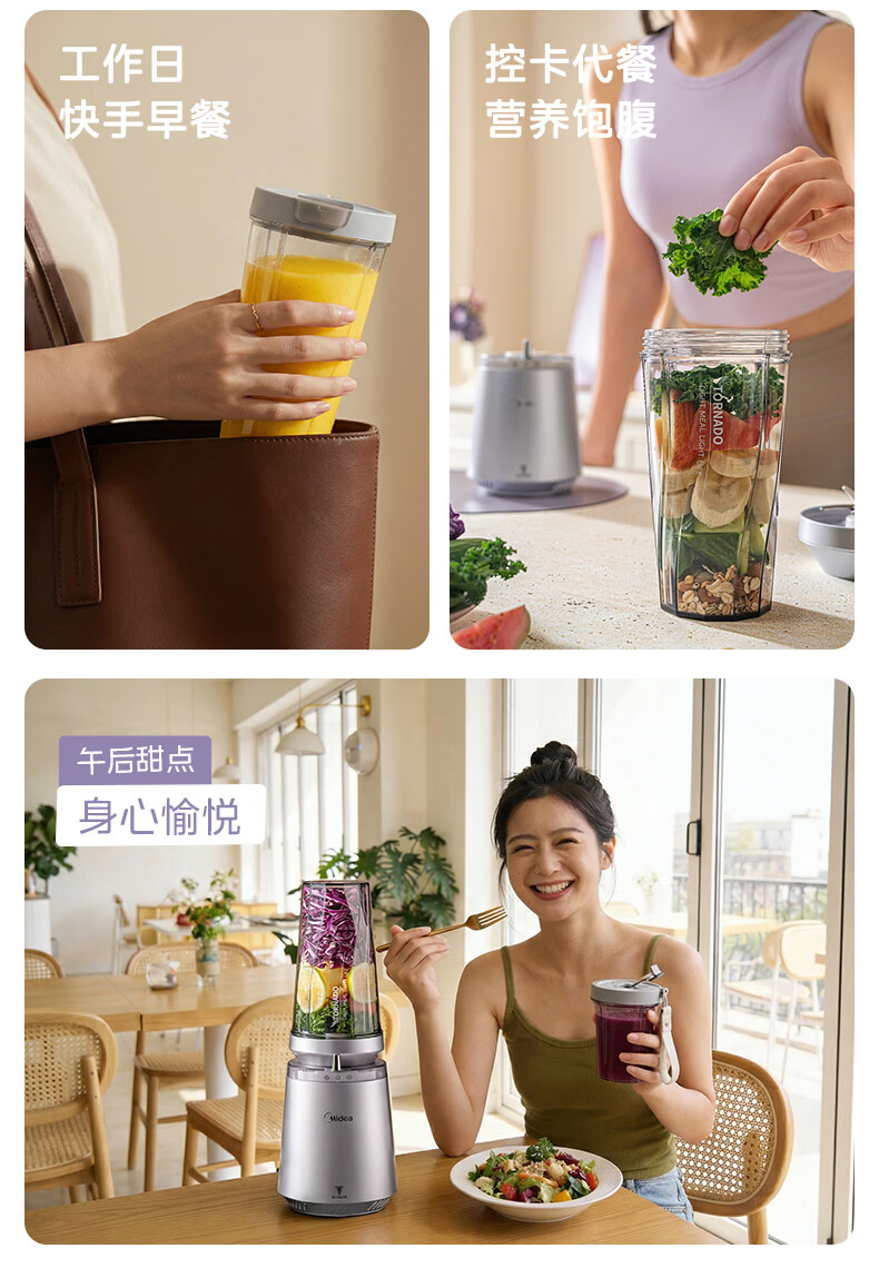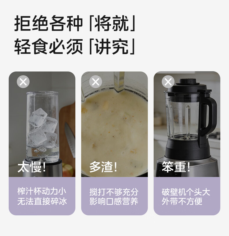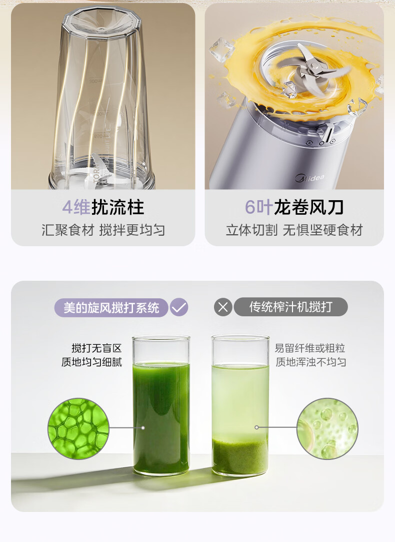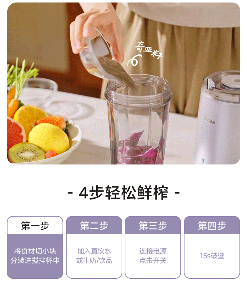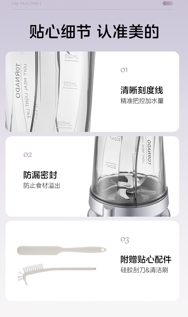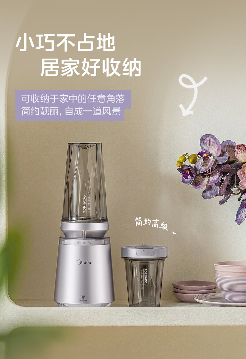 美的(Midea)小蛮腰15秒轻食破壁机 家用小型全自动大功率果蔬榨汁料理机【650ML+350ML双杯】MJ-Health01紫