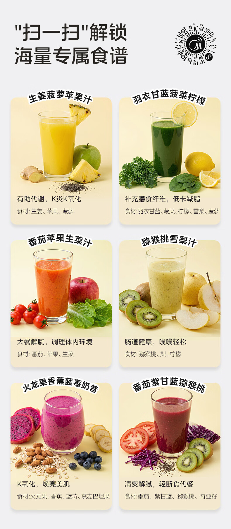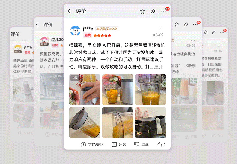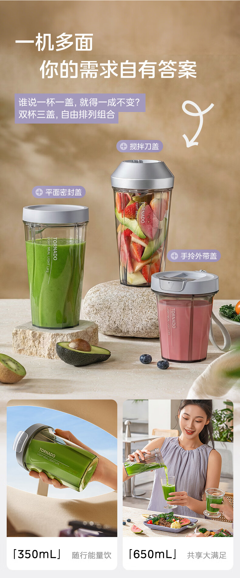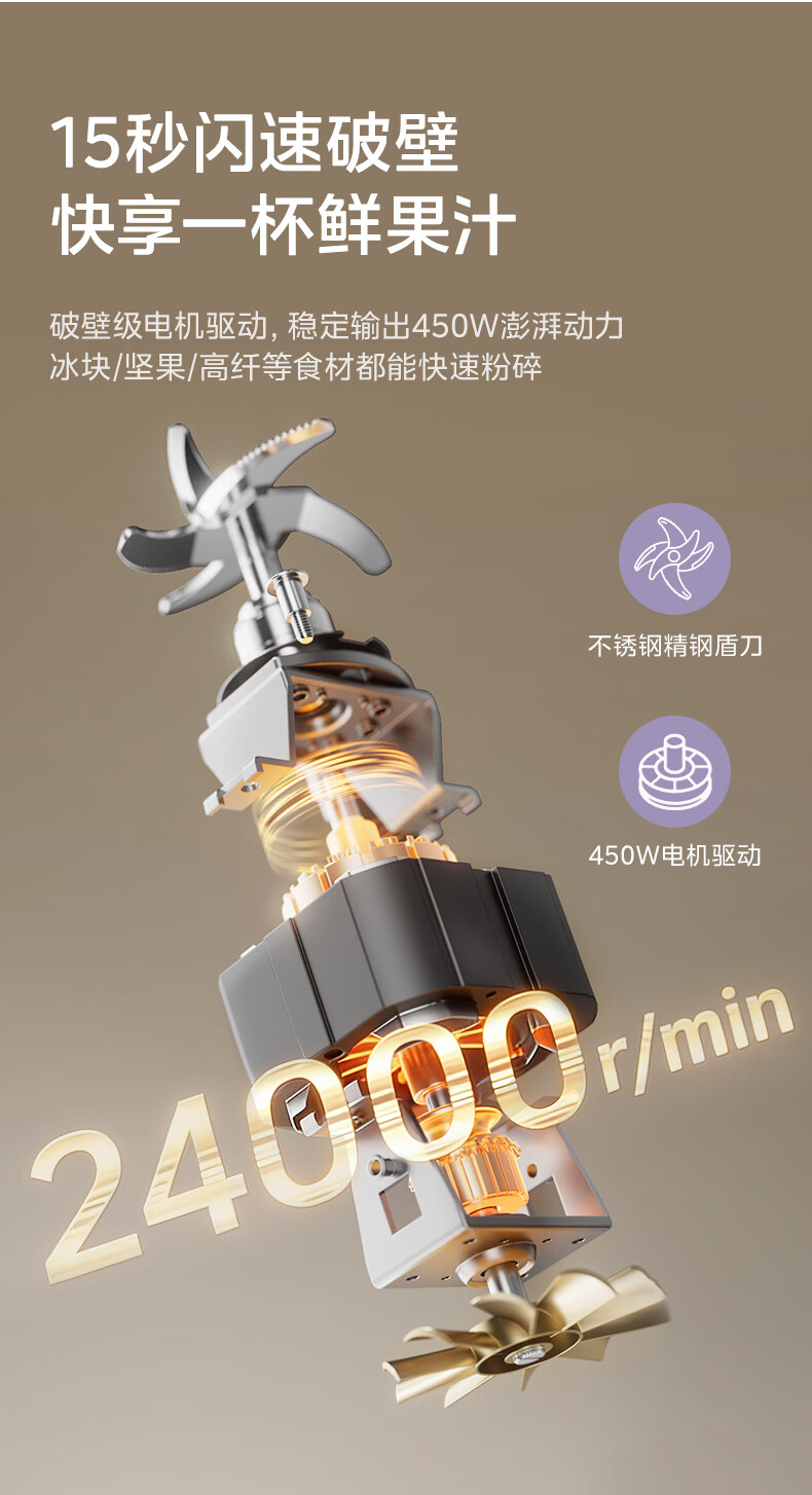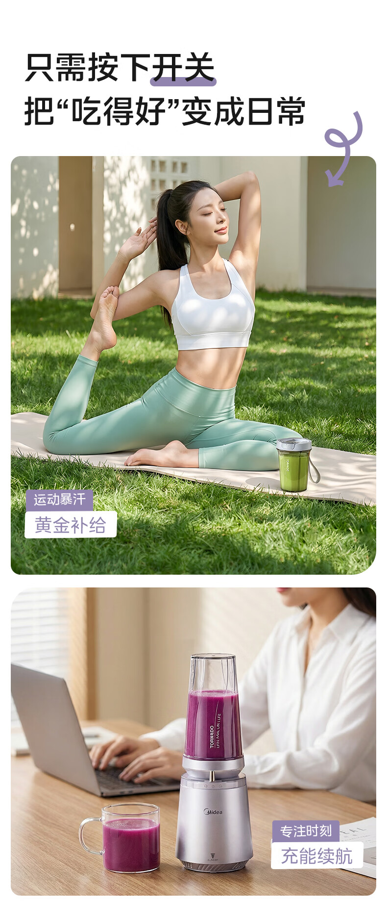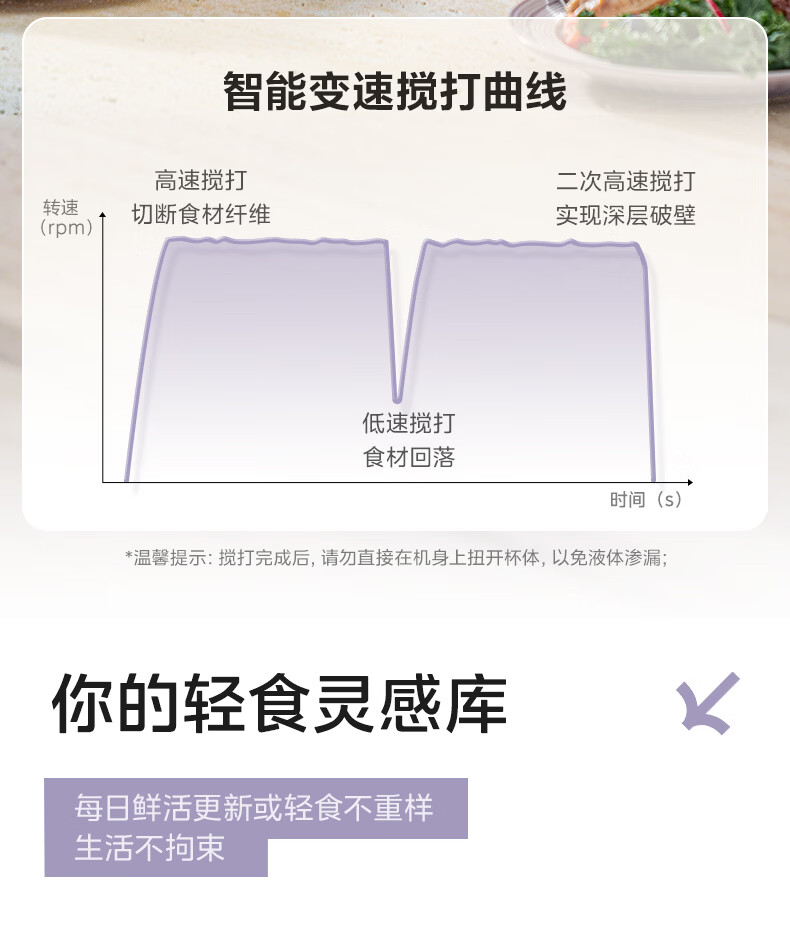 美的(Midea)小蛮腰15秒轻食破壁机 家用小型全自动大功率果蔬榨汁料理机【650ML+350ML双杯】MJ-Health01紫