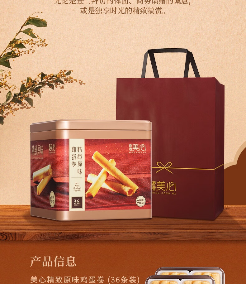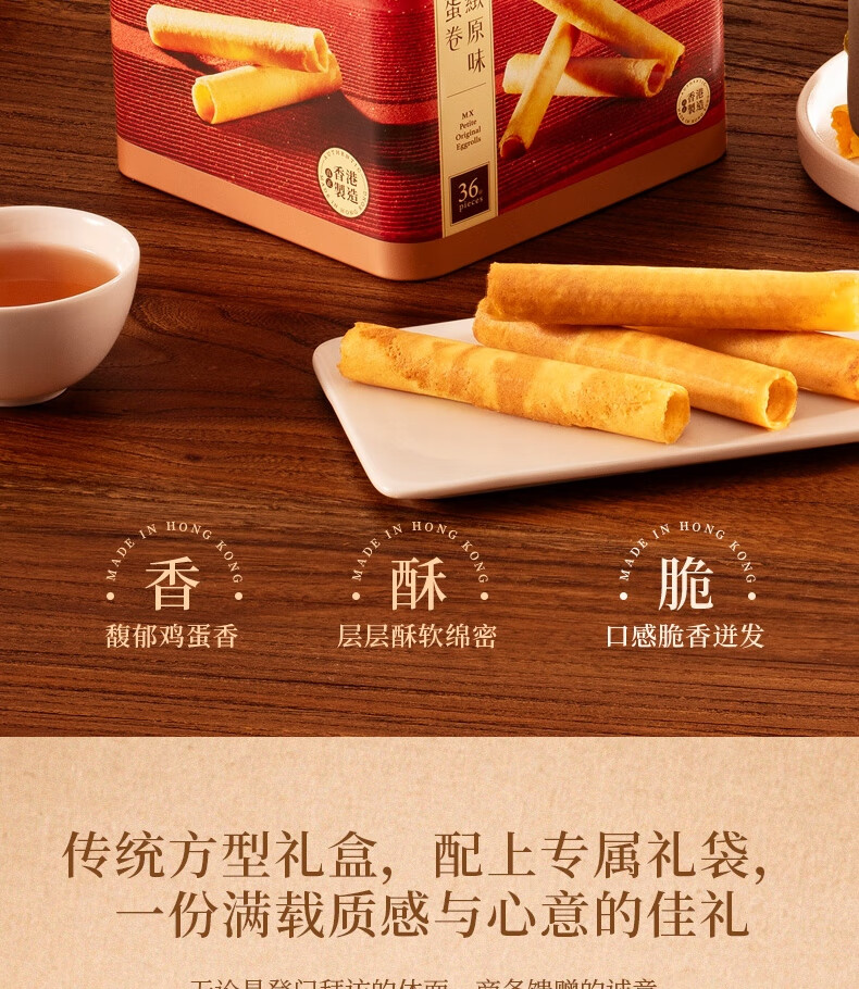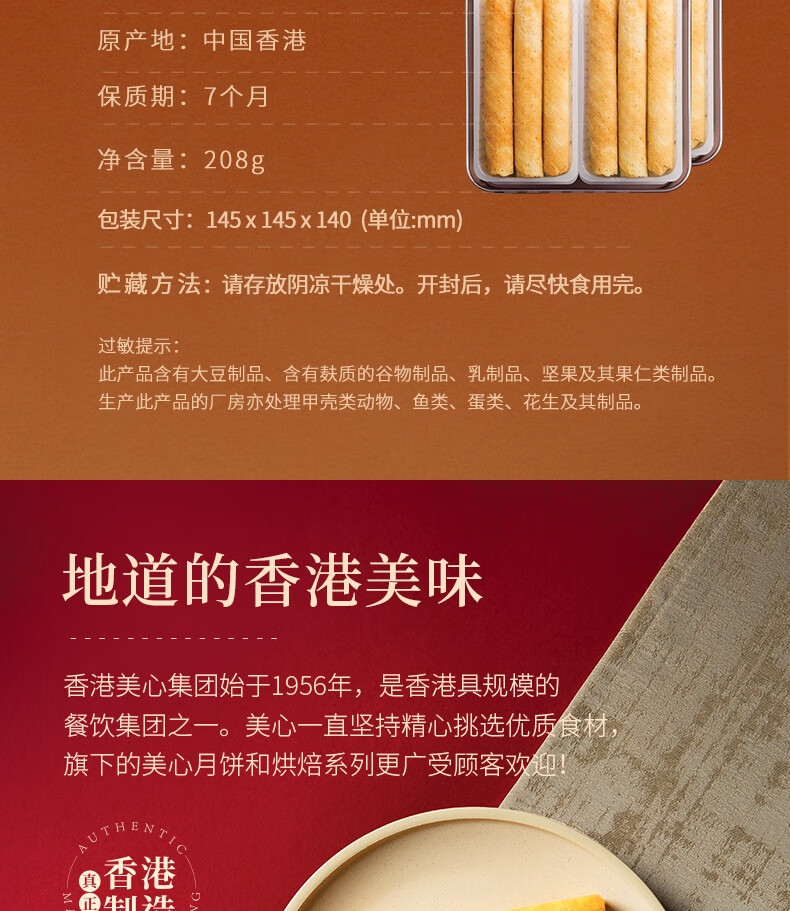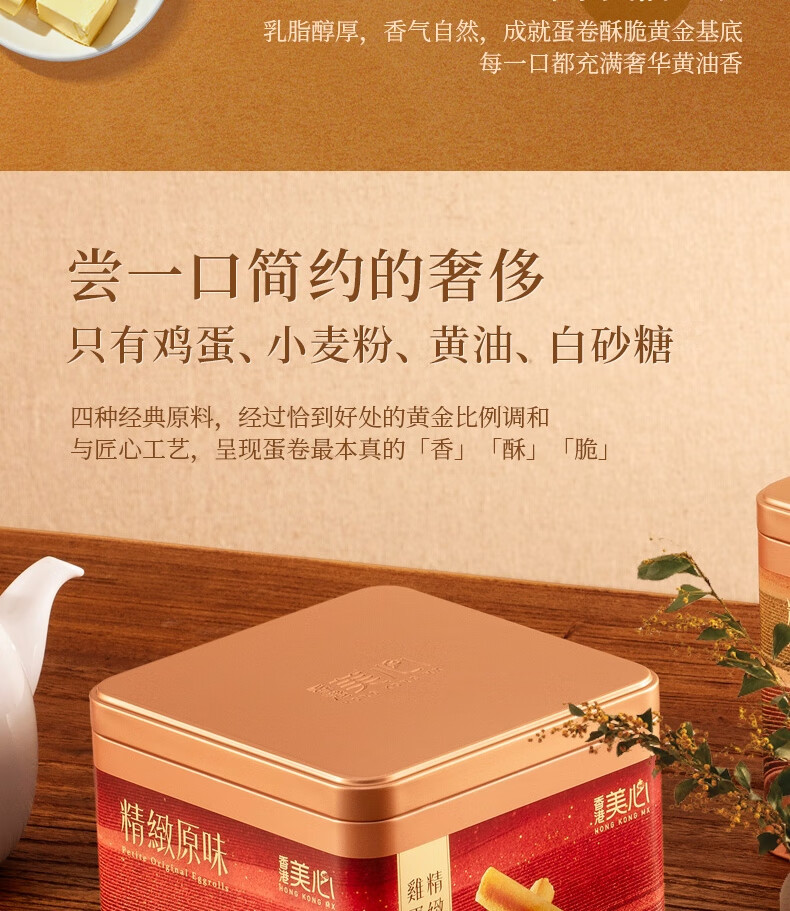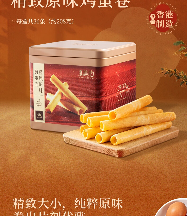 美心(Meixin)精致原味鸡蛋卷208g 香港特产休闲零食饼干企业团购送礼