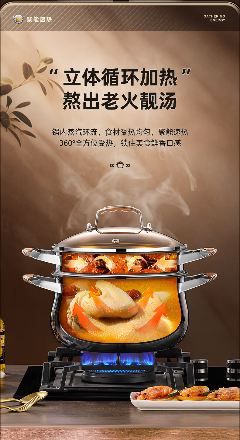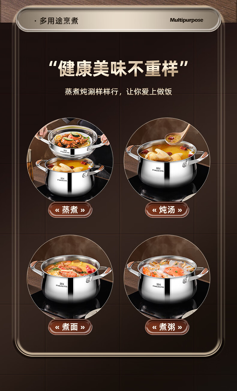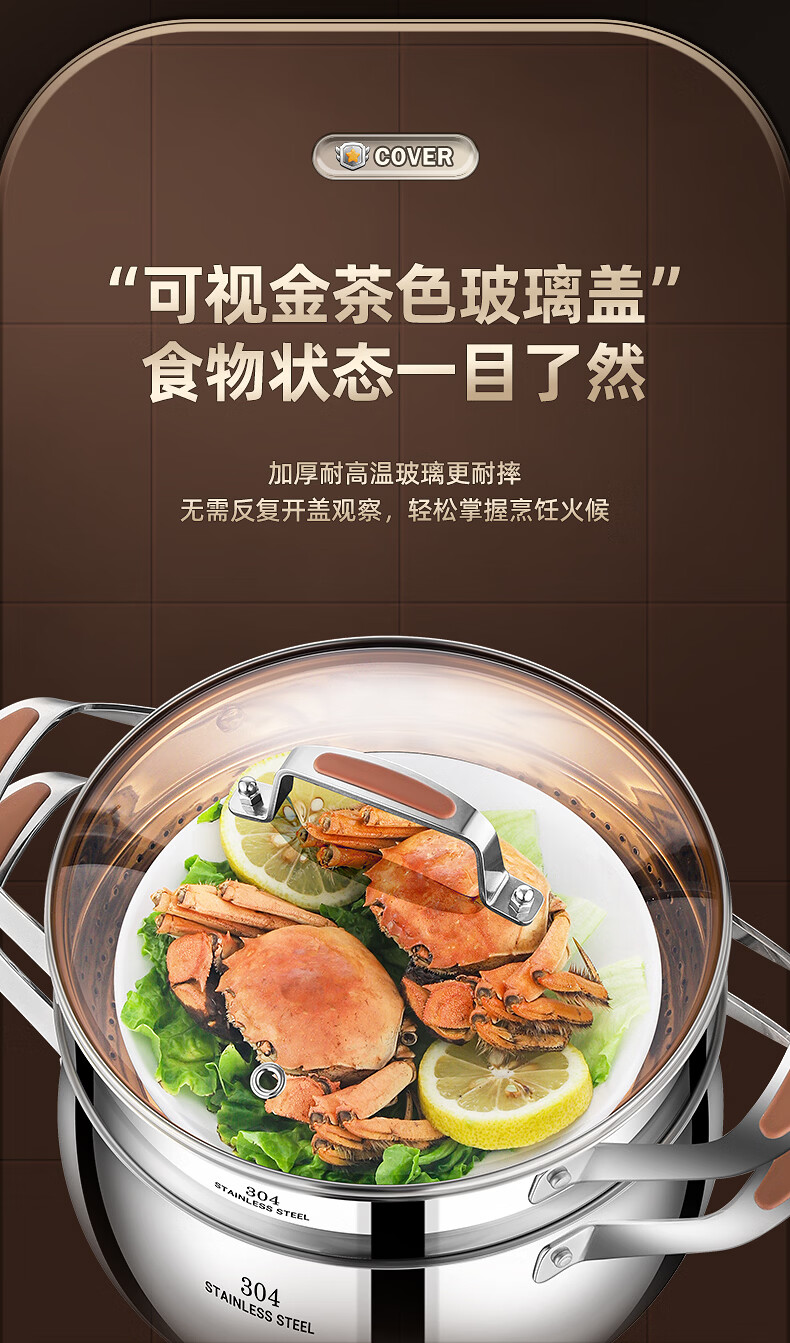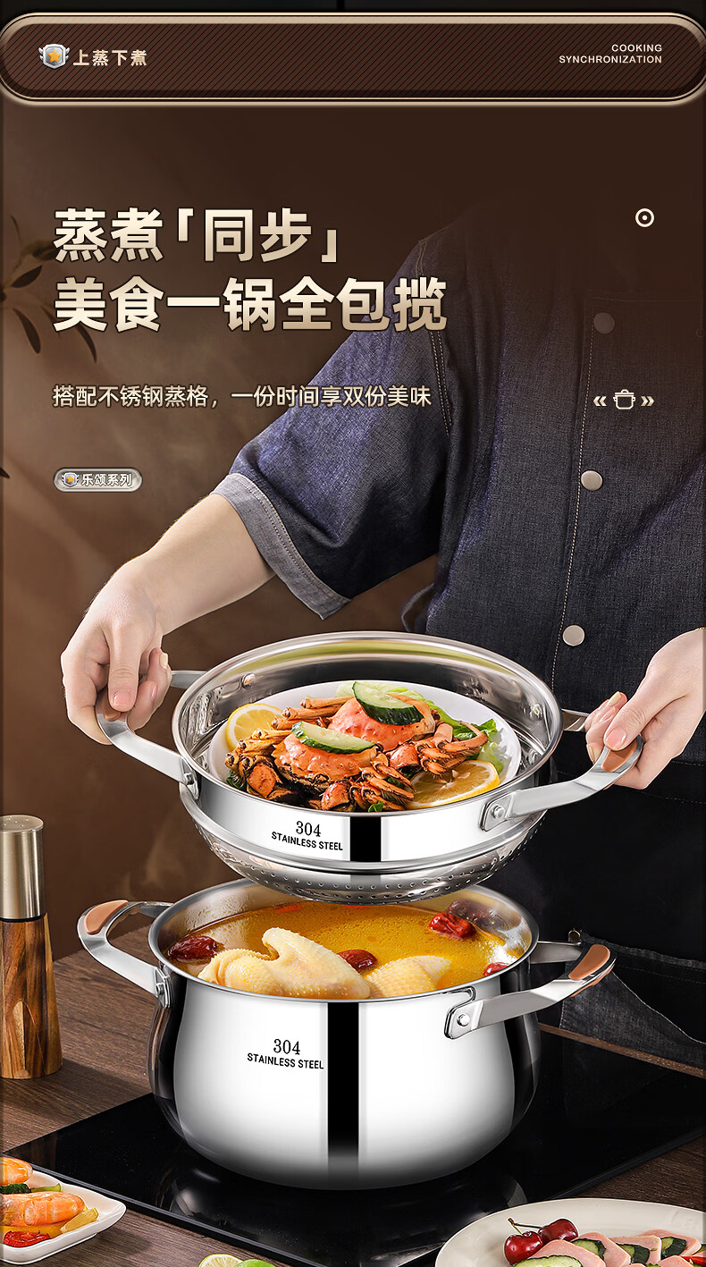 思美雅汤锅蒸锅双层304不锈钢家庭用蒸煮一体防烫硅胶炳多层多功能锅 汤蒸锅双层 26cm