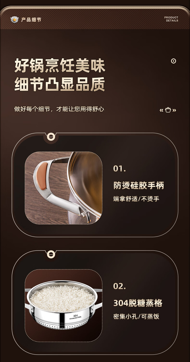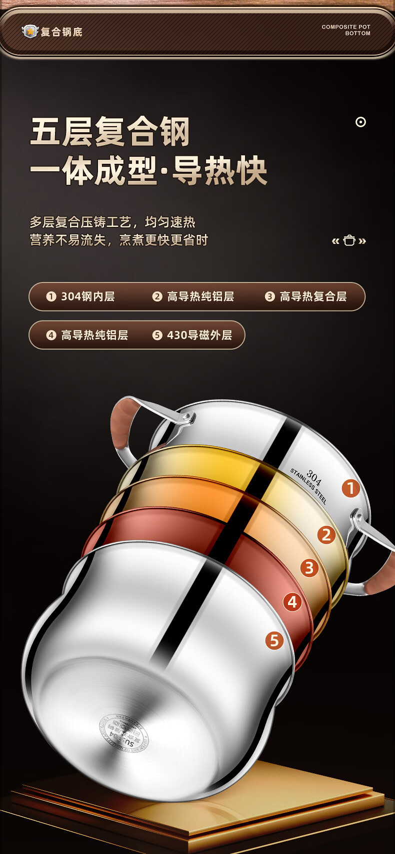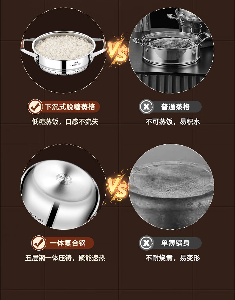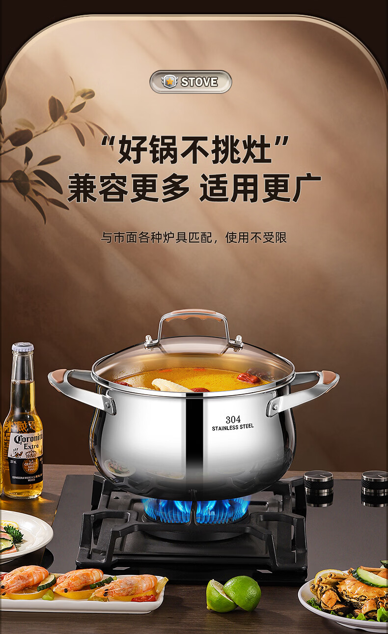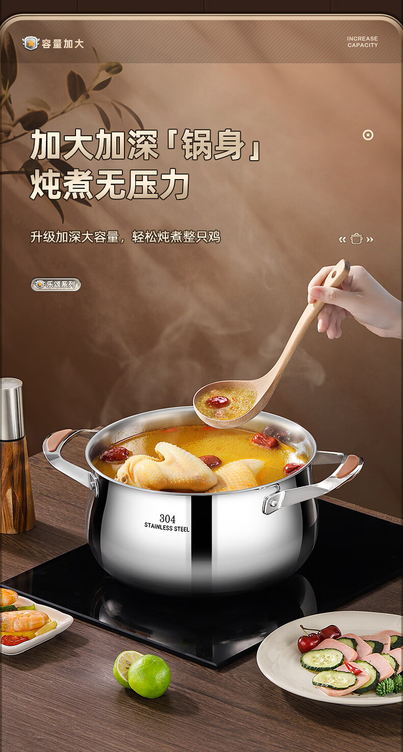 思美雅汤锅蒸锅双层304不锈钢家庭用蒸煮一体防烫硅胶炳多层多功能锅 汤蒸锅双层 26cm