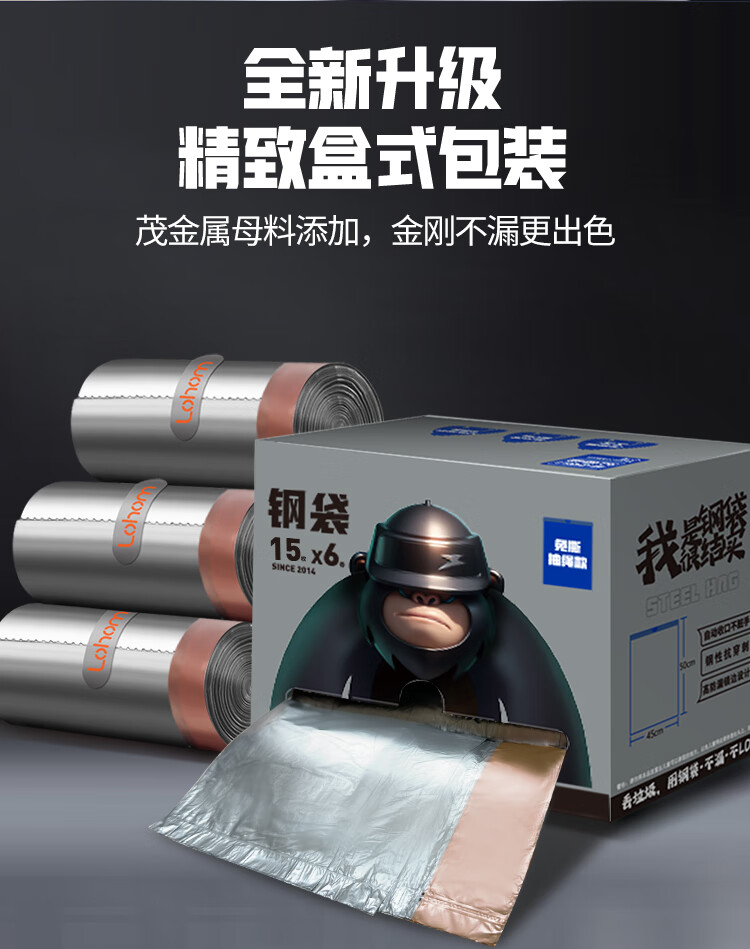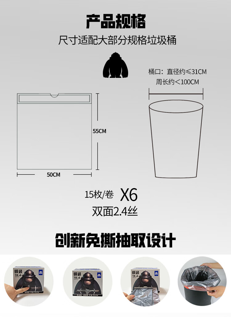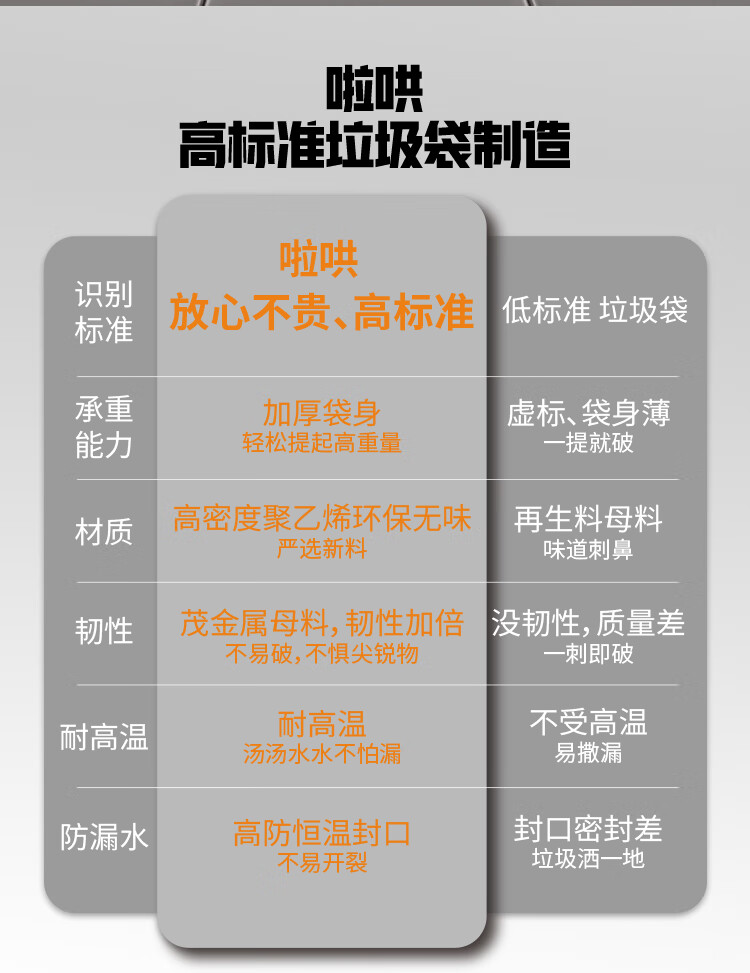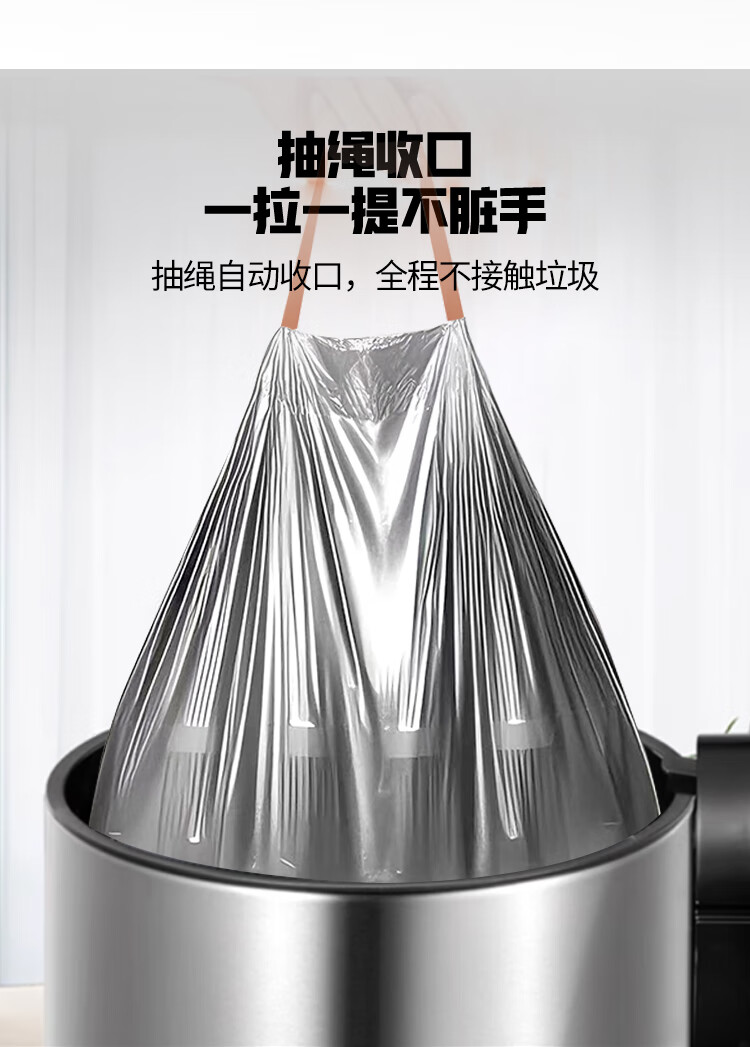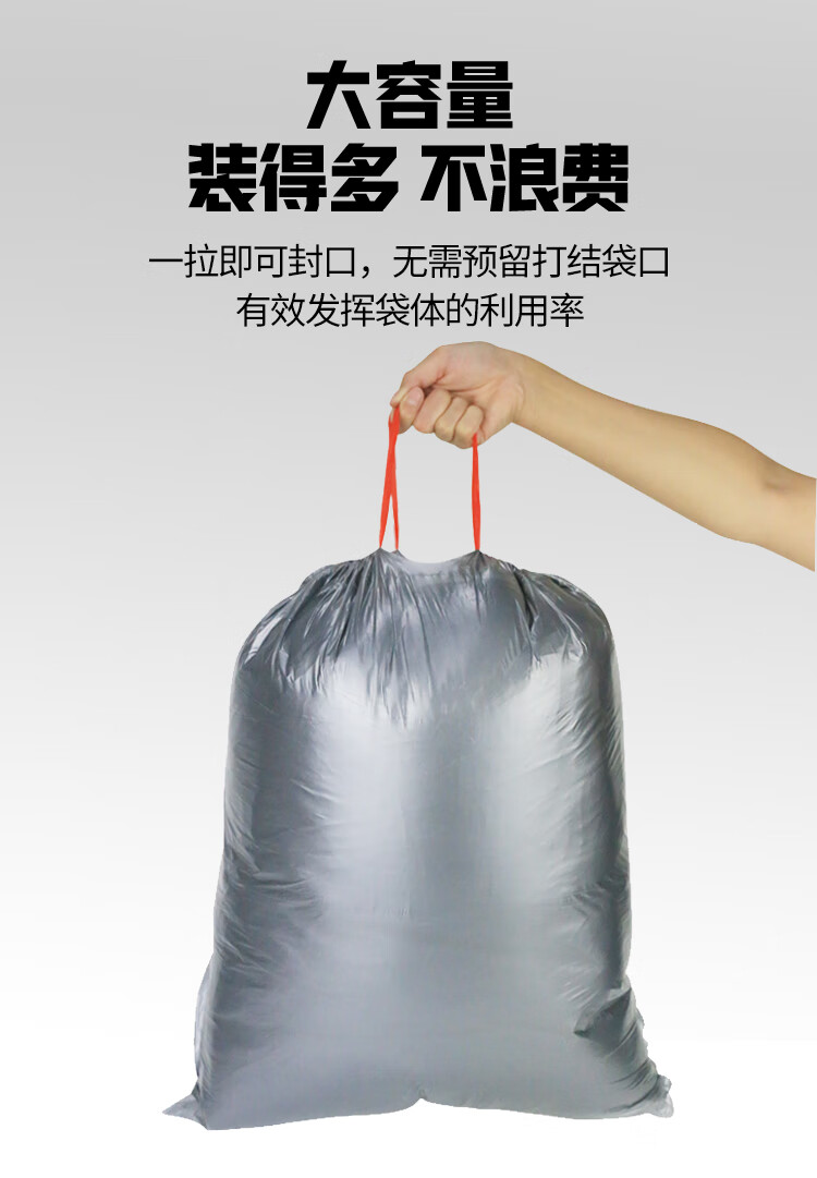 啦哄自动收口免撕垃圾袋家用加厚手提大号6卷抽绳50*55cm厨房穿绳袋
