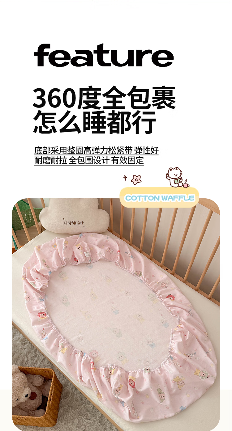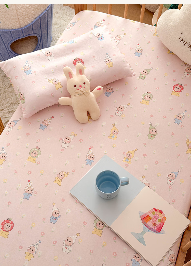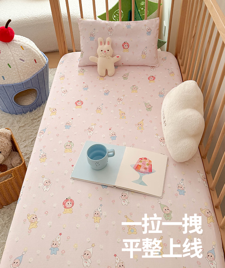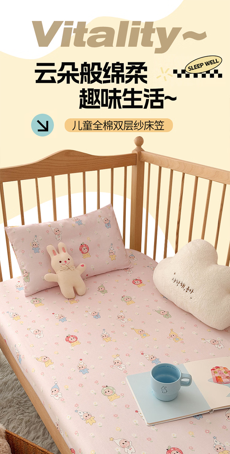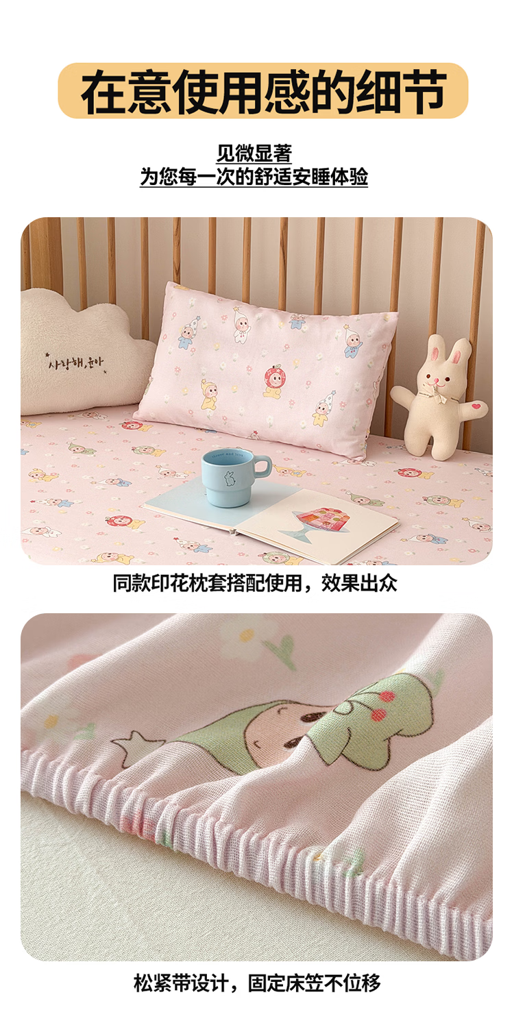ROLAND LIVE儿童全棉双层纱床笠儿童床垫保护罩幼儿园宝宝床褥套子防尘罩 HSH 儿童全棉双层纱床笠-小星人 单床笠56*100cm