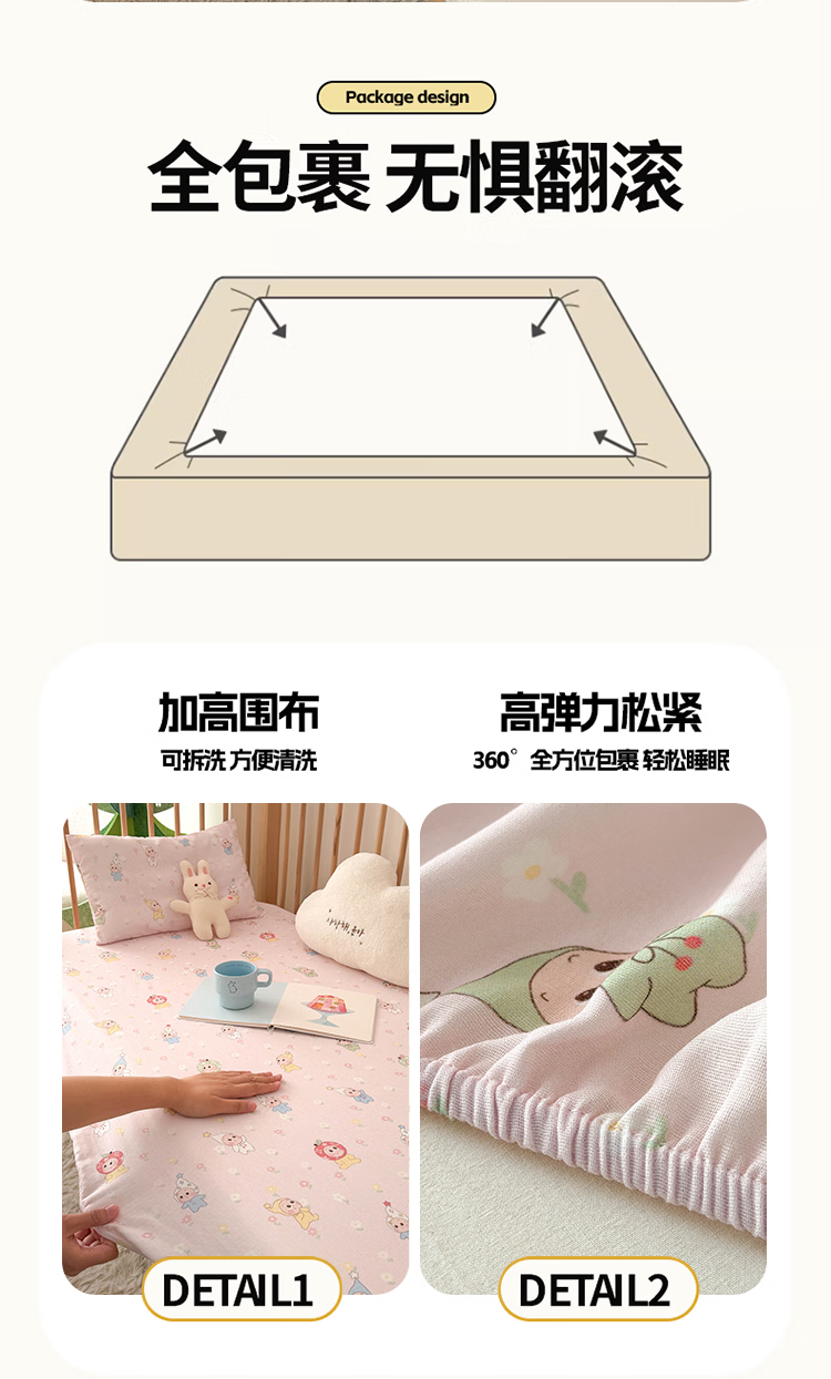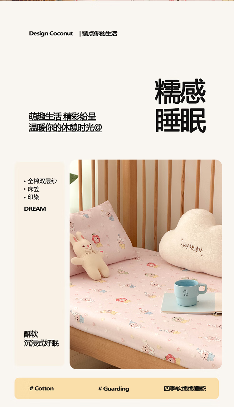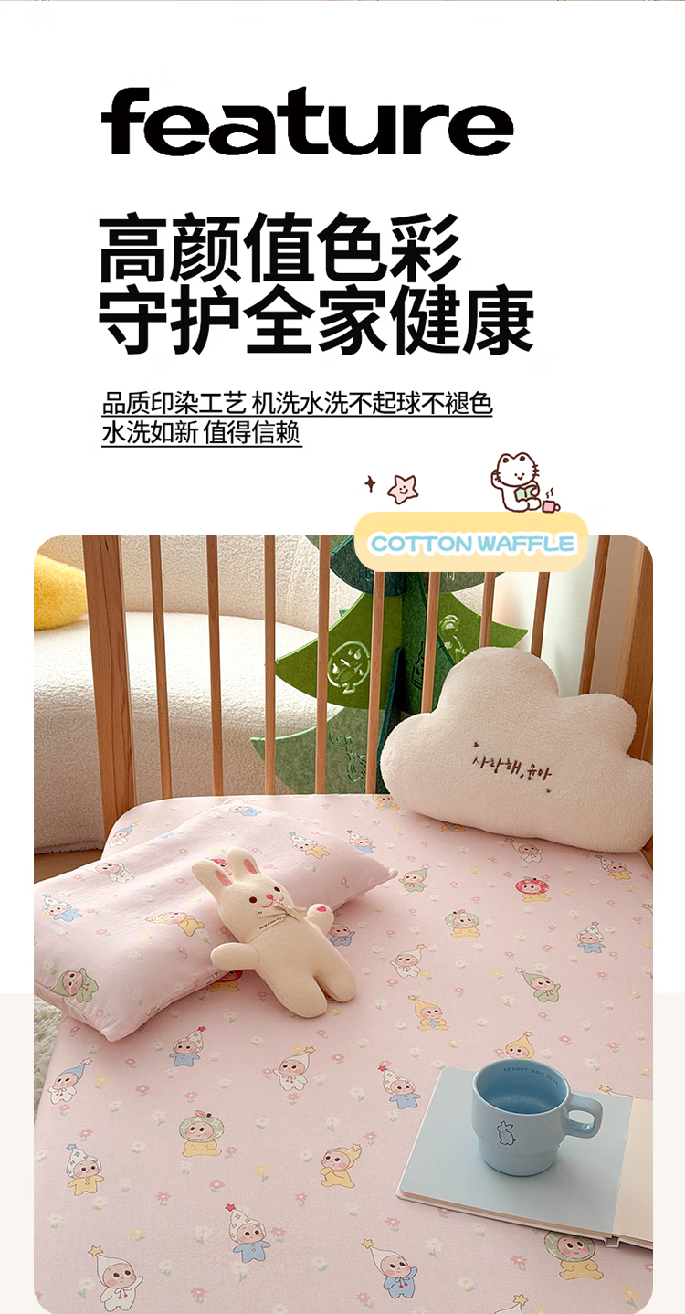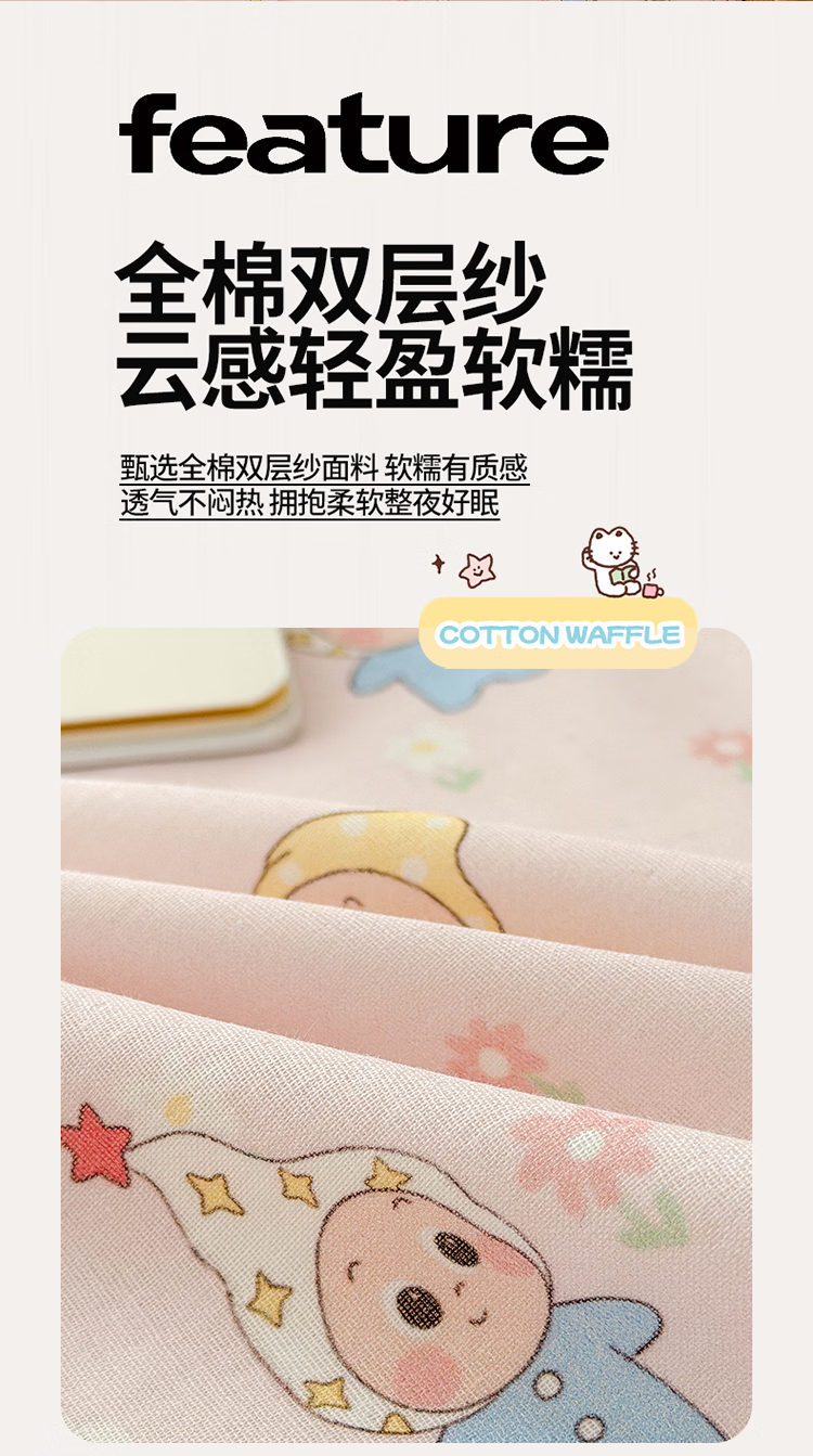 ROLAND LIVE儿童全棉双层纱床笠儿童床垫保护罩幼儿园宝宝床褥套子防尘罩 HSH 儿童全棉双层纱床笠-小星人 单床笠56*100cm