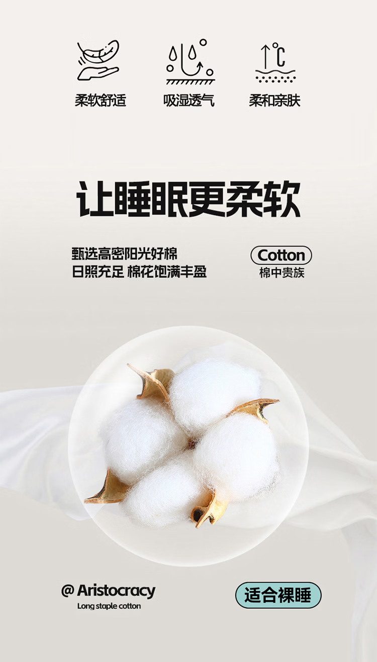 LOVO罗莱家纺100%新疆纯棉三/四件套全棉超柔床上用品单双人床单被套 【极简】超柔新疆全棉-布列塔尼 1.8米 床笠款 -被套220*240cm