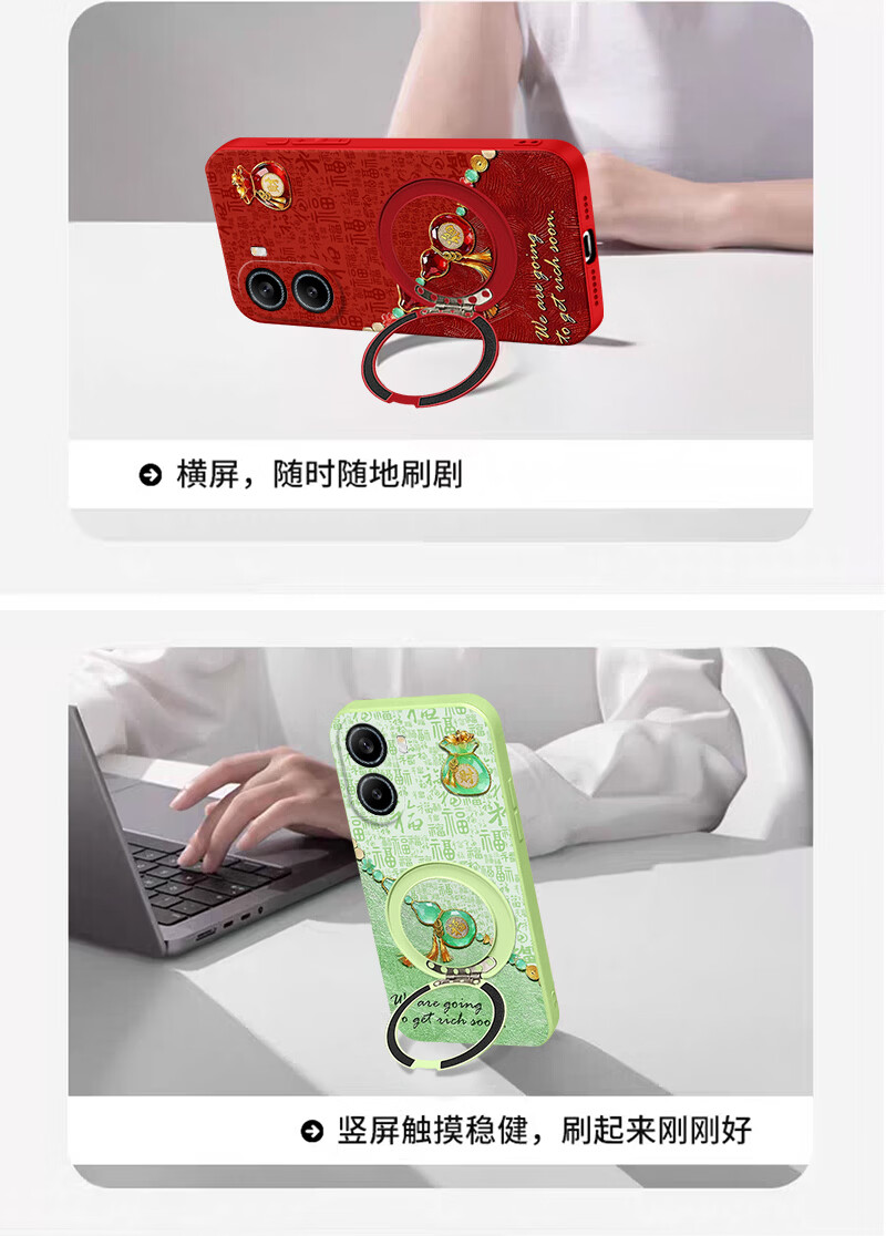尤思时适用于红米TURbo4手机壳TURbo4pro带支架红米turbo3女款新年春节马年红色喜庆硅胶软壳防摔保护套 中国红-葫芦福红【支点支架】 红米TURBO4