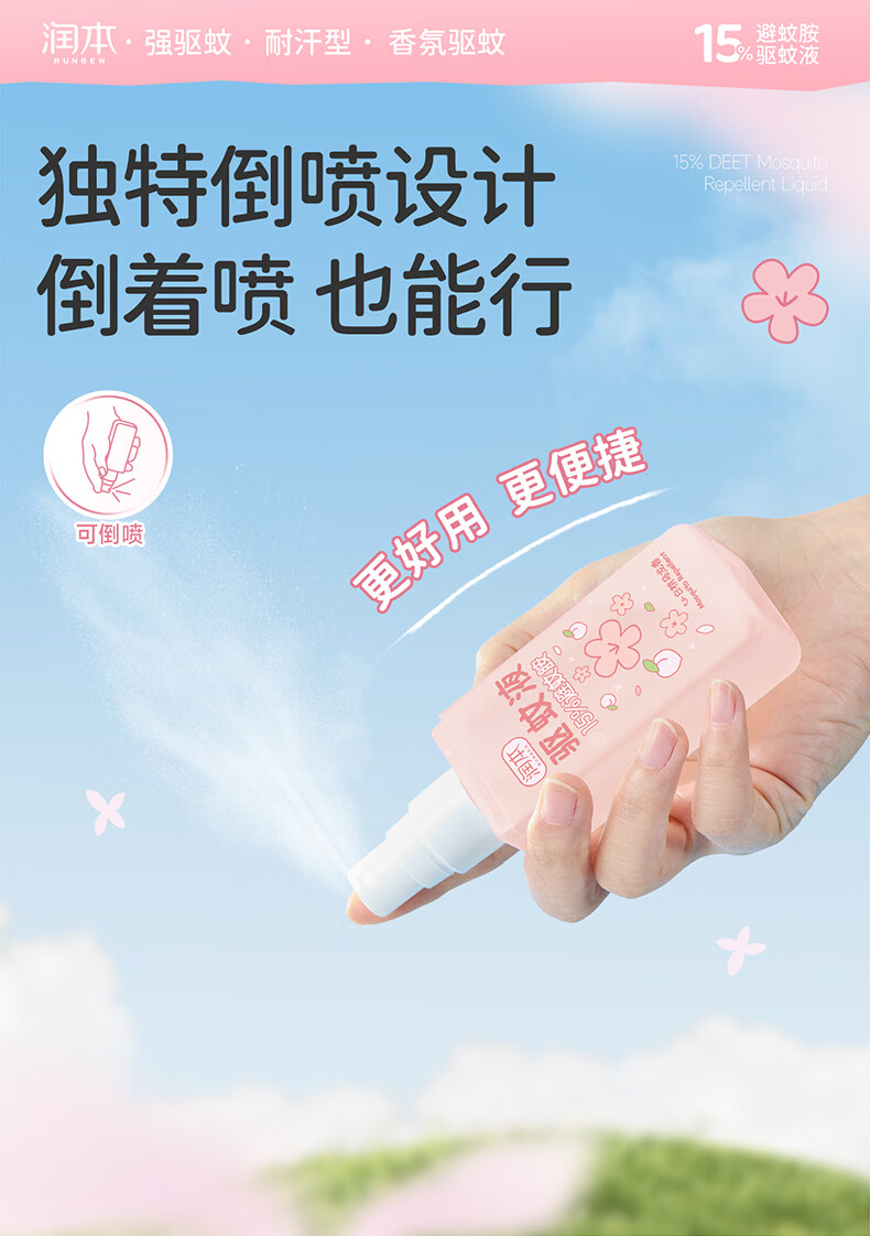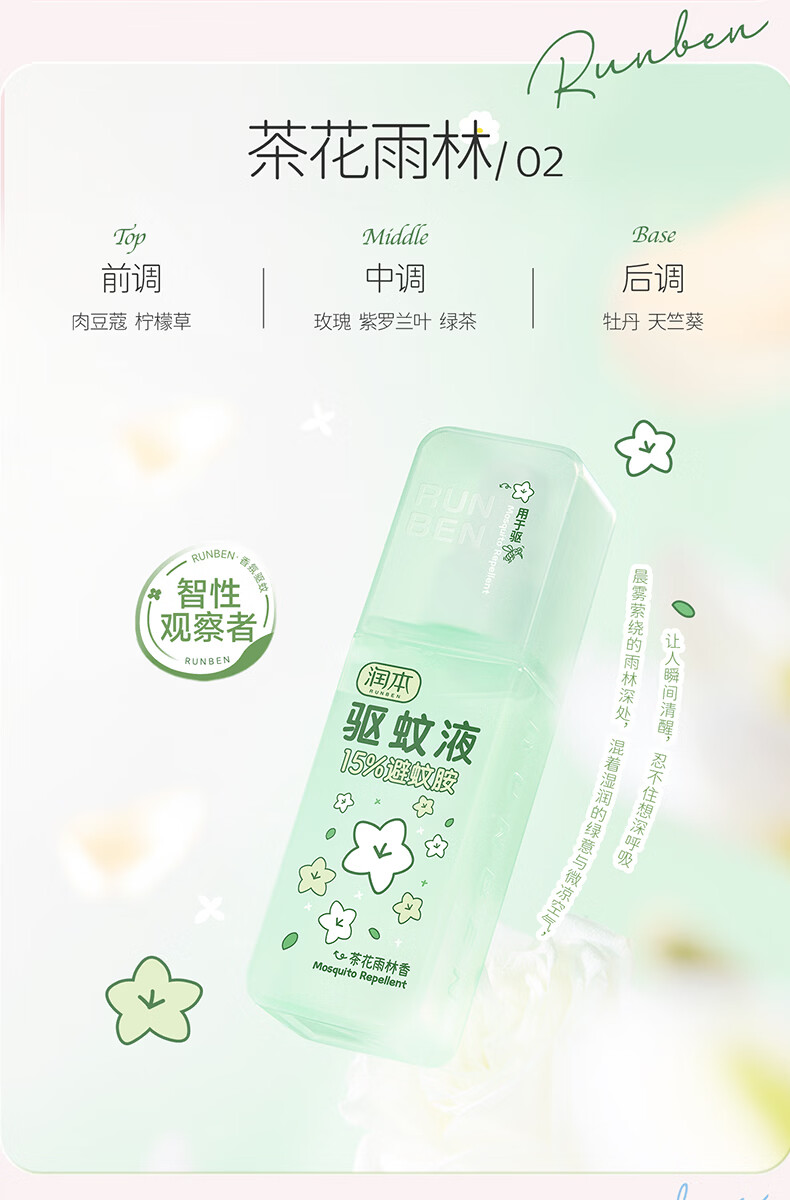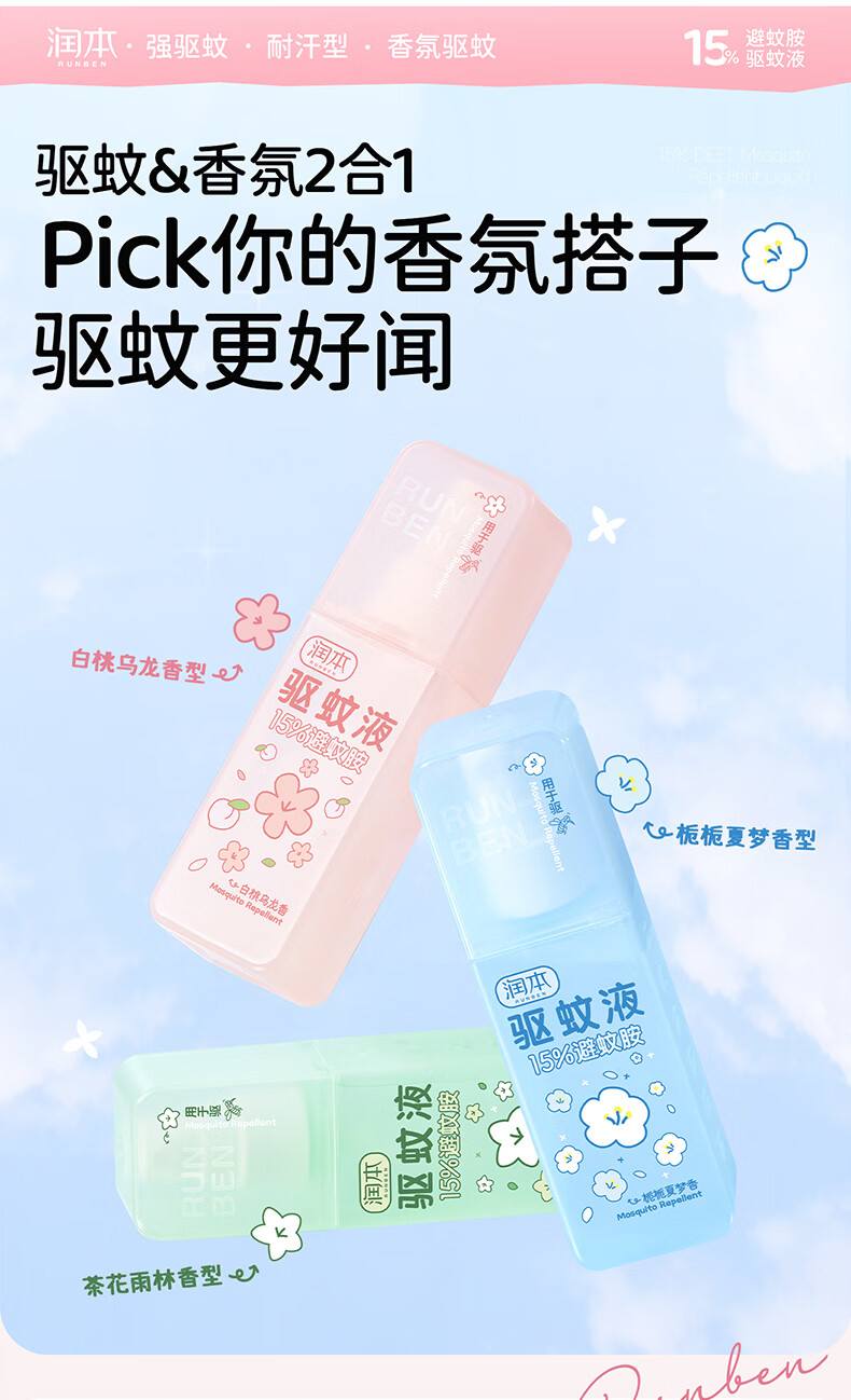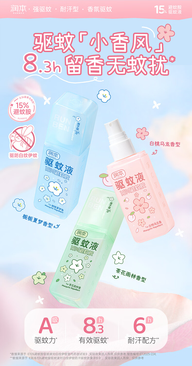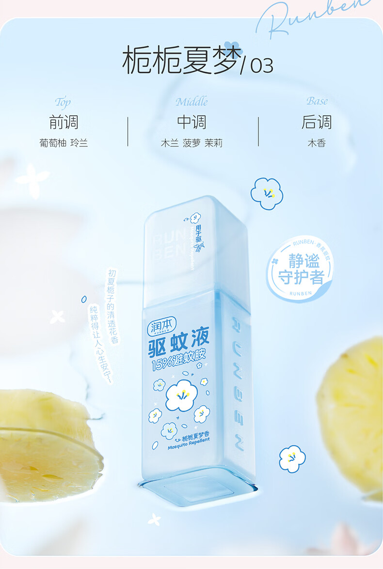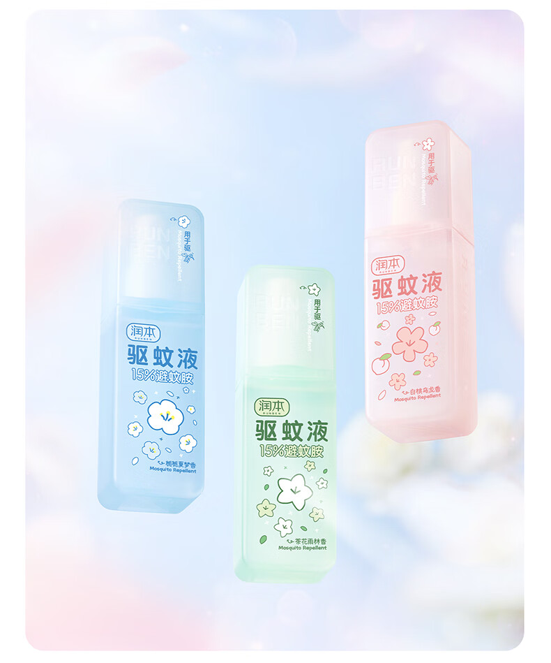 润本驱蚊液驱蚊喷雾花露水户外防蚊虫叮咬驱蚊水避蚊胺 75ml 1瓶 【香氛驱蚊8.3h-栀栀夏梦】15%避蚊胺