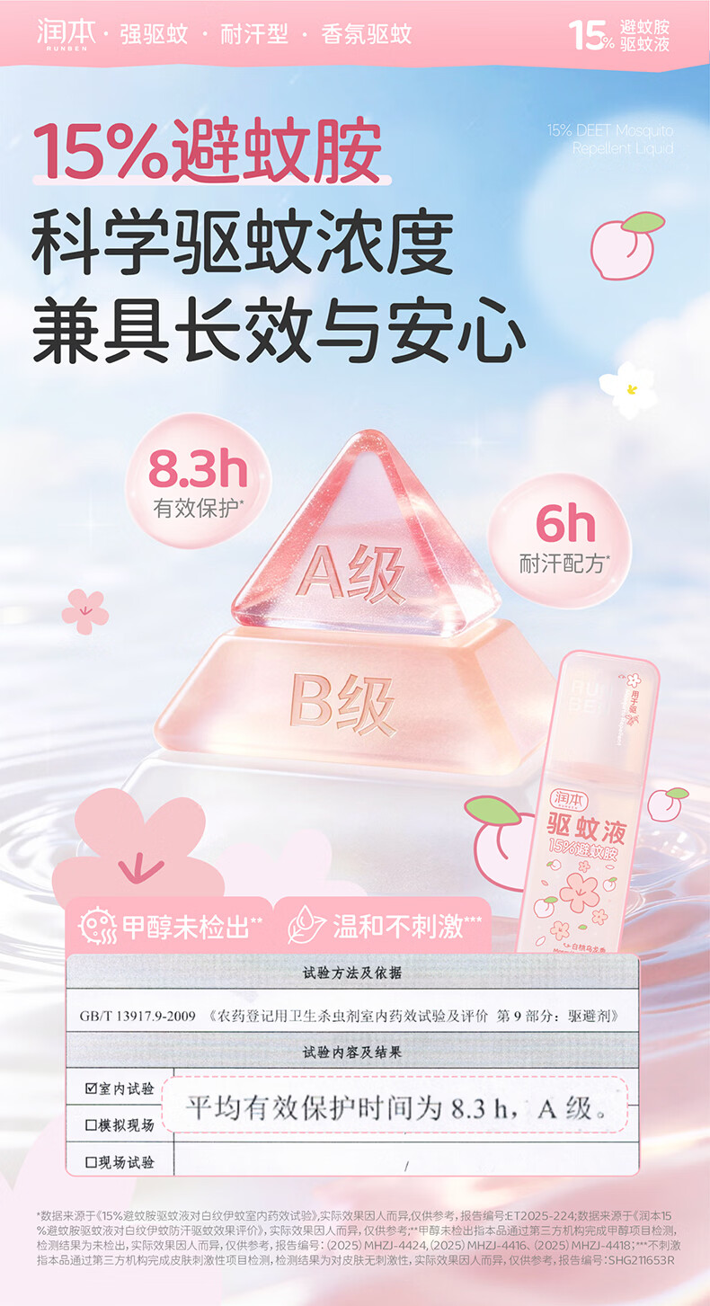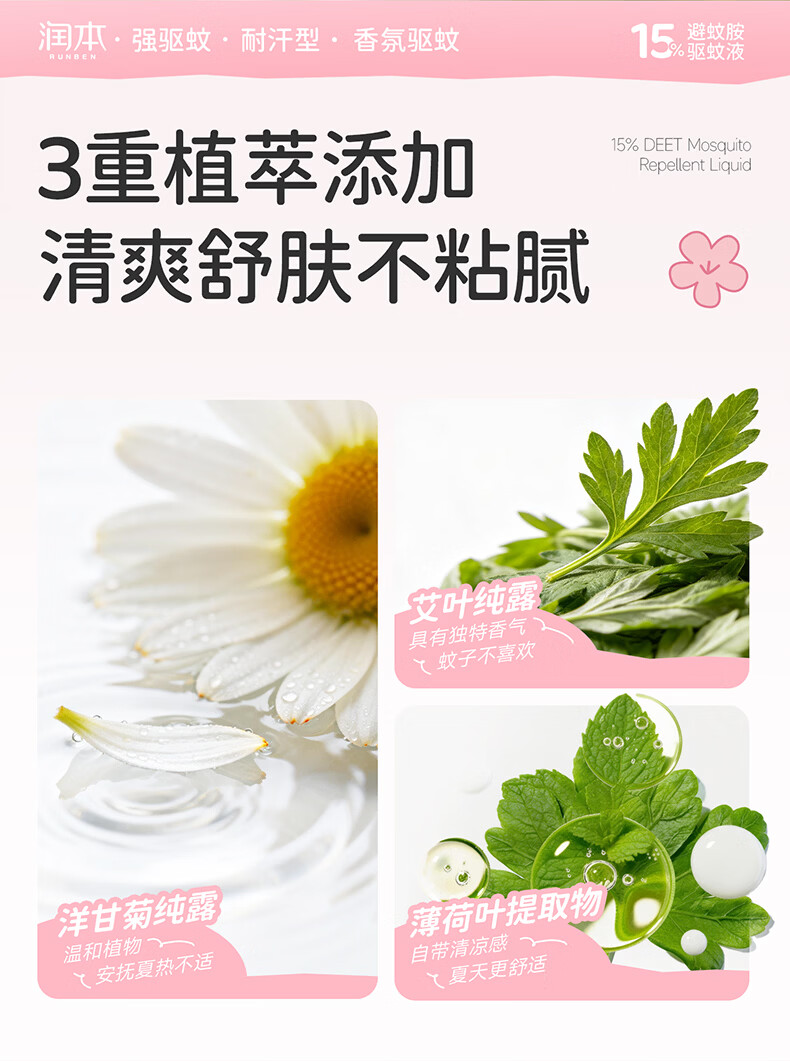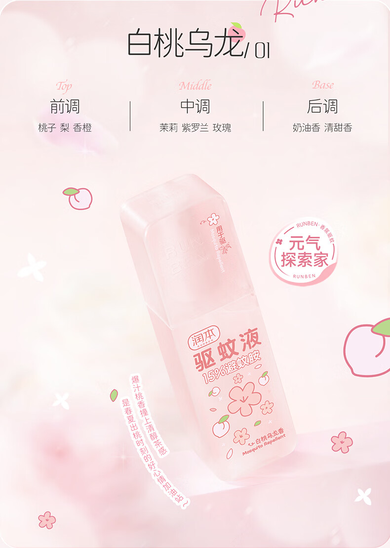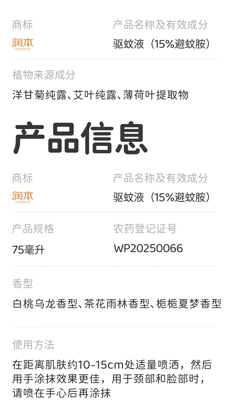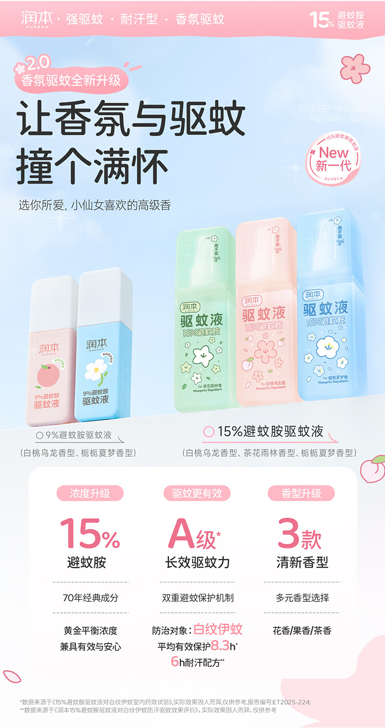 润本驱蚊液驱蚊喷雾花露水户外防蚊虫叮咬驱蚊水避蚊胺 75ml 1瓶 【香氛驱蚊8.3h-栀栀夏梦】15%避蚊胺