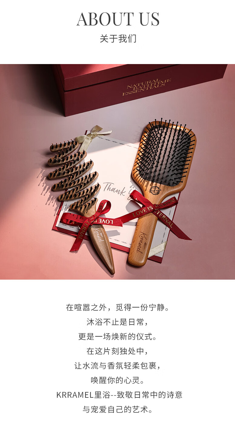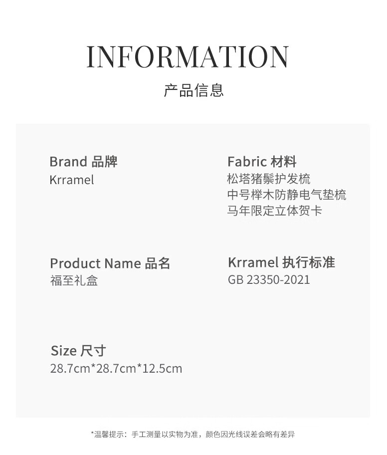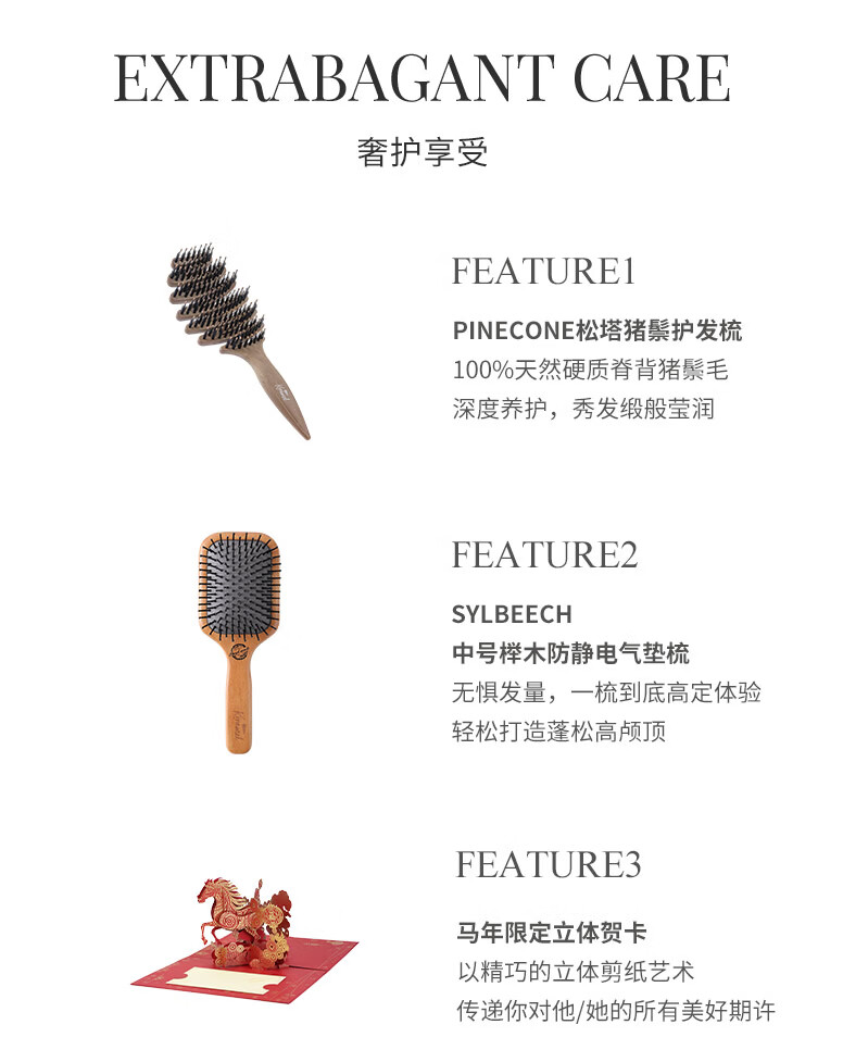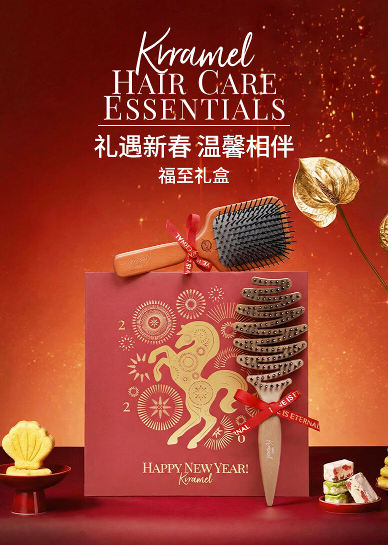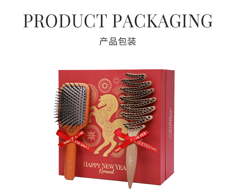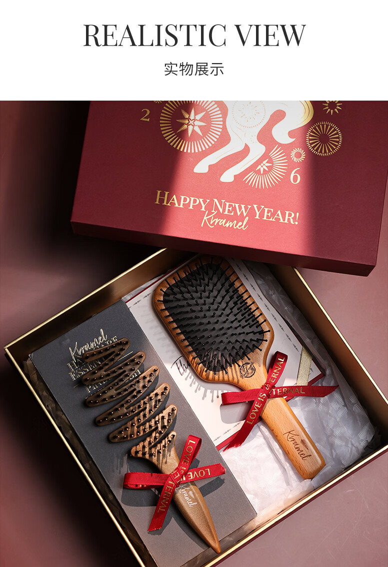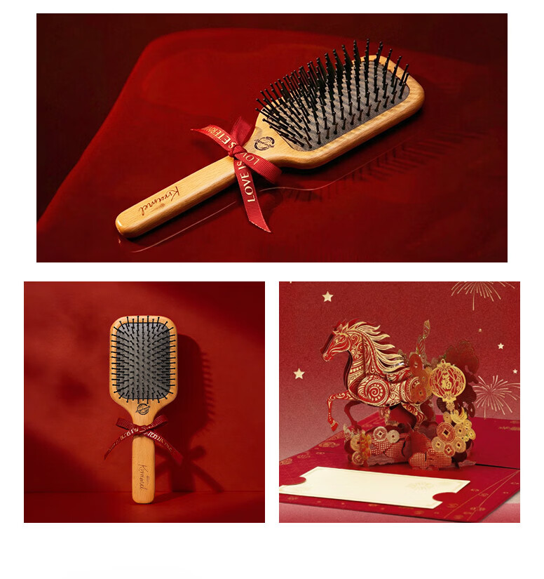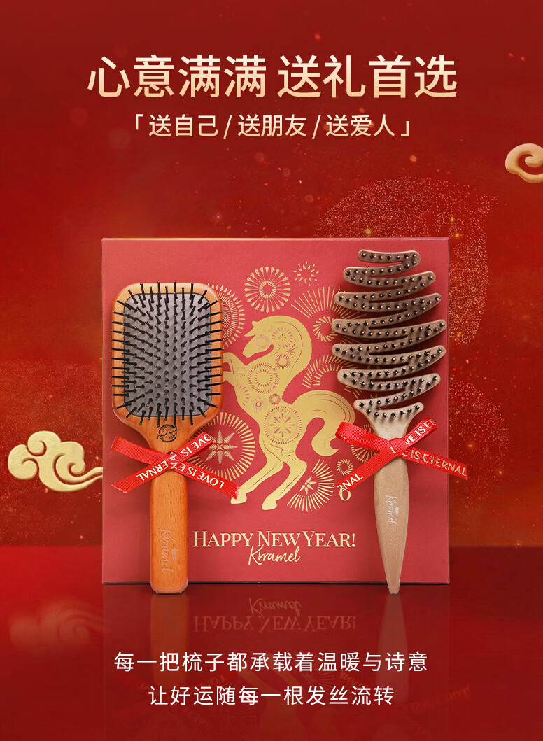 KRRAMEL生日礼物女士马年梳子礼物本命年礼物梳子礼盒结婚新婚礼物 福至礼盒 中号松塔梳