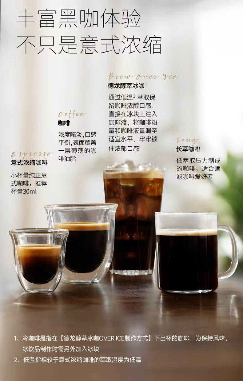 德龙(Delonghi)咖啡机 家用全自动咖啡机 欧洲进口小型意式美式现磨 冷热双萃醇萃冰咖手动打奶泡 E Plus新年礼物