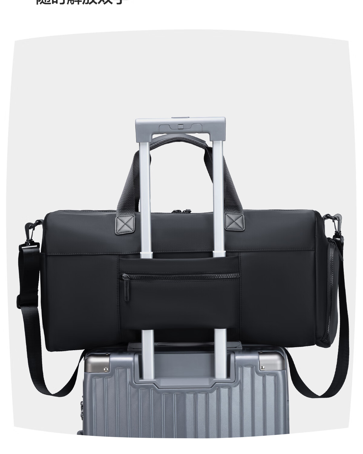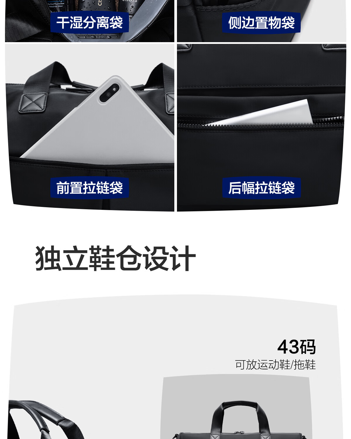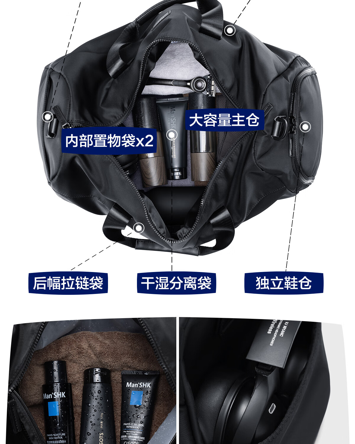 海澜之家旅行包男手提斜跨包干湿分离防泼水行李包出差短途行李袋大容量 黑色中号【25L容量+干湿分离袋】