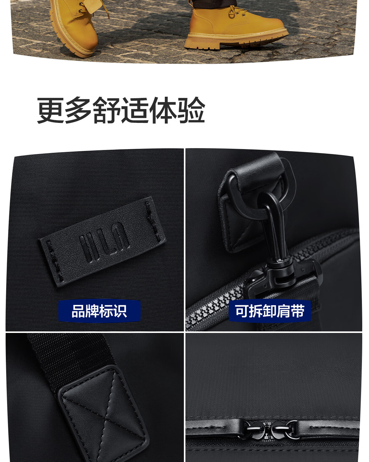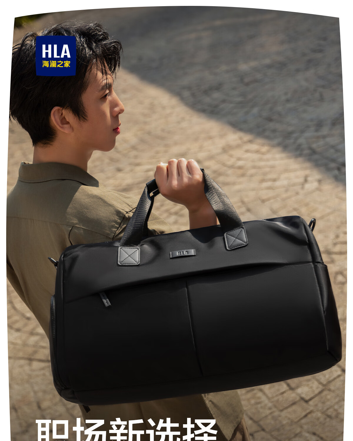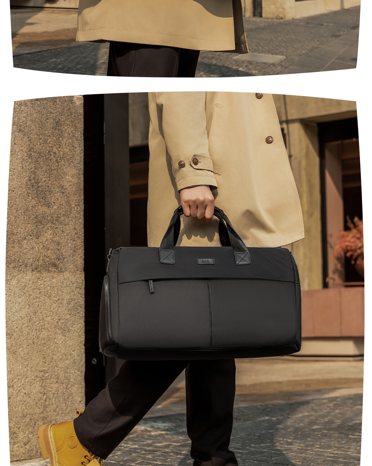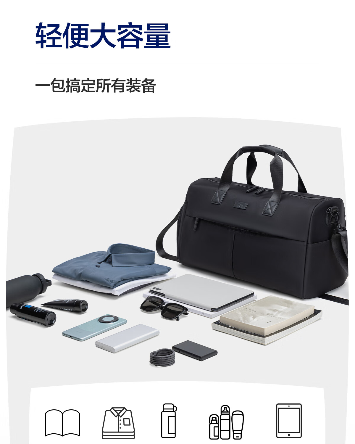 海澜之家旅行包男手提斜跨包干湿分离防泼水行李包出差短途行李袋大容量 黑色中号【25L容量+干湿分离袋】