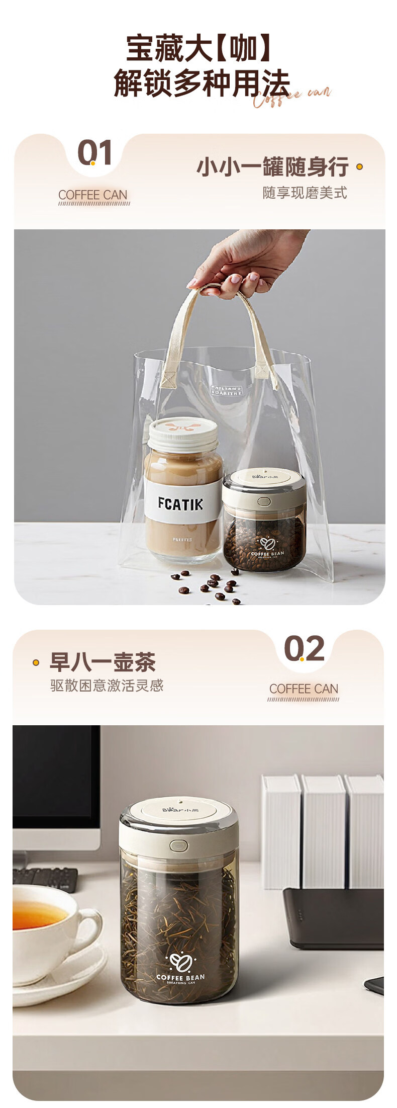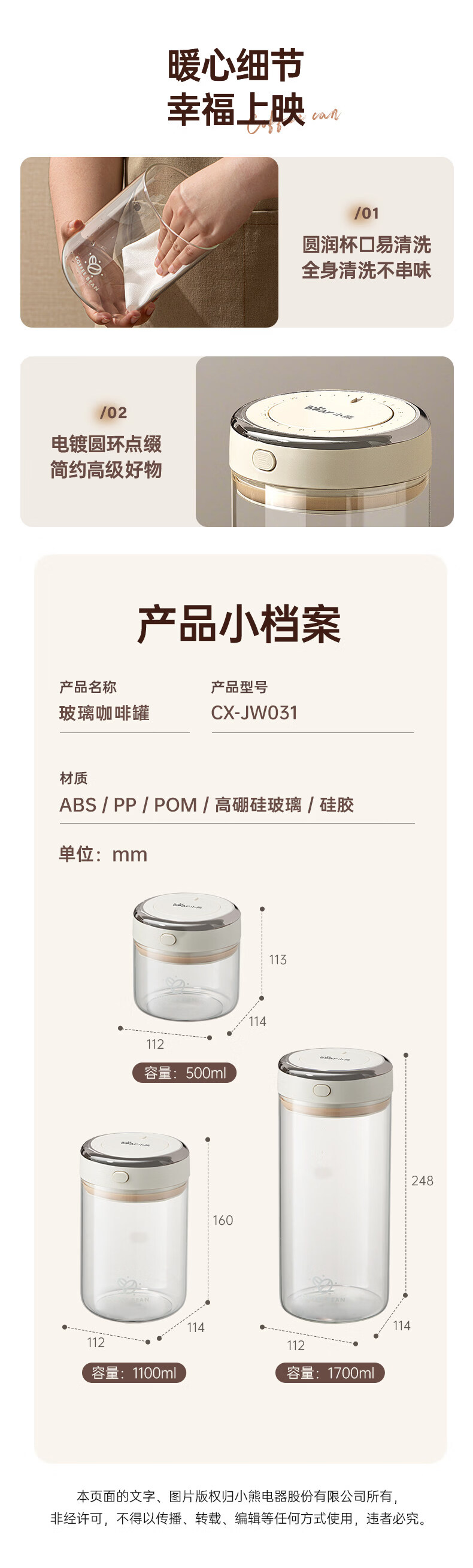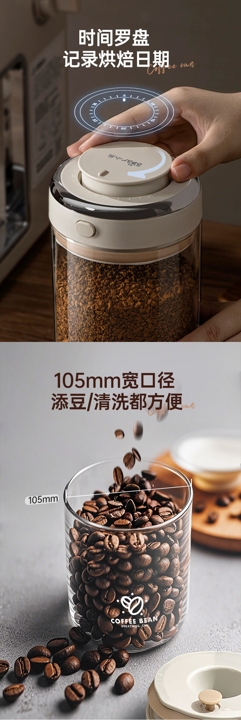 小熊(Bear)咖啡豆高硼硅玻璃密封罐食品级瓶子家用保存罐奶粉茶叶陈皮存储罐 负压级强密封 1个 500ml CX-JW031-P01