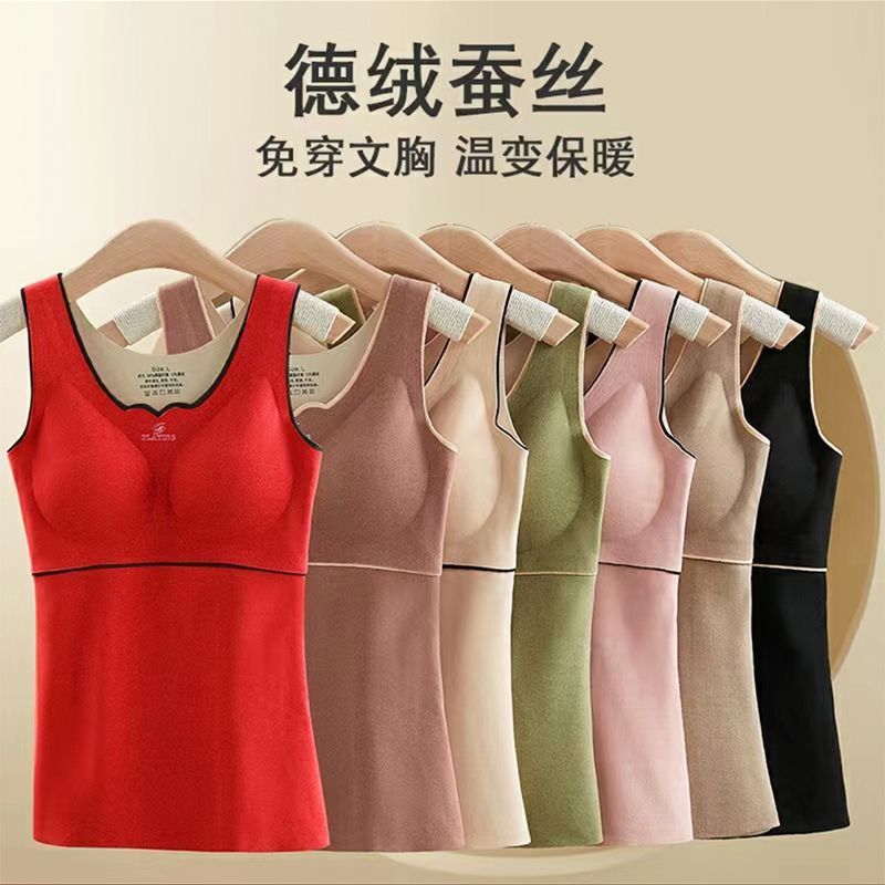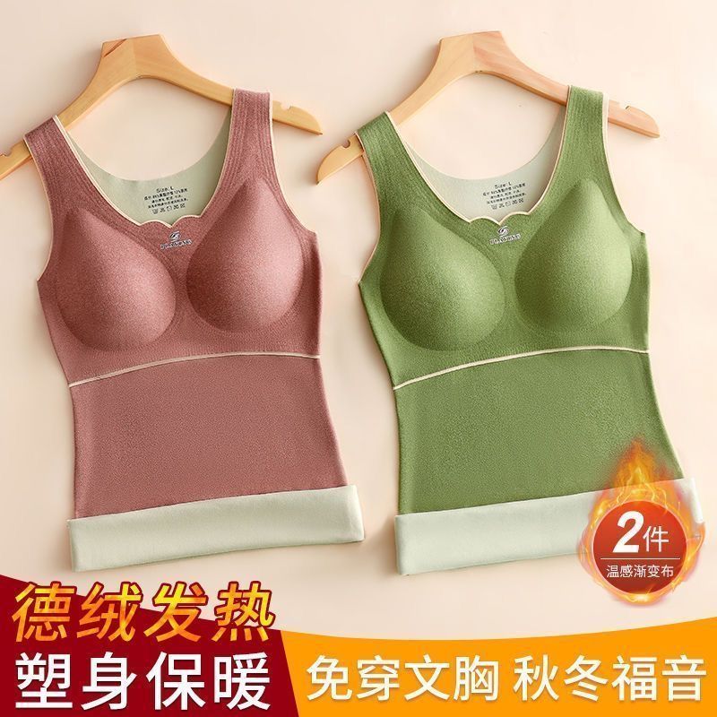 买一送一德绒发热保暖背心加绒加厚打底聚拢上托塑形秋冬保暖内衣