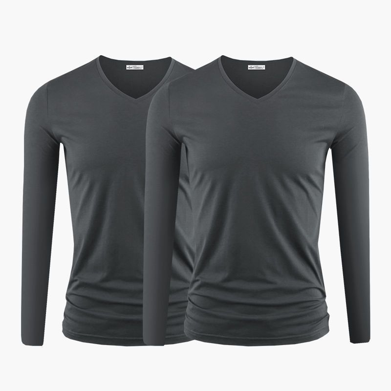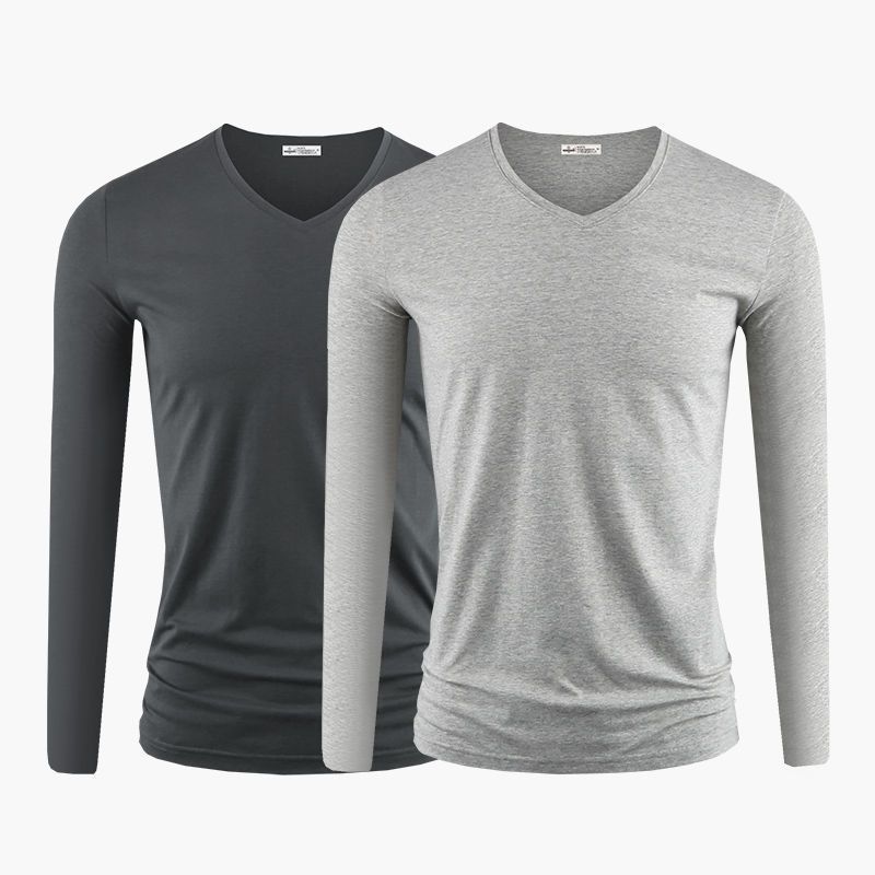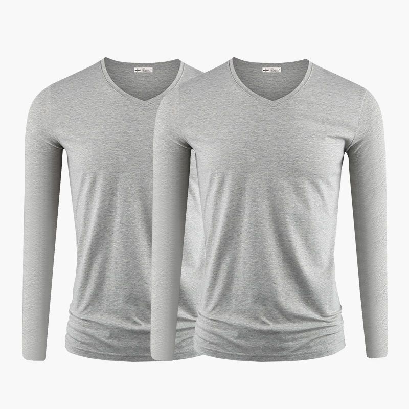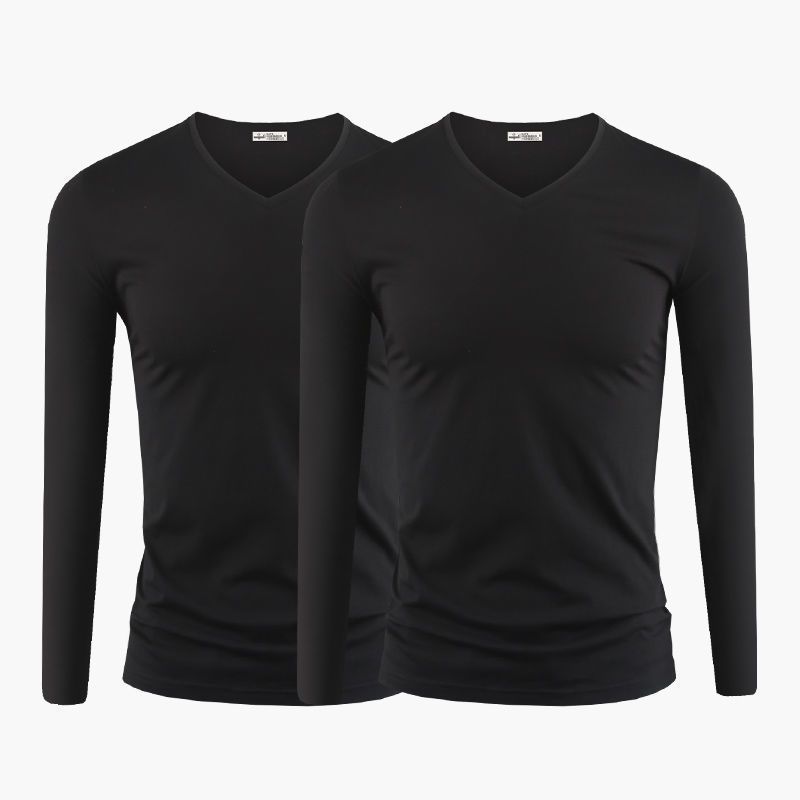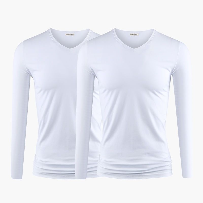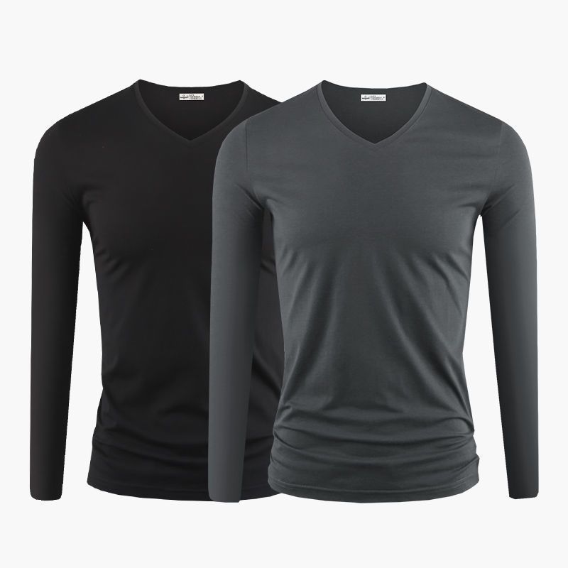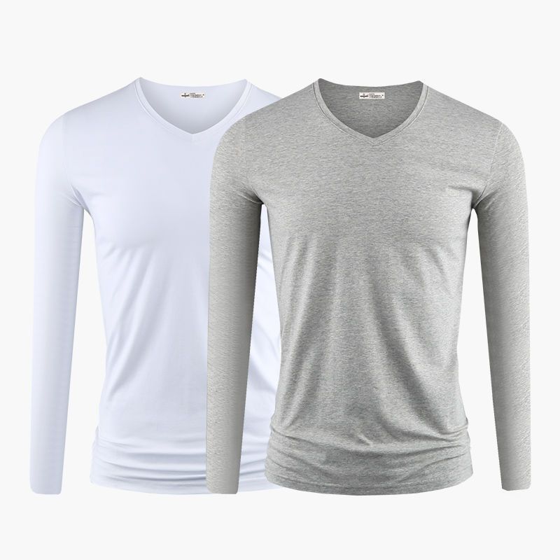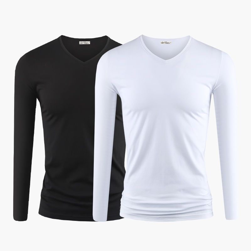 2件】新款外穿打底长袖t恤男v领纯色打底衫内搭上衣春秋季潮秋衣