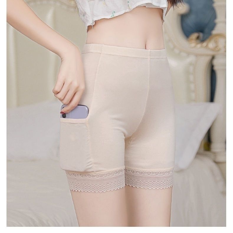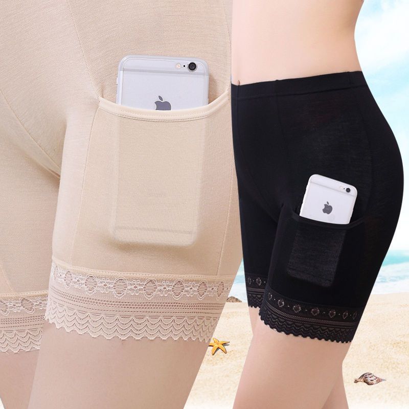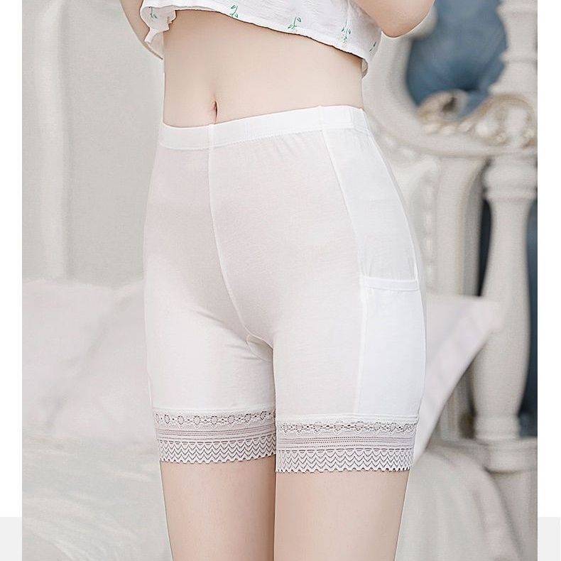 高质量莫代尔有口袋安全裤蕾丝大码打底裤女夏季防走光三分短内裤