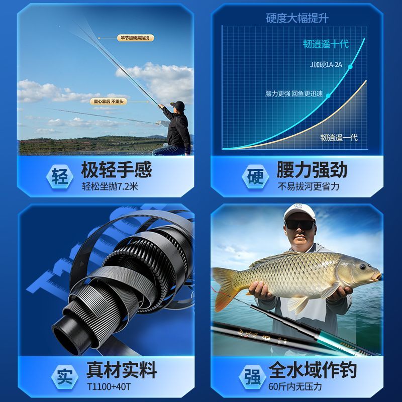 【官方正品】杰诺新品七代鱼竿钓鱼竿手竿超轻硬轻量大物竿台钓竿