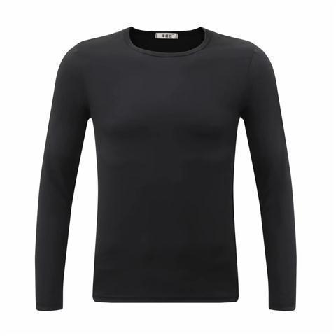 莫代尔秋季男士长袖t恤圆领纯色打底衫紧身半袖黑白色修身体恤潮