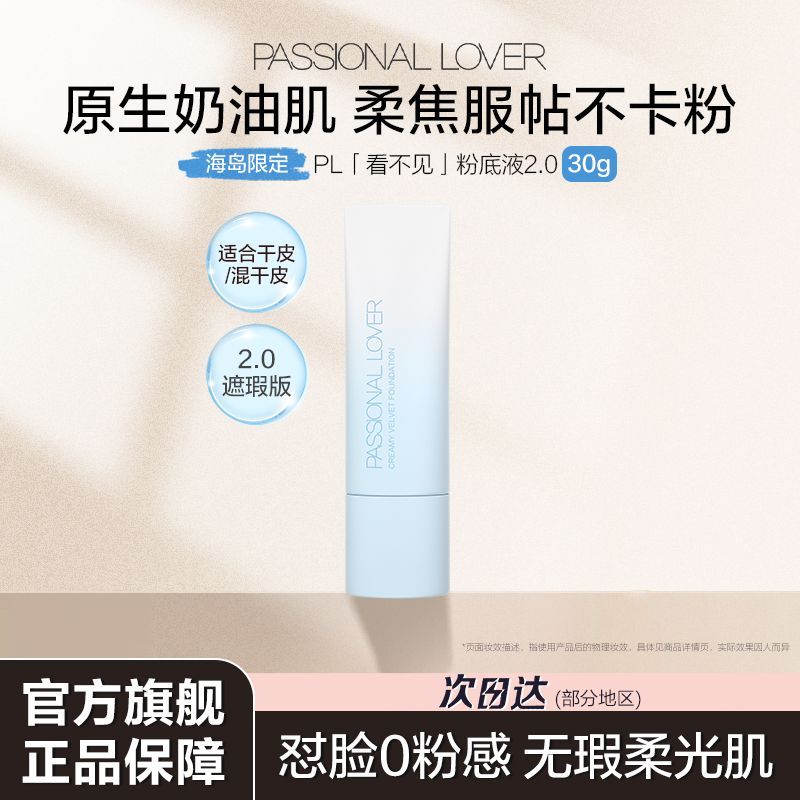 【海岛限定】PL看不见2.0粉底液30g遮瑕版干皮混干皮持妆柔焦服帖