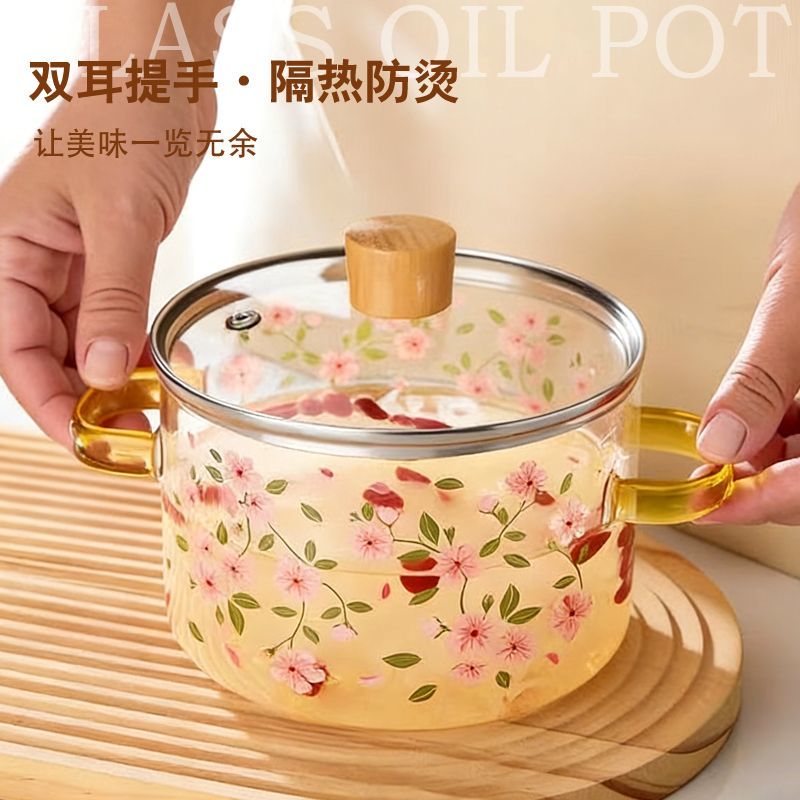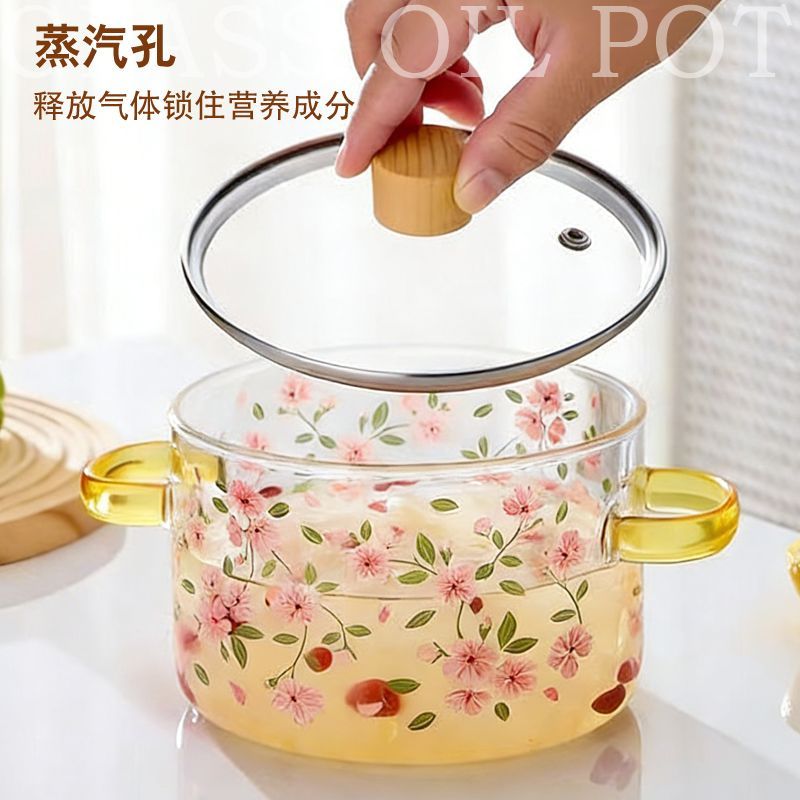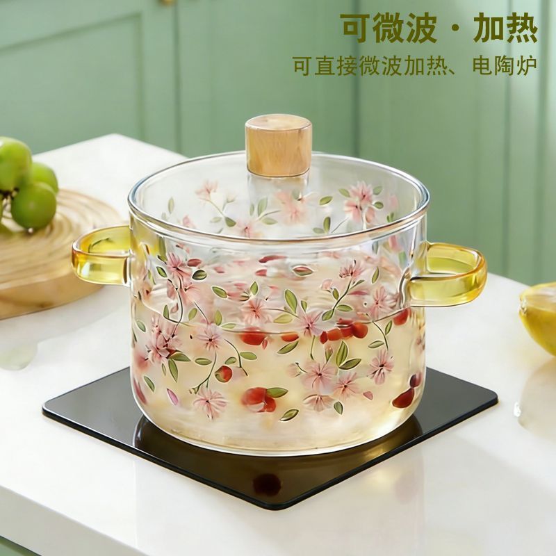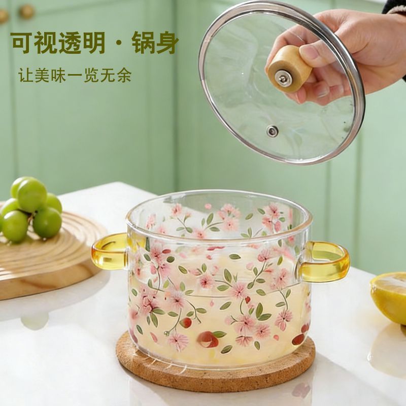 耐高温玻璃锅明火可燃气直烧高硼硅透明锅玻璃汤锅炖锅双耳养生锅