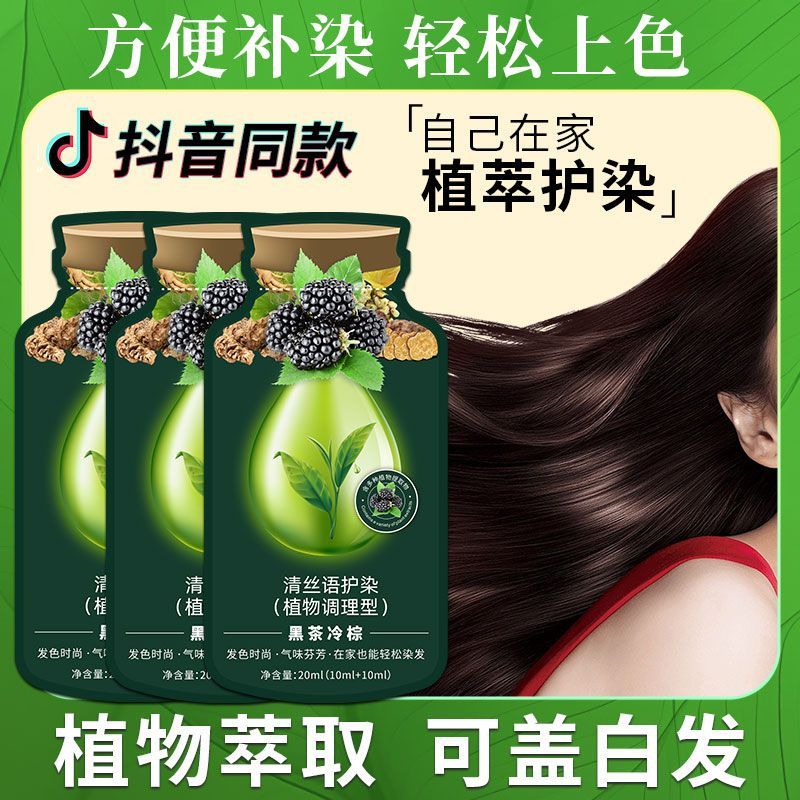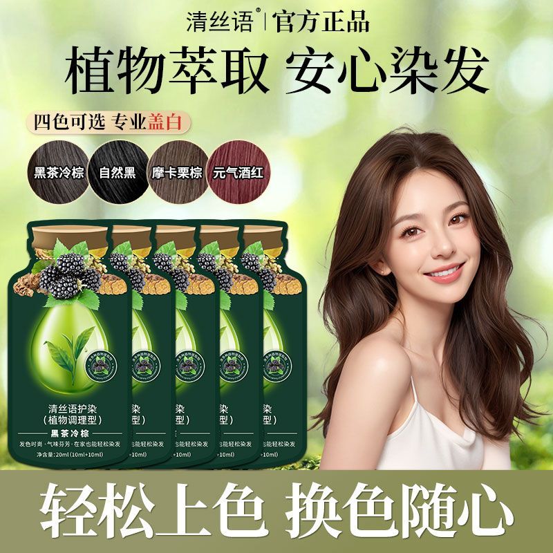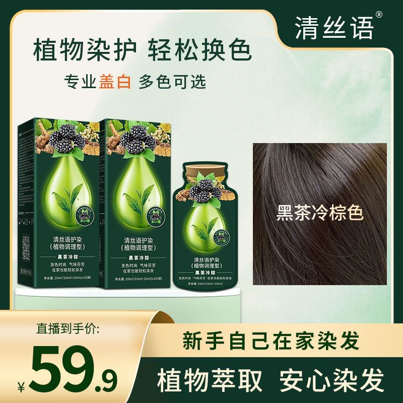 清丝语植物染发膏遮盖白发黑茶冷棕染发必备专业自己在家染发滋润