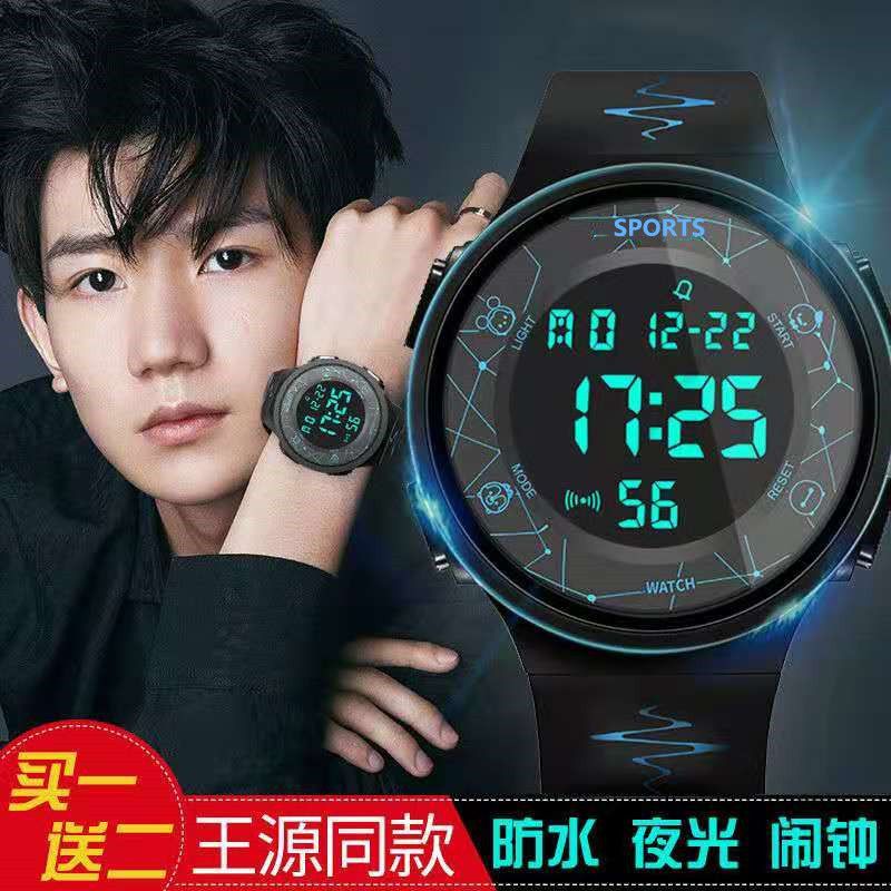 酷炫韩版简约运动手表男女学生防水夜光多功能ins学院风电子手表